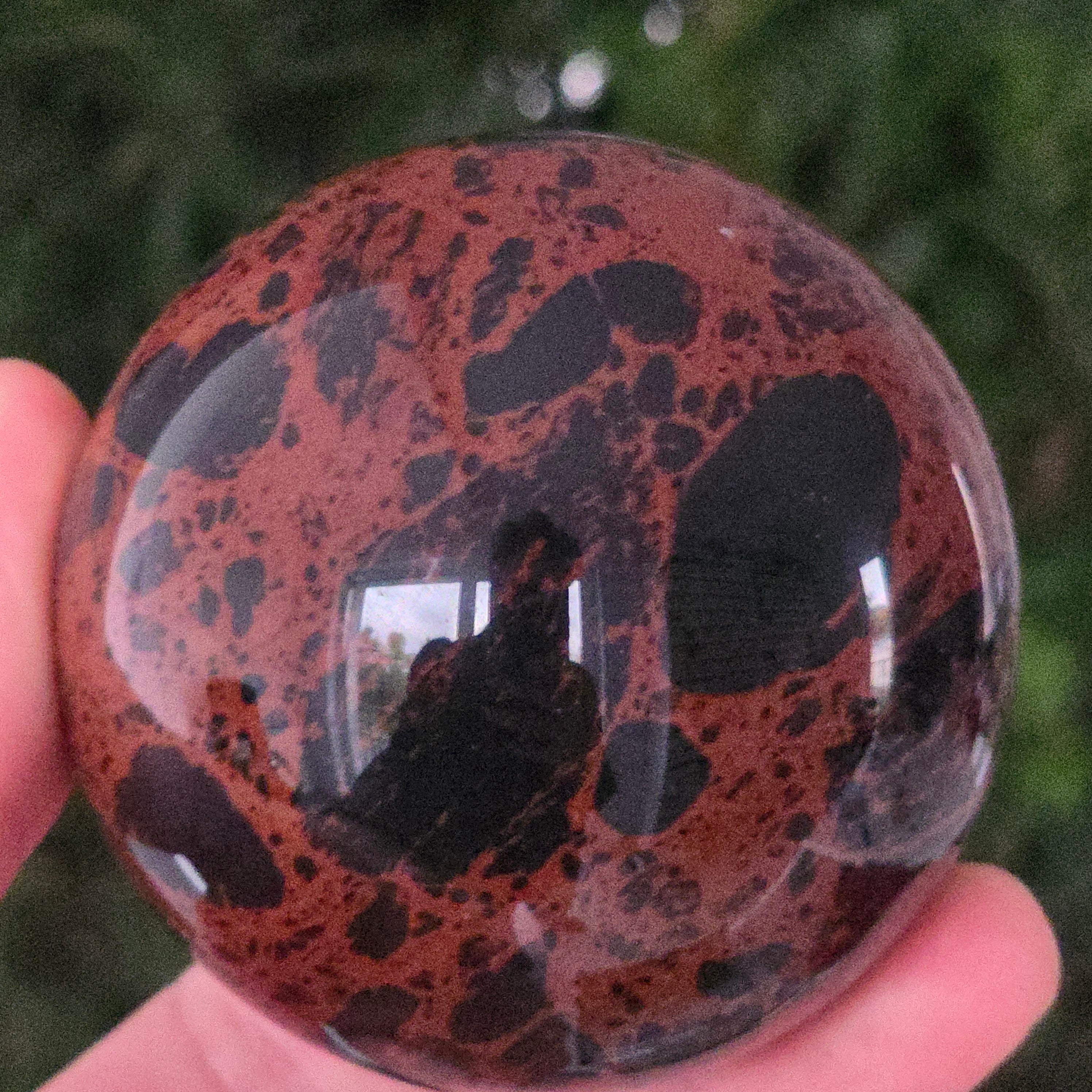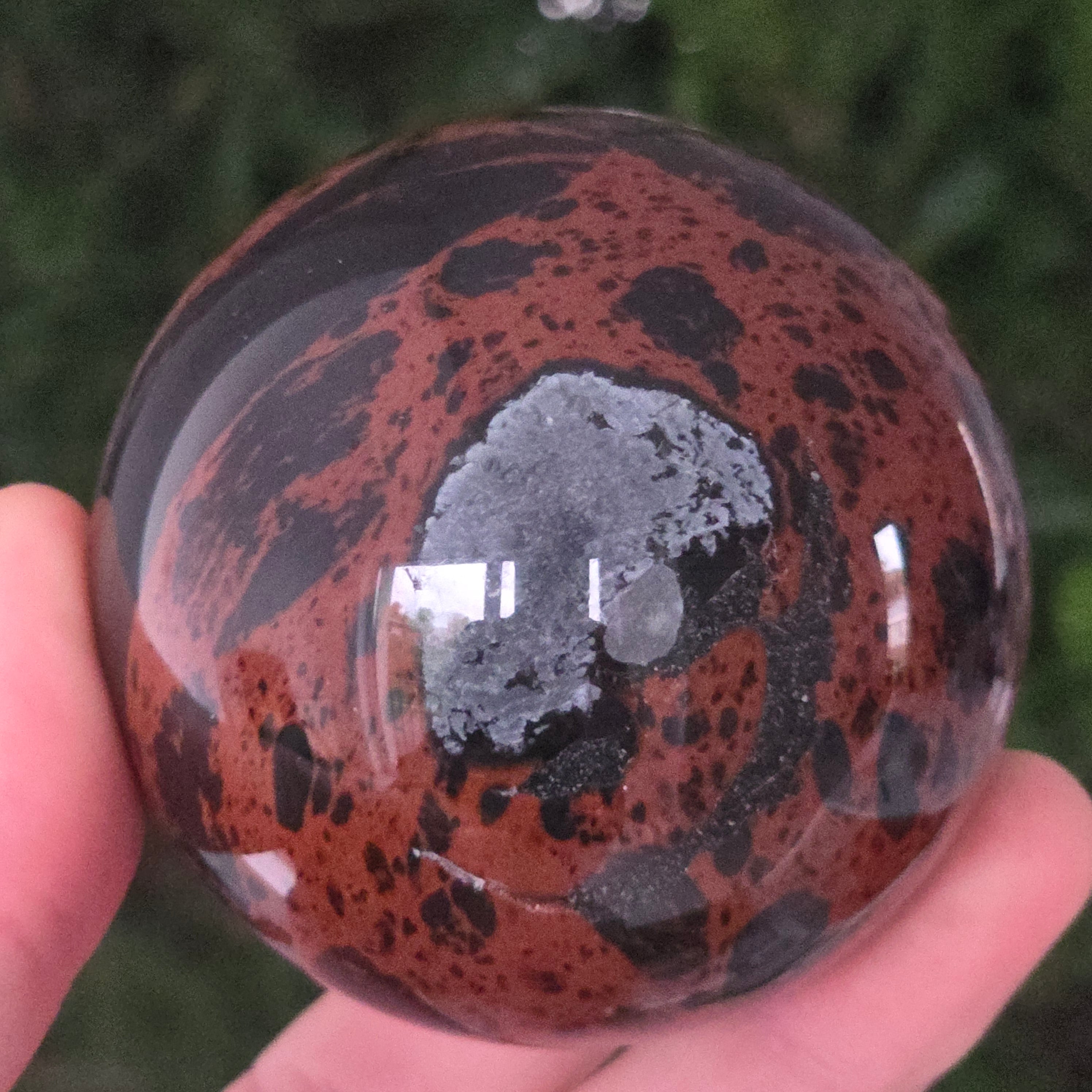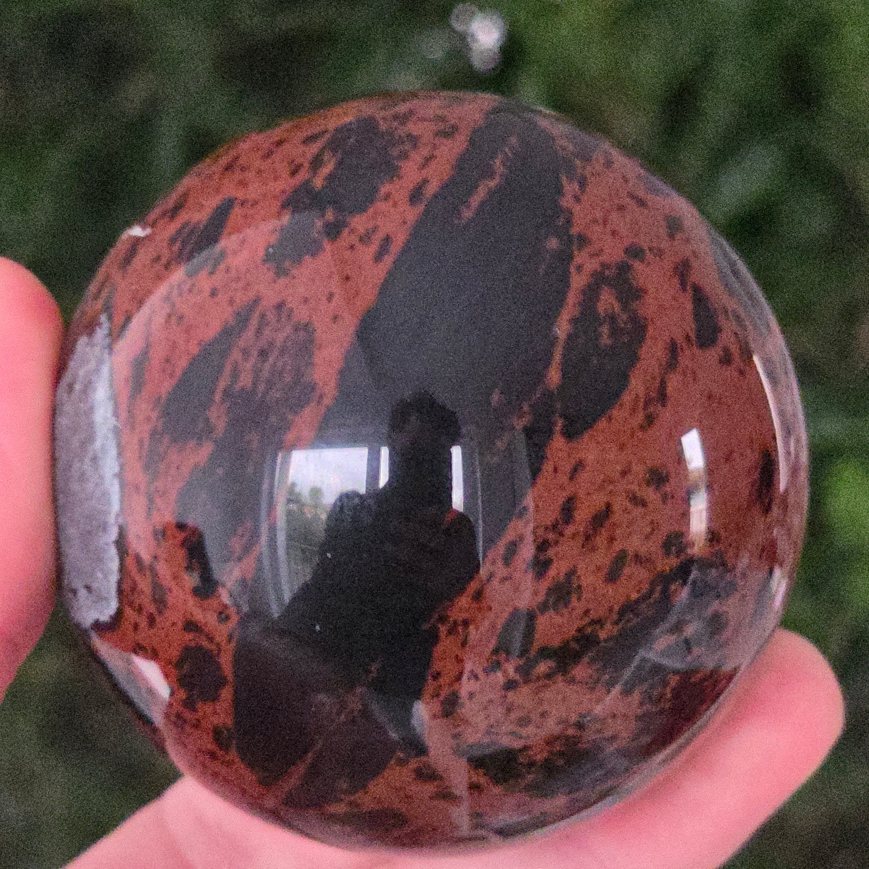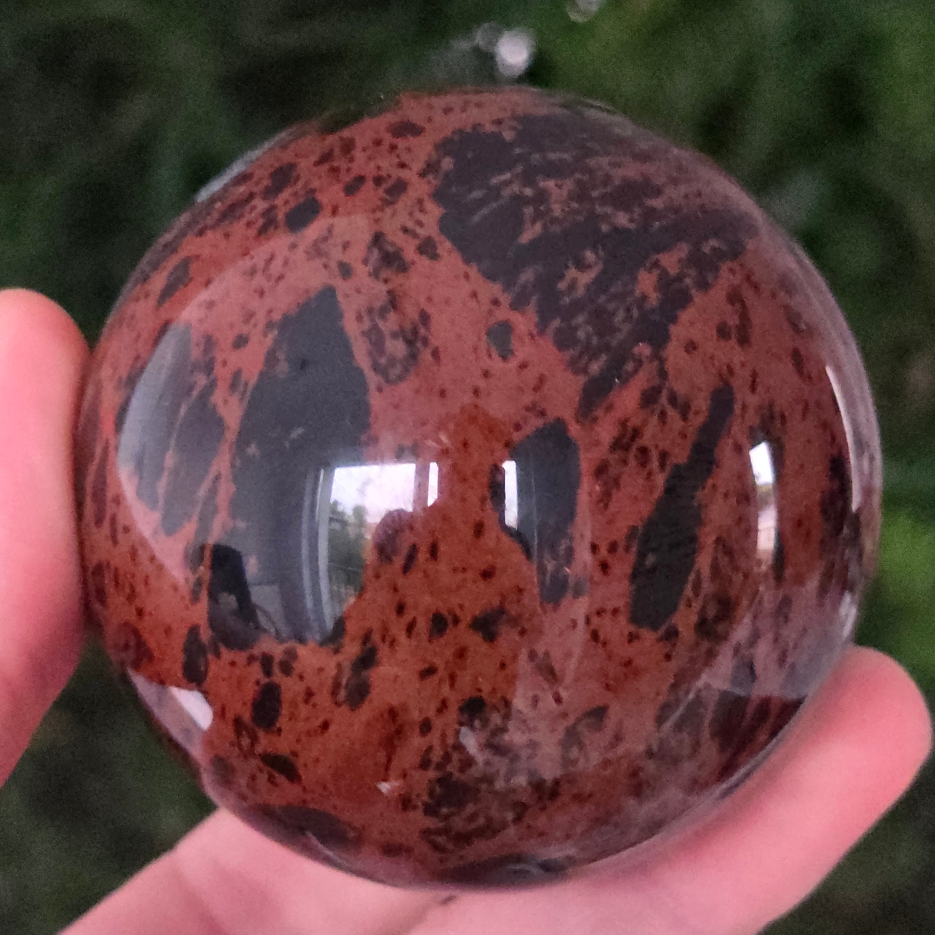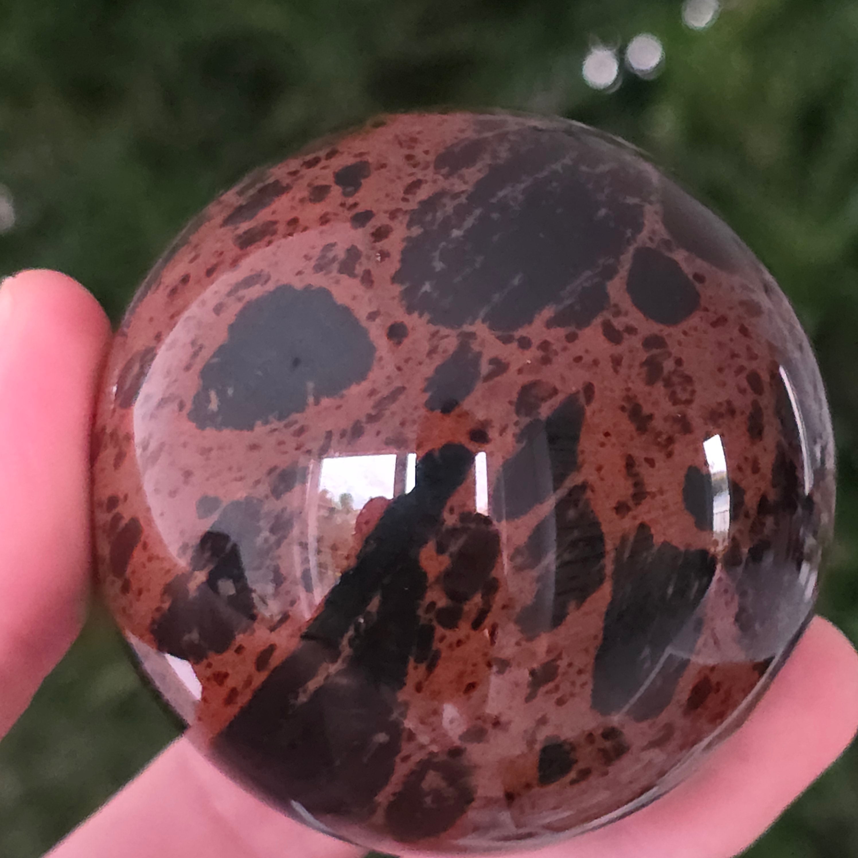 Позволи на тихата сила на Земята да те вдъхнови чрез тази сфера от махагонов обсидиан.