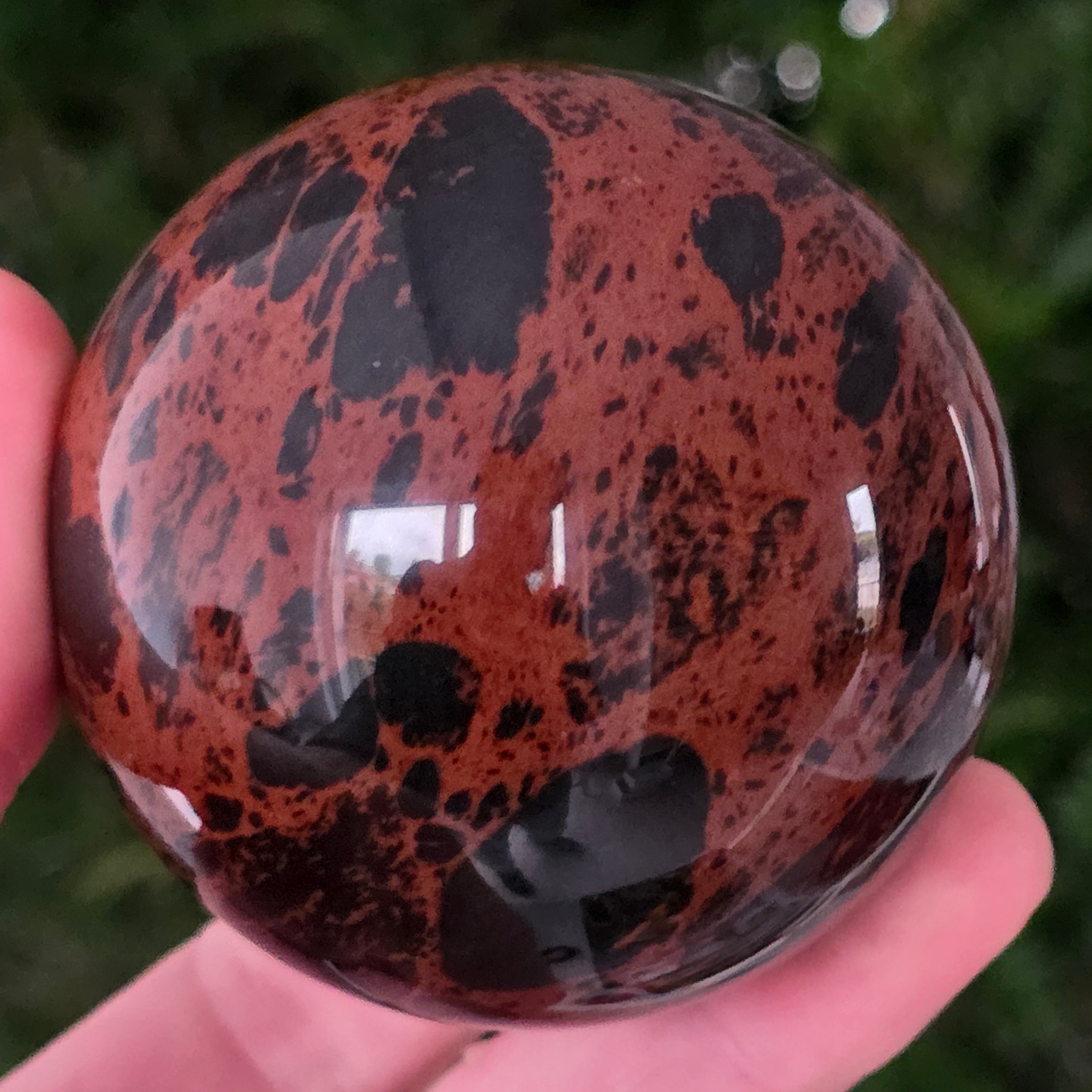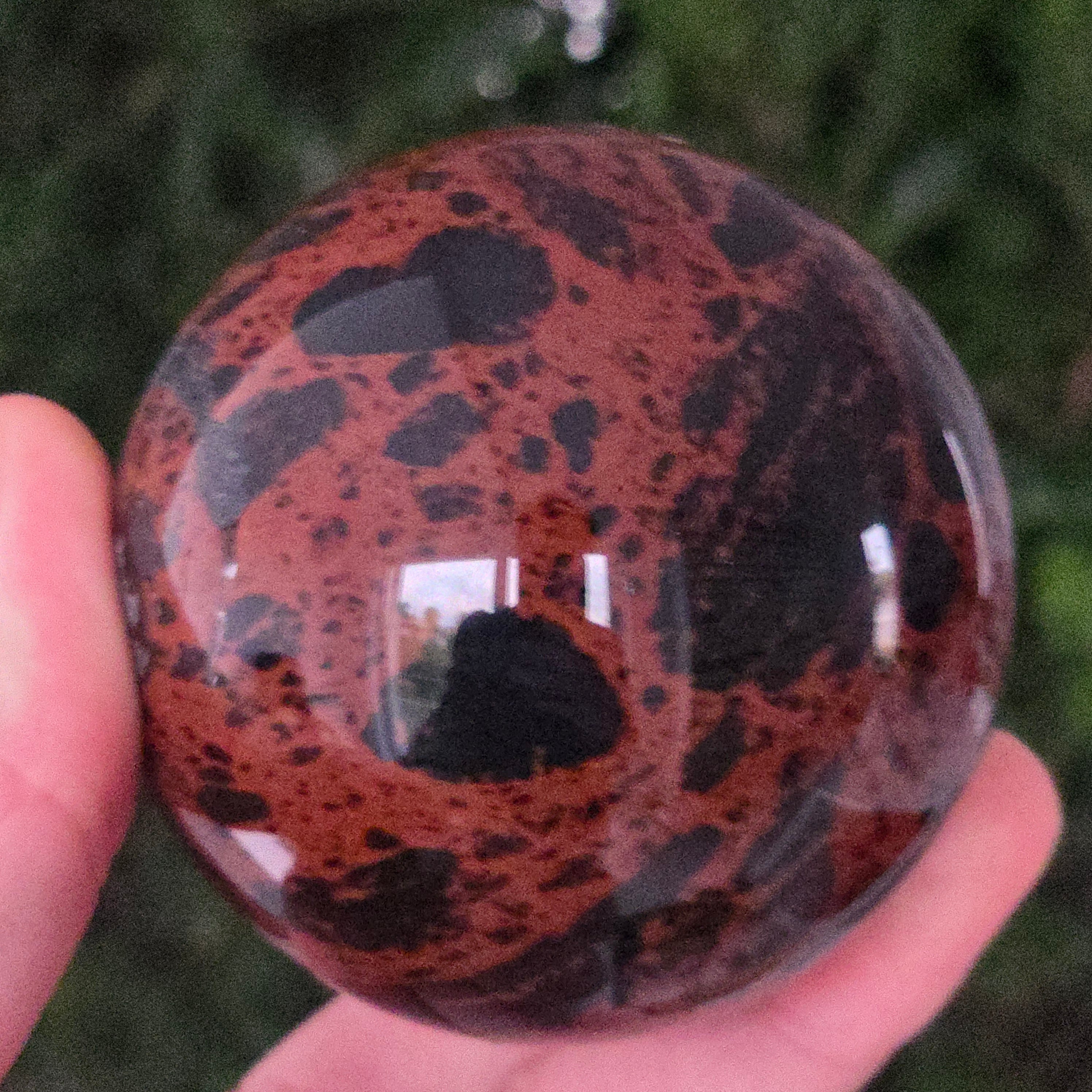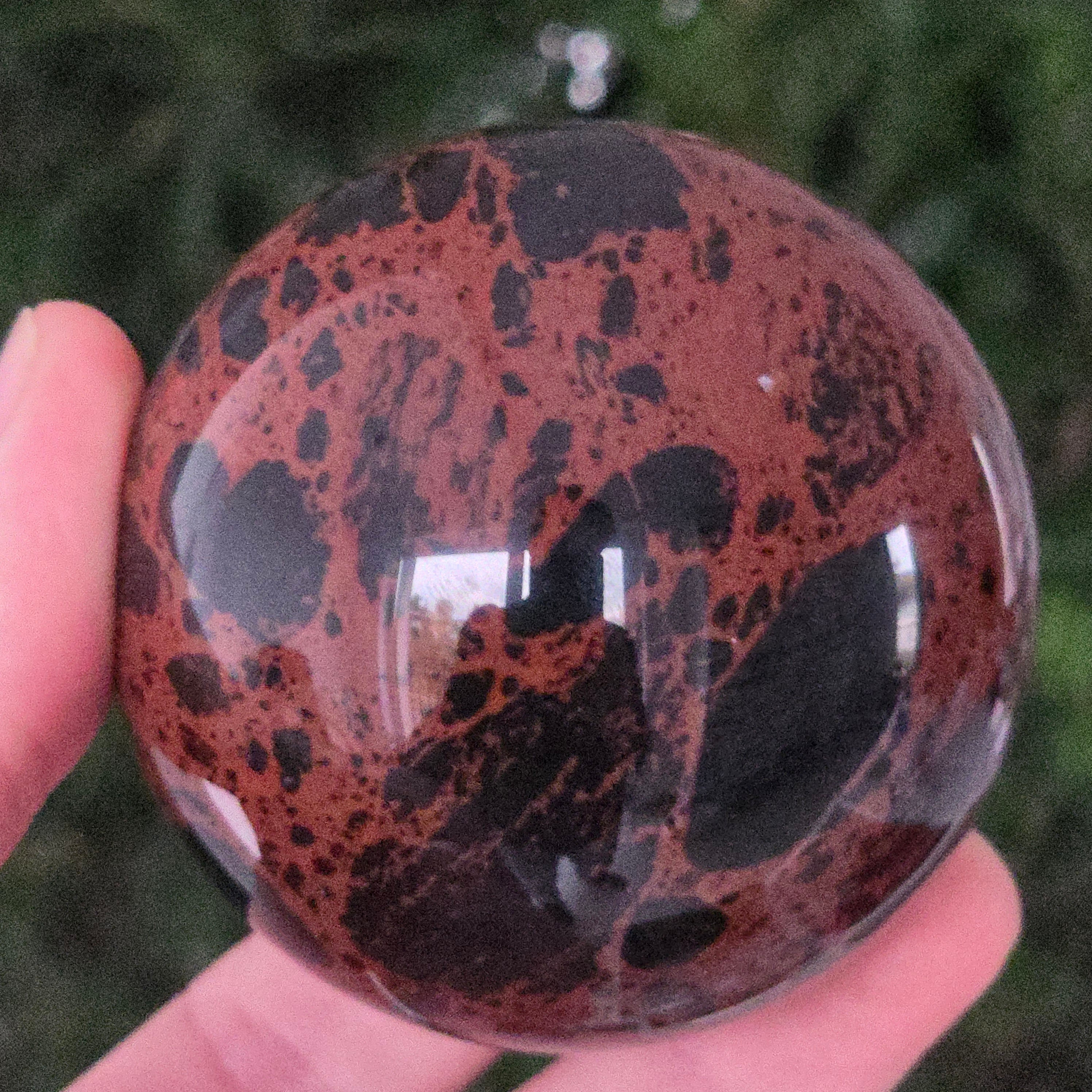 Тази сфера от махагонов обсидиан е въплъщение на първичната сила на Земята — камък на корените, сигурността и вътрешната трансформация.