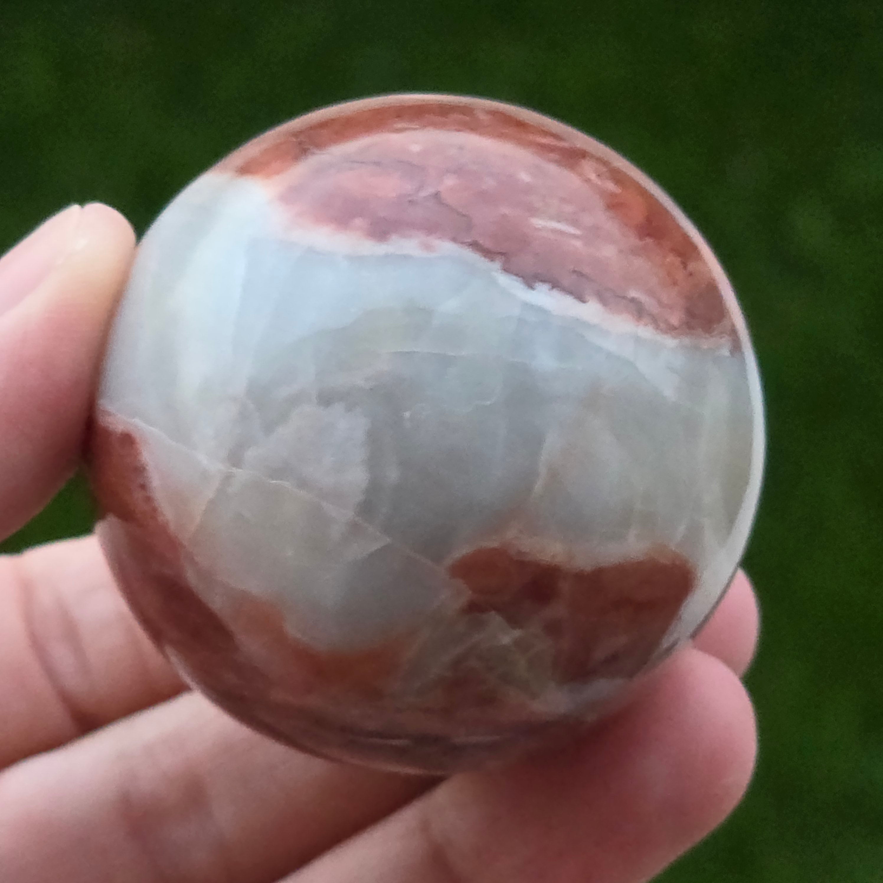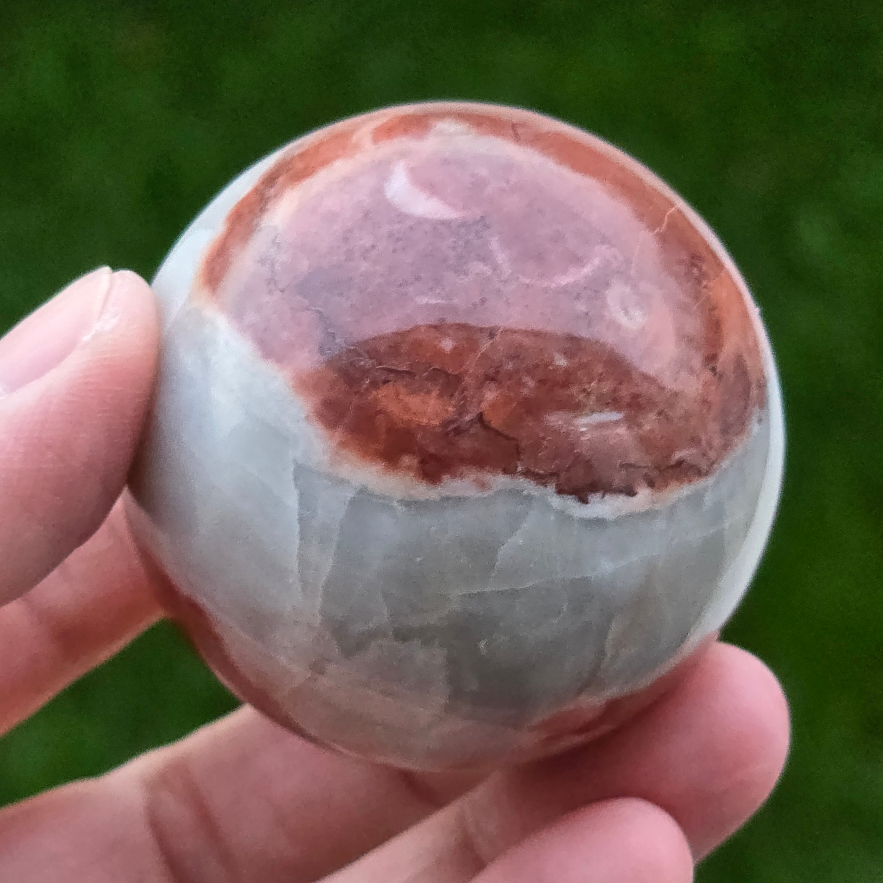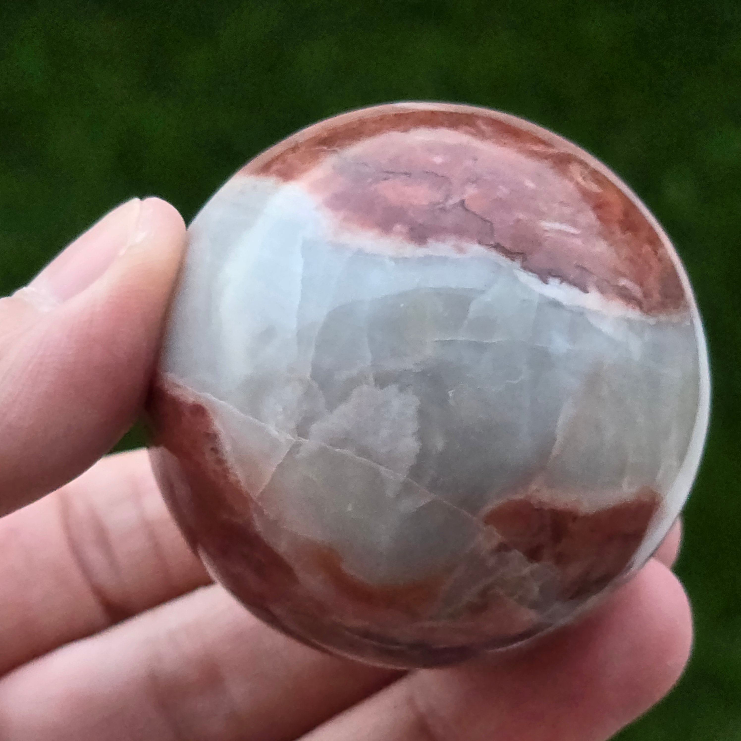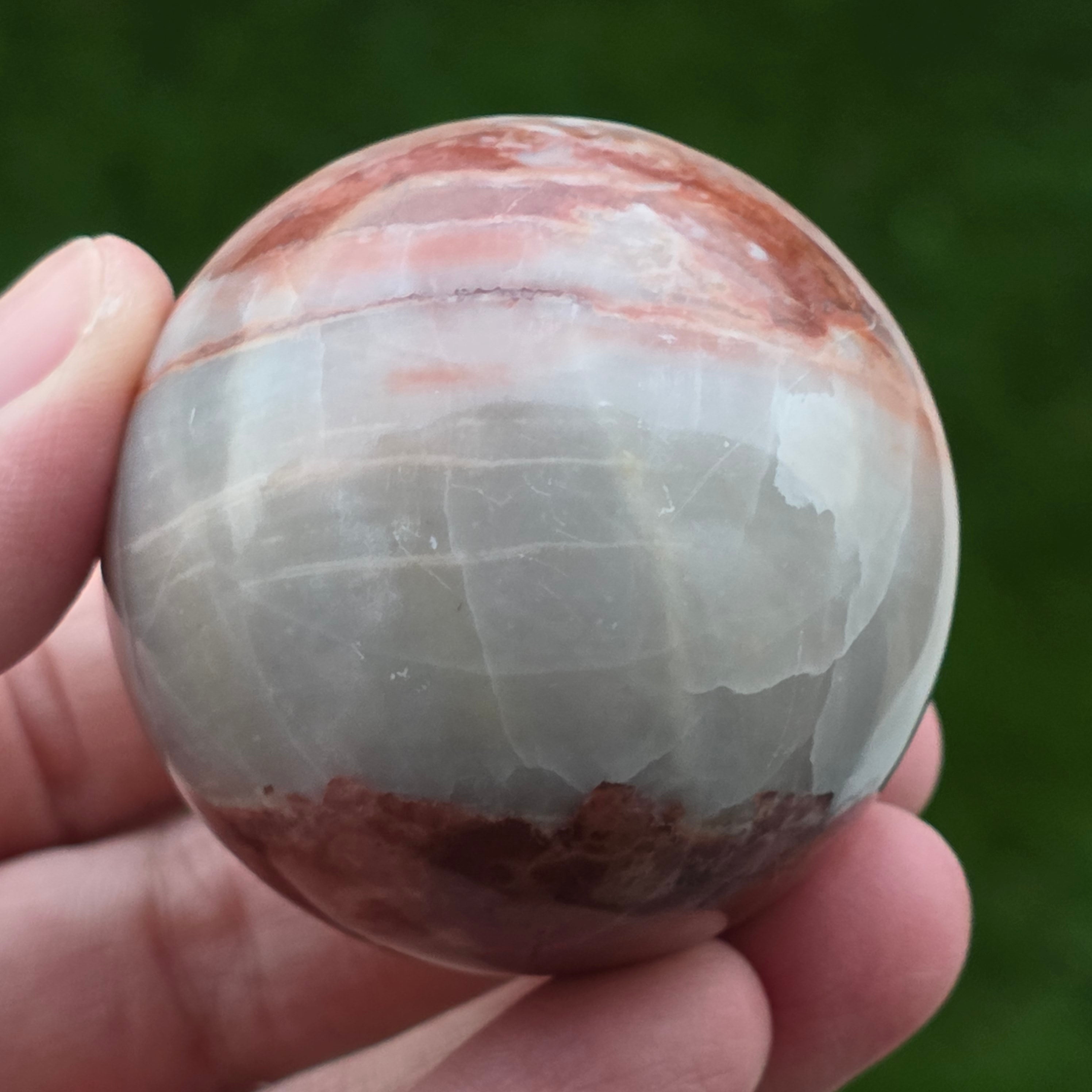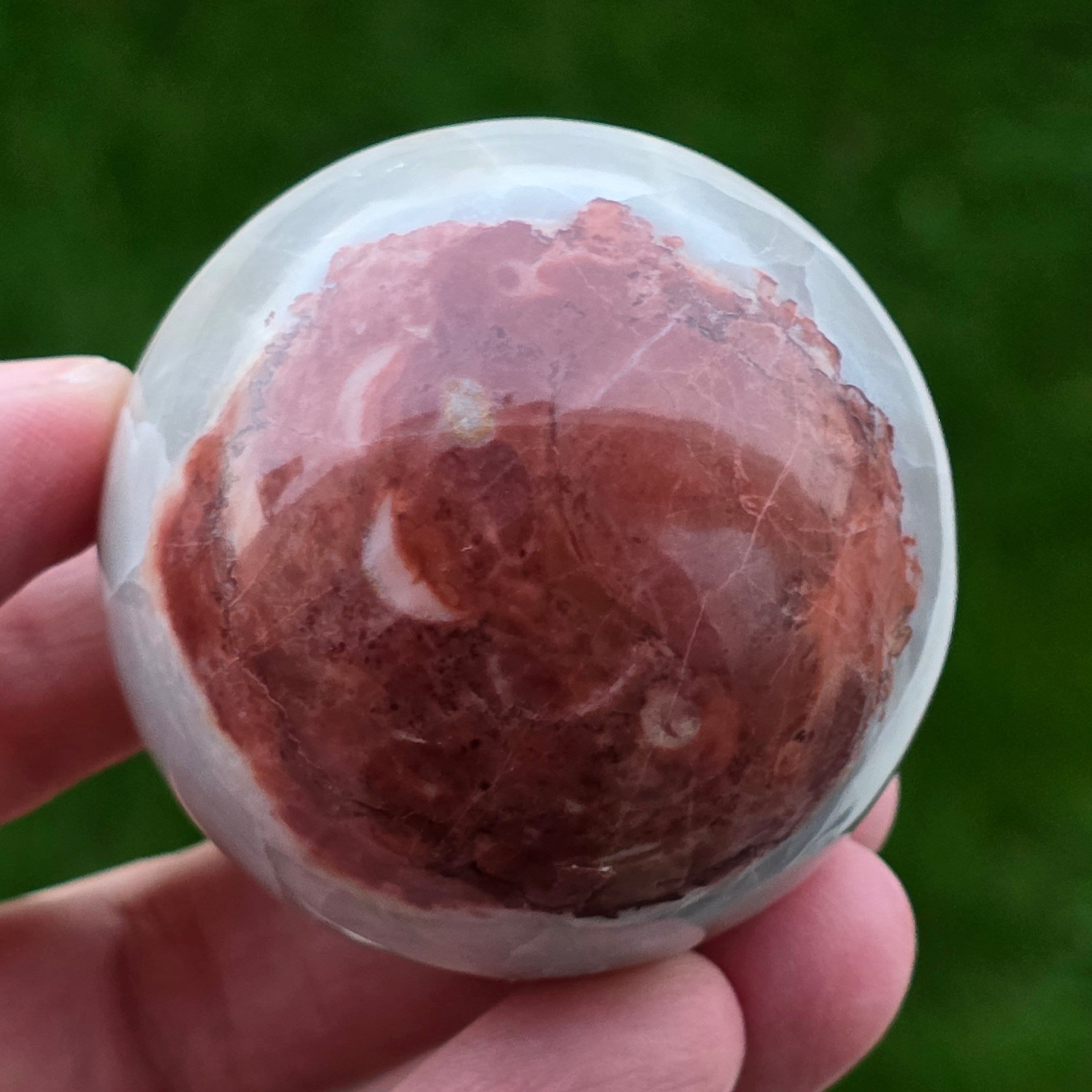 Сферата от ягодов яспис е ярко и изразително парче, изсечено с внимание, за да подчертае топлите оттенъци на ягодово червено, органичните текстури и минералния рисунък, характерен за този вид яспис. Всяко парче е напълно уникално, с естествени модели, които се преплитат в плавни форми, напомняйки за слоевете на скалите и тяхната груба красота.