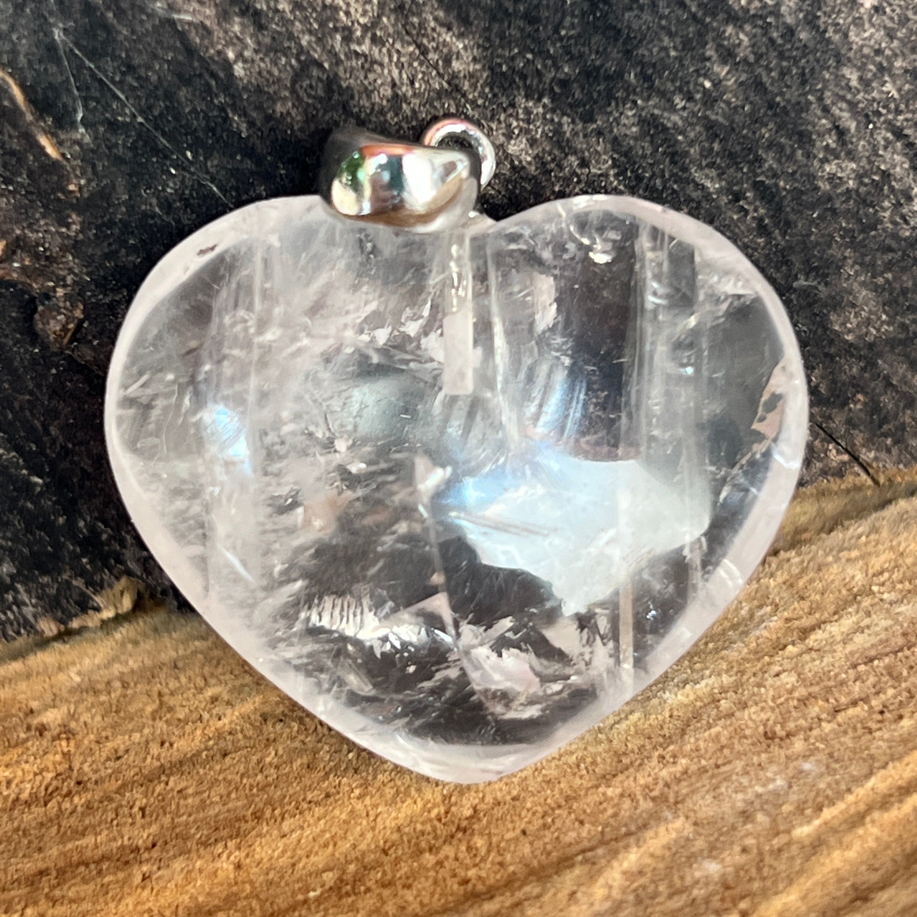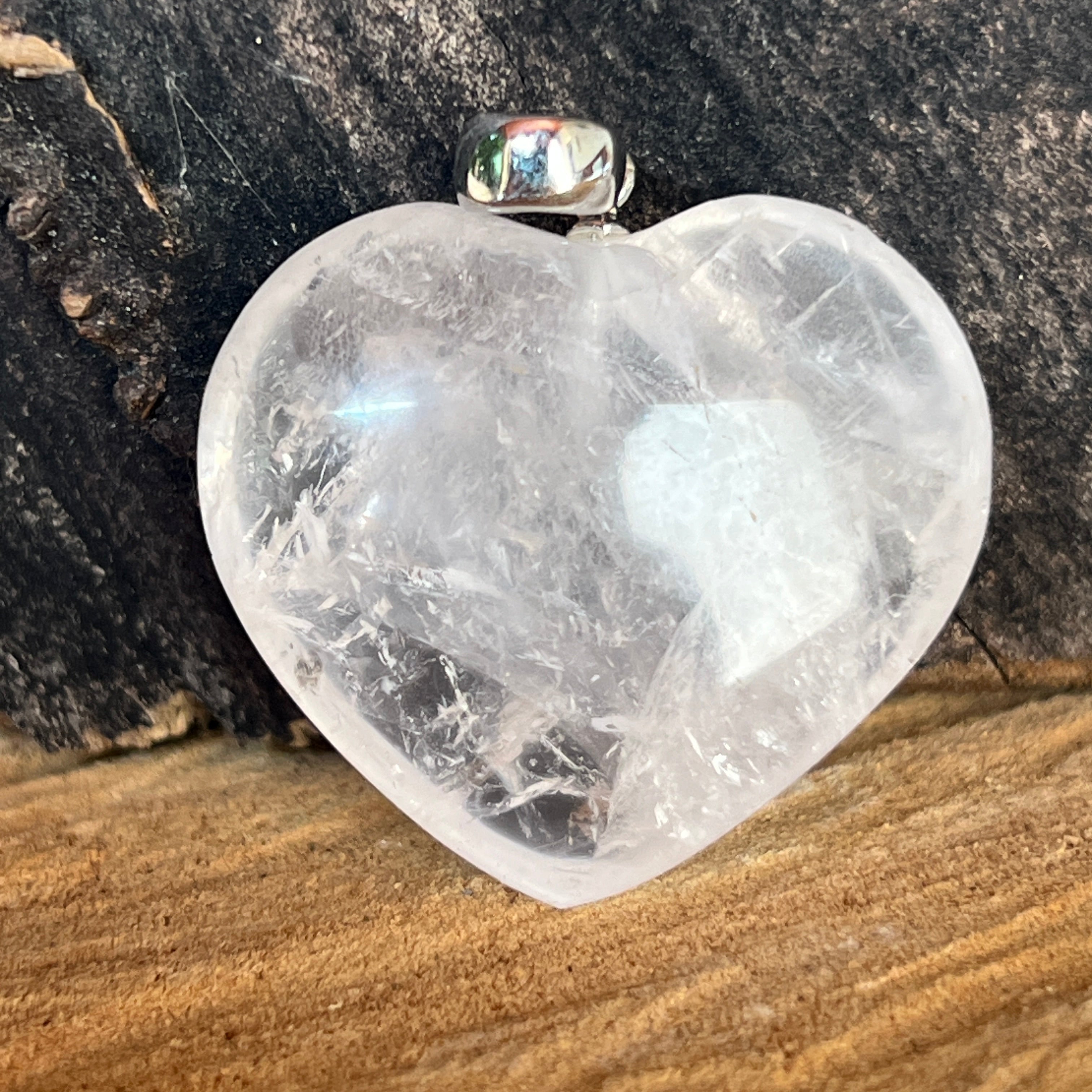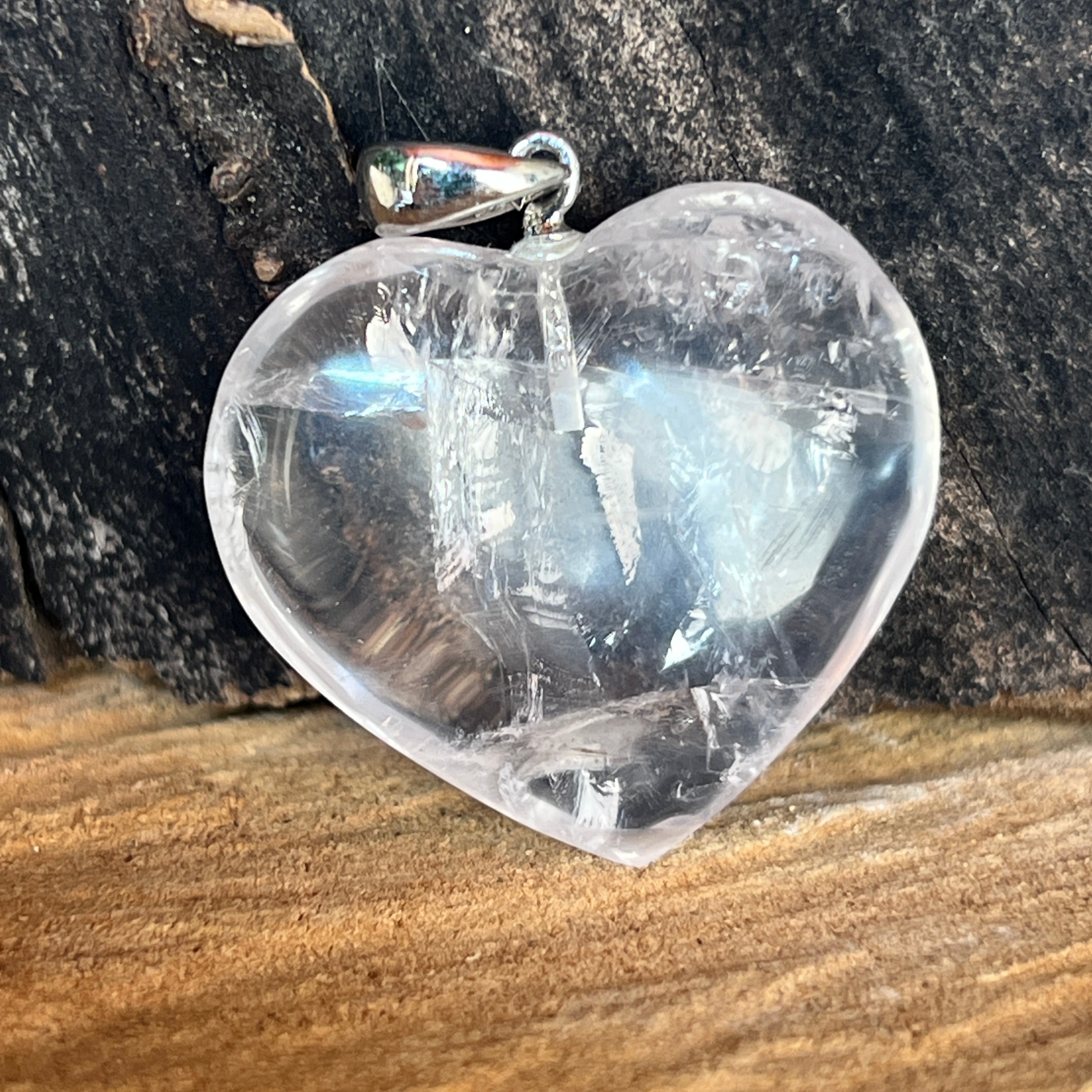 Ревюта – Сърцевиден медальон от планински кристал 3 см, камък на април, камък за рожден ден