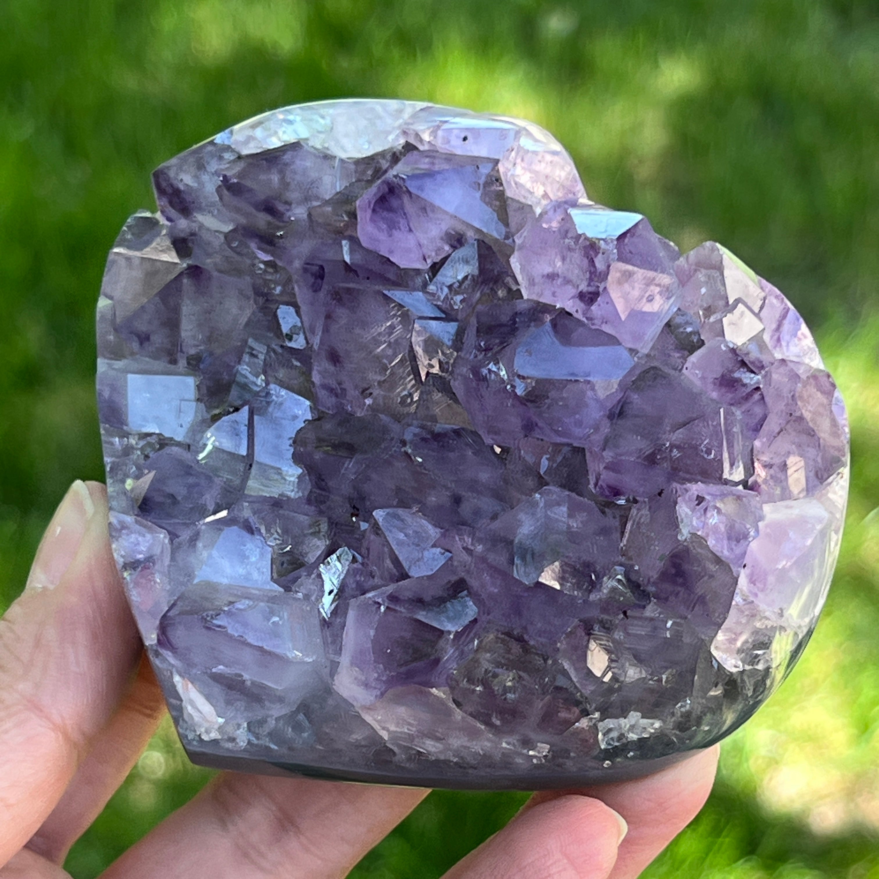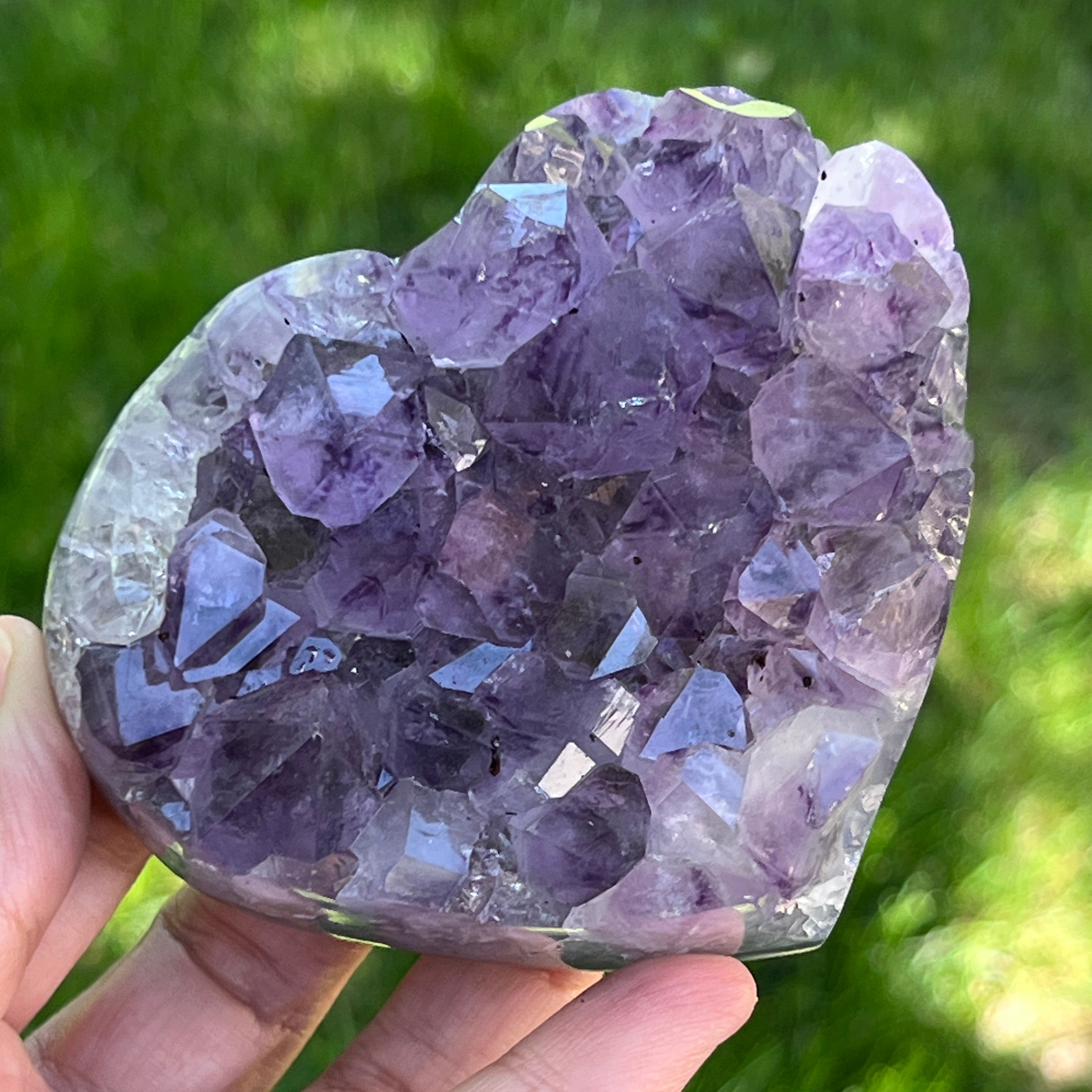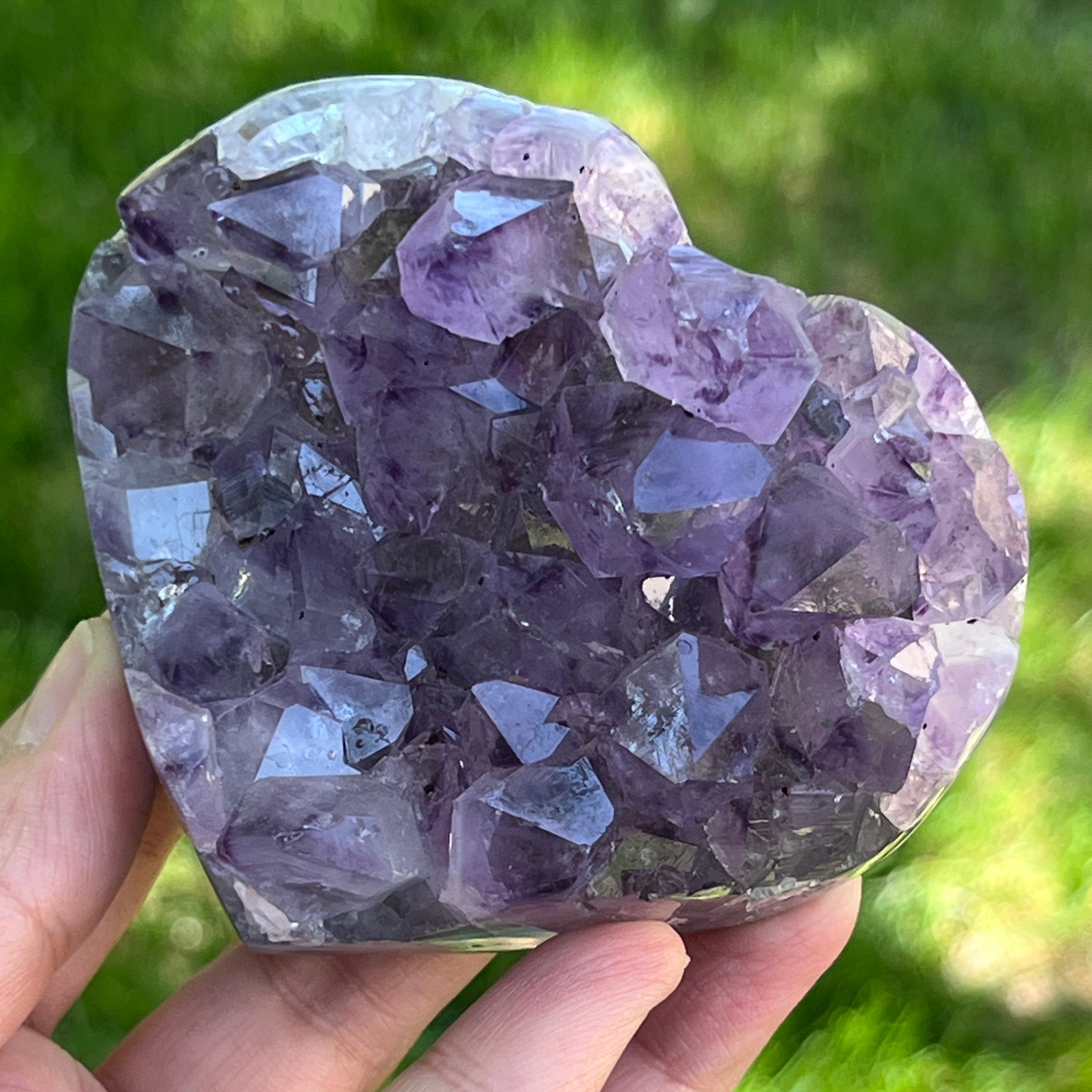 Аметистът е признат за връзките си с коронната и третото око чакри, като повишава интуицията и способността за свързване.