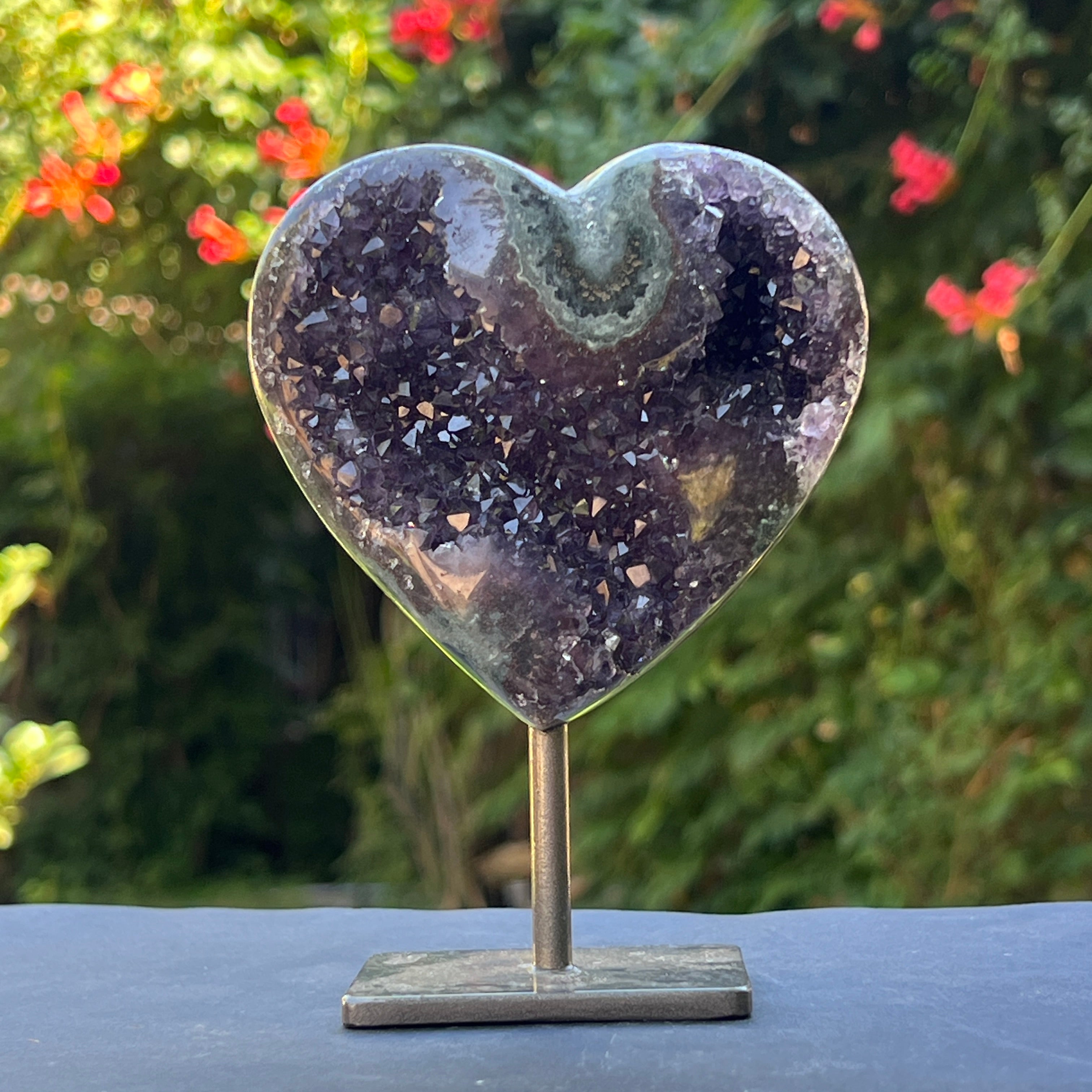 Сърце аметист стойка модел 7, качество +AAA, аметистова геода Уругвай
