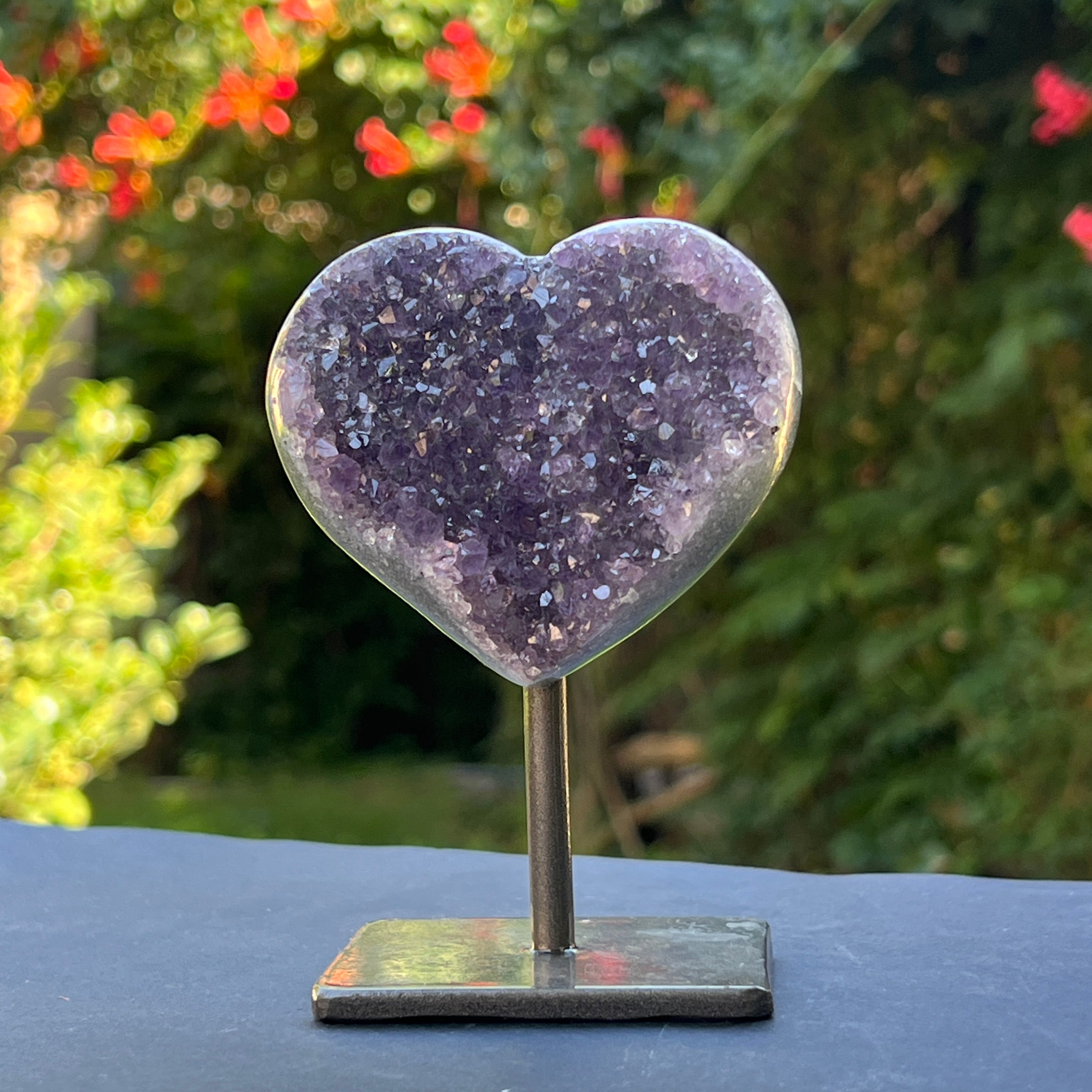 Сърце от аметист, стоящ модел 9, качество +AAA, аметистова жеода от Уругвай