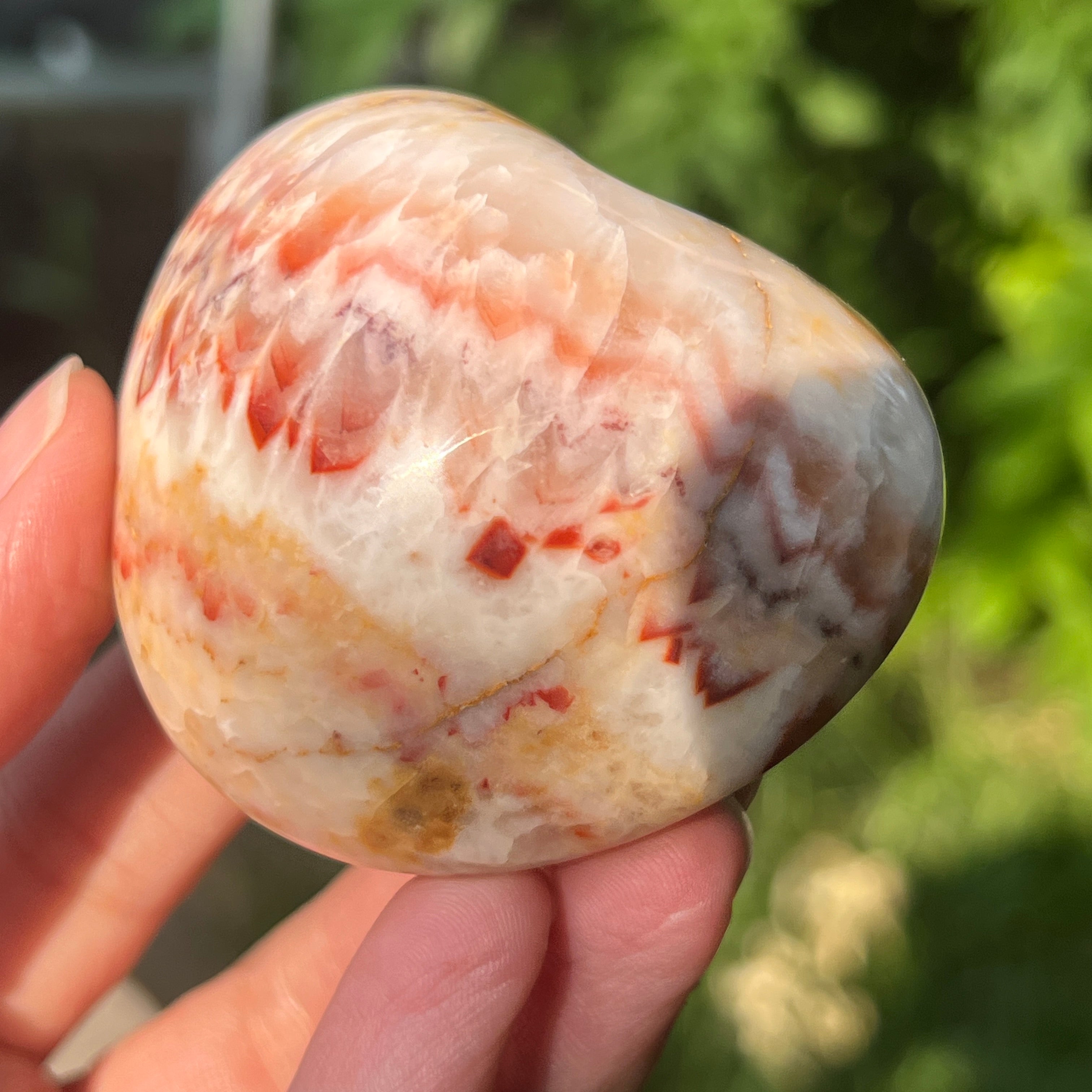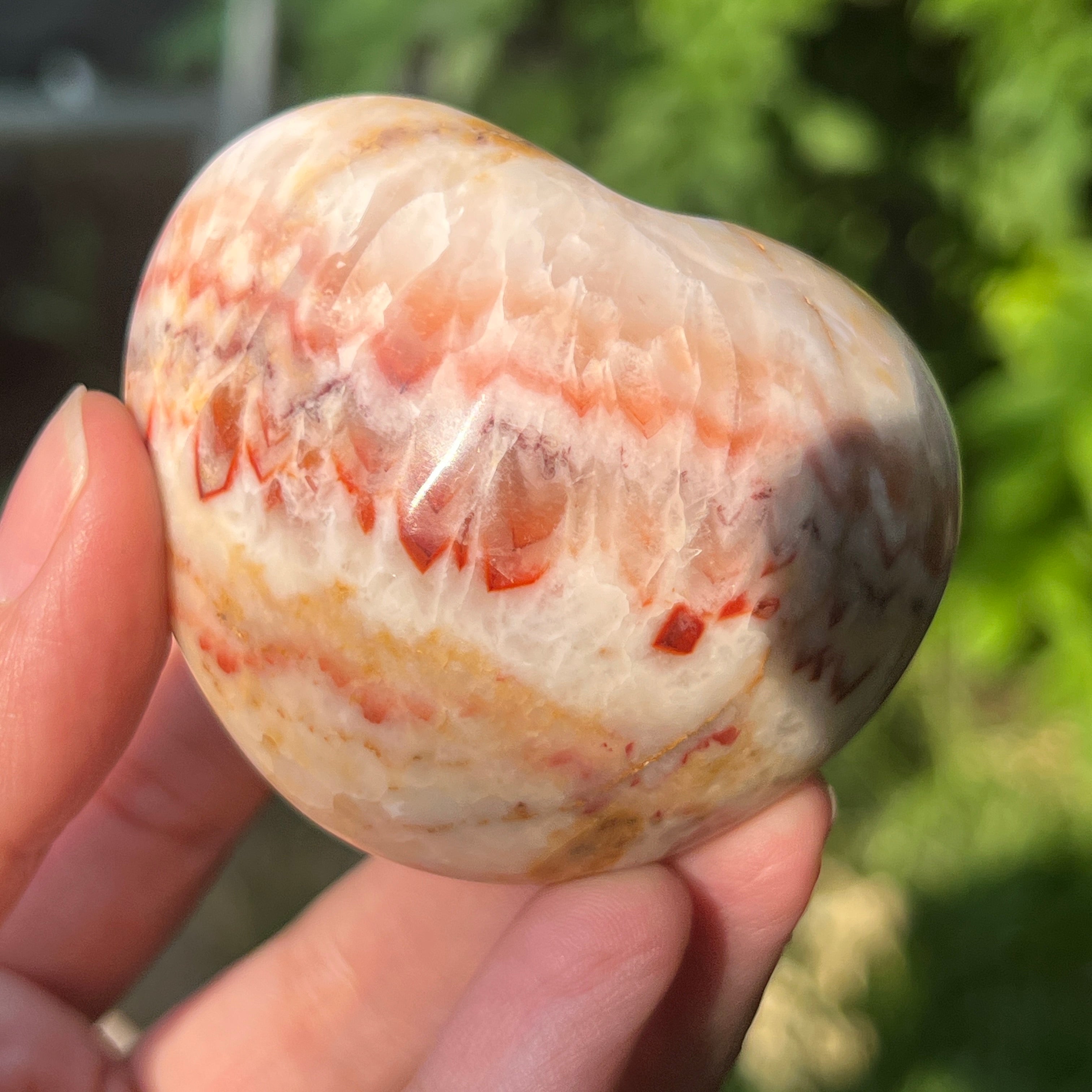 Сърце от розов райски калцит с ивици m5. Размер 6.1 x 5.4 x 4.4 cm