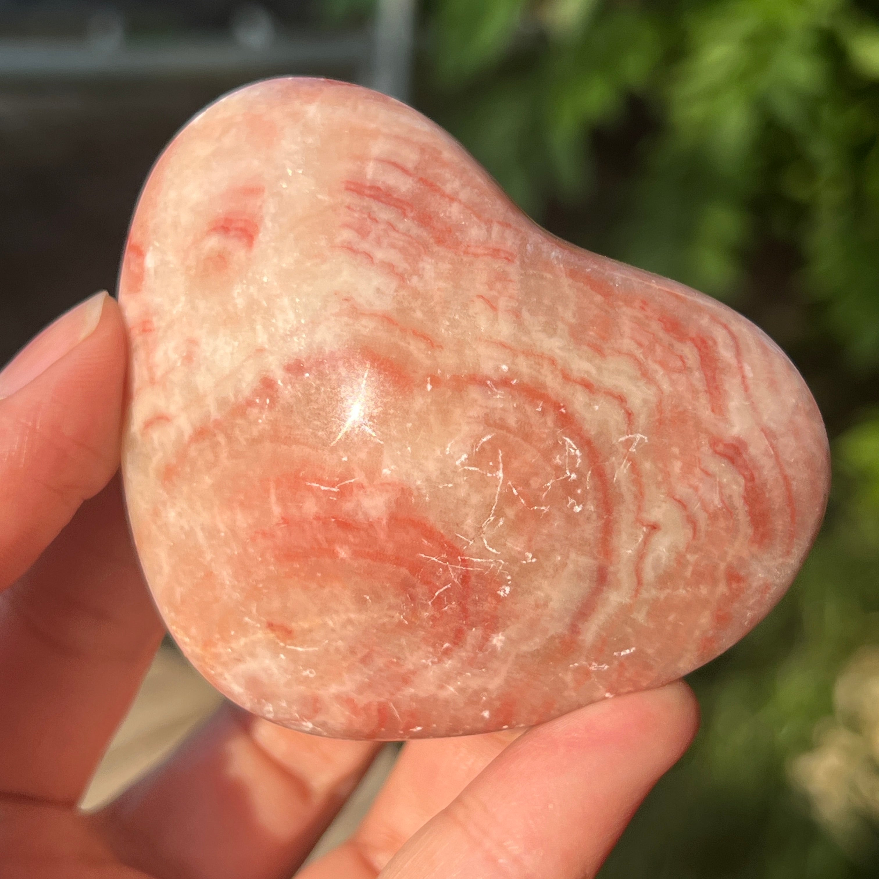 Ревюта – Сърце от розов райски калцит с ивици m7