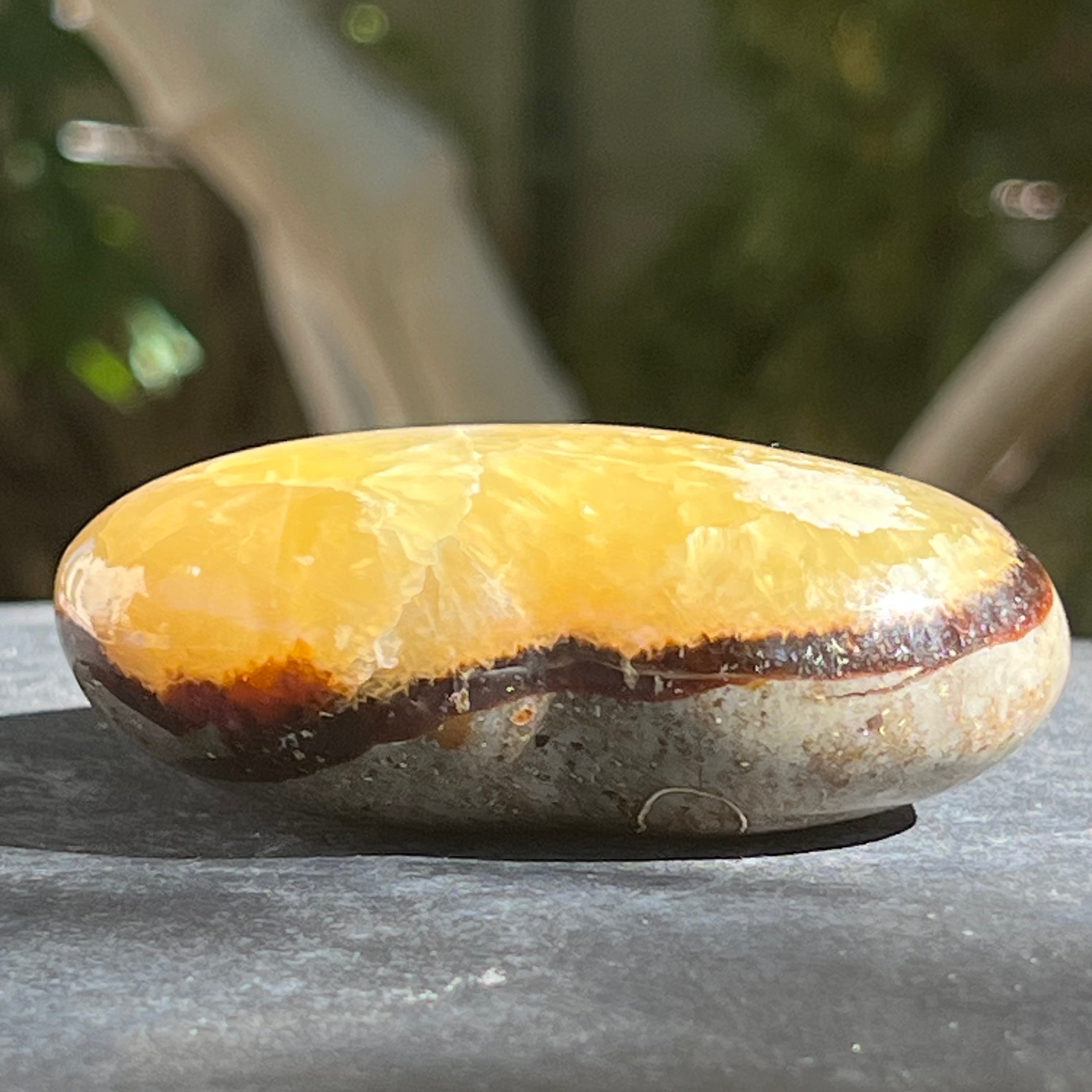 Септарията е съставена от калцит, лимонит, гипс и барит, минерали, които създават уникална игра в този камък и му придават особен вид.