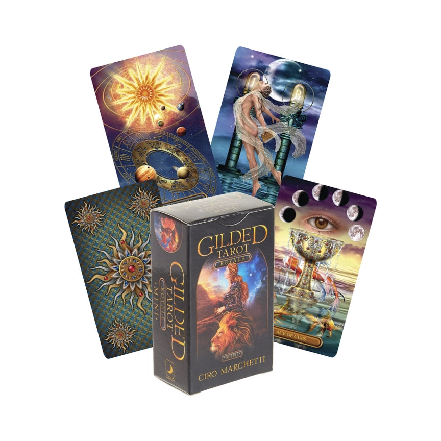 Gilded Tarot Royale – Мини издание е компактната версия на един от най-харесваните съвременни таро комплекти. Лесно преносимо в чанта или джоб, този комплект е идеален за бързи разчитания, пътувания или като вдъхновяващ подарък за любителите на таро. Картите без рамка, по-ярките цветове и съвременните детайли запазват яснотата и визуалната сила на Gilded Tarot, но в актуализирана презентация. Следвайки традицията Rider-Waite-Smith и пълен с посредници от средновековието – магьосници, жрици, императори и рицари – този комплект остава източник на вдъхновение за читатели на всички нива. 🔮.