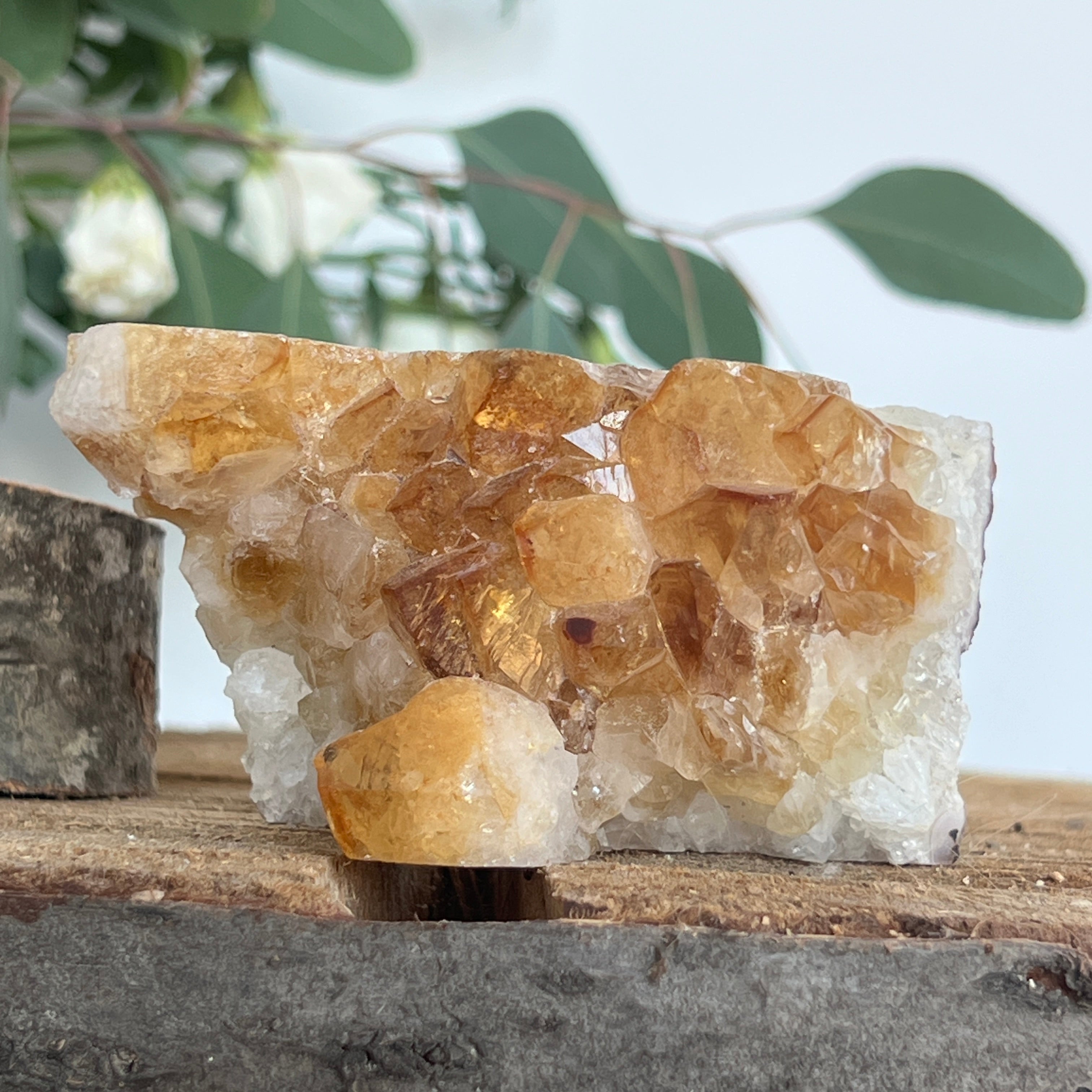 В кристалотерапиятацитринът се смята за камък на изобилието и оптимизма. Дори в термично обработена форма, неговата светла вибрация се възприема като подкрепа за психическа яснота, радост и реализиране на намеренията. Клъстер с този размер и интензивност се превръща в истинска светлинна точка в пространството, привличайки хармония и просперитет.