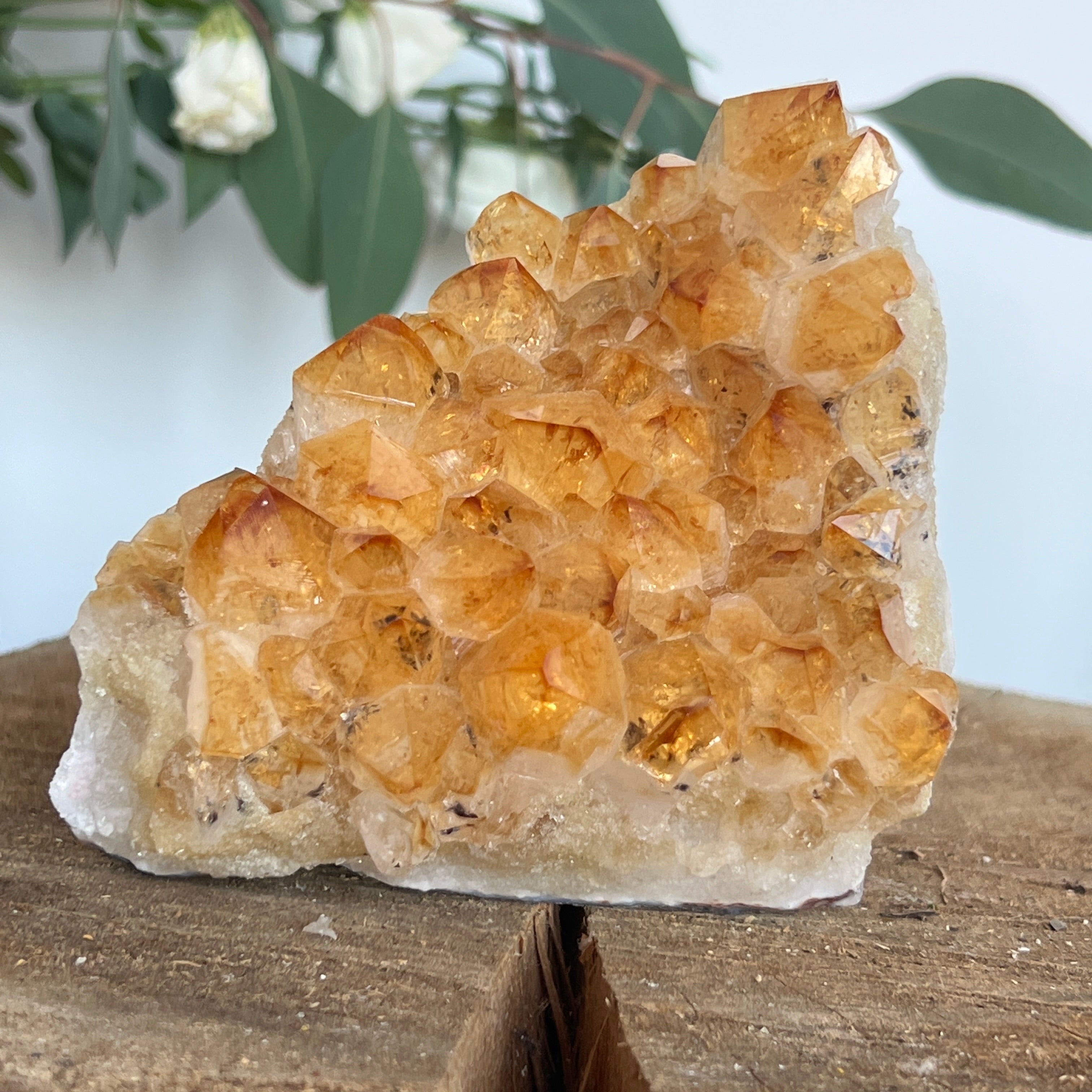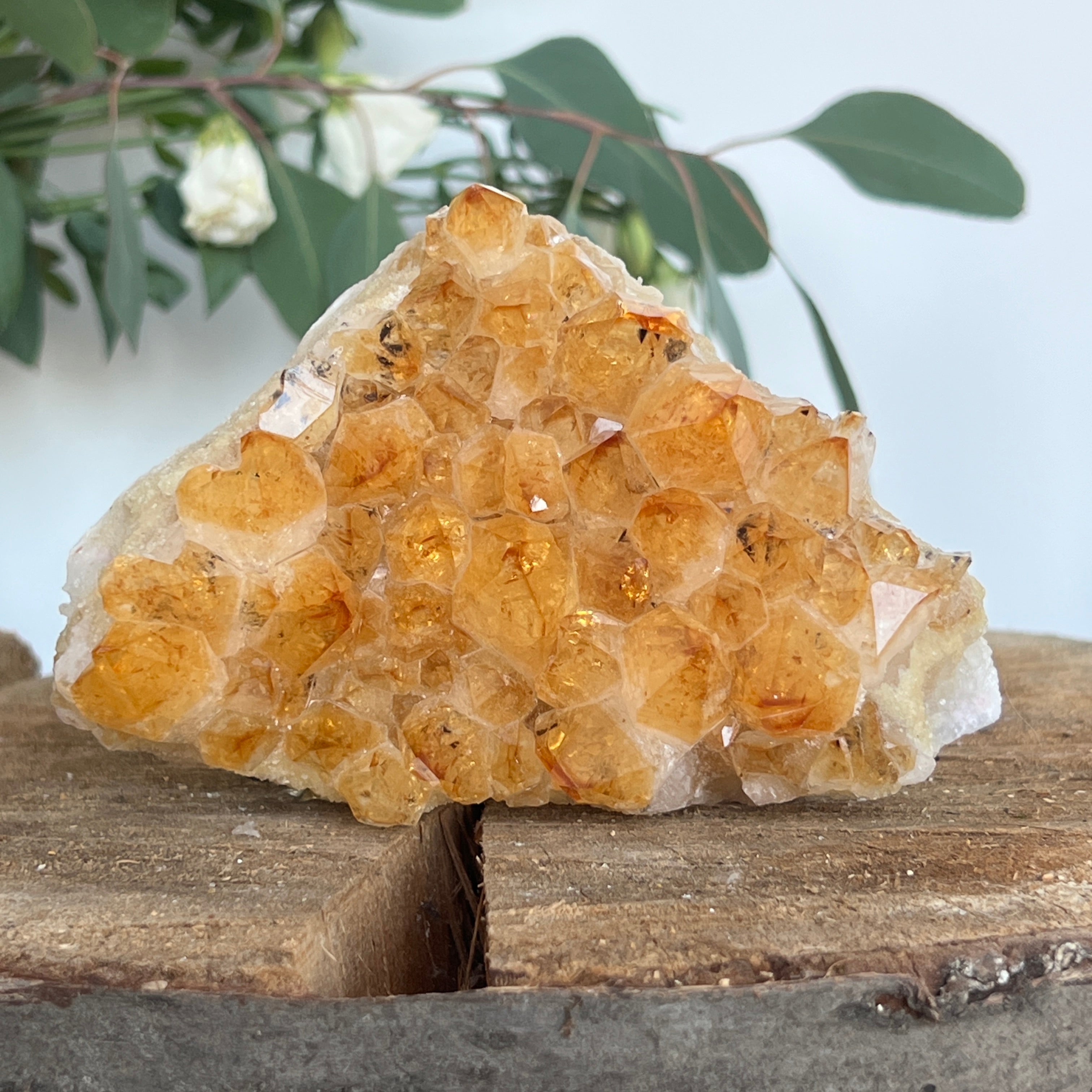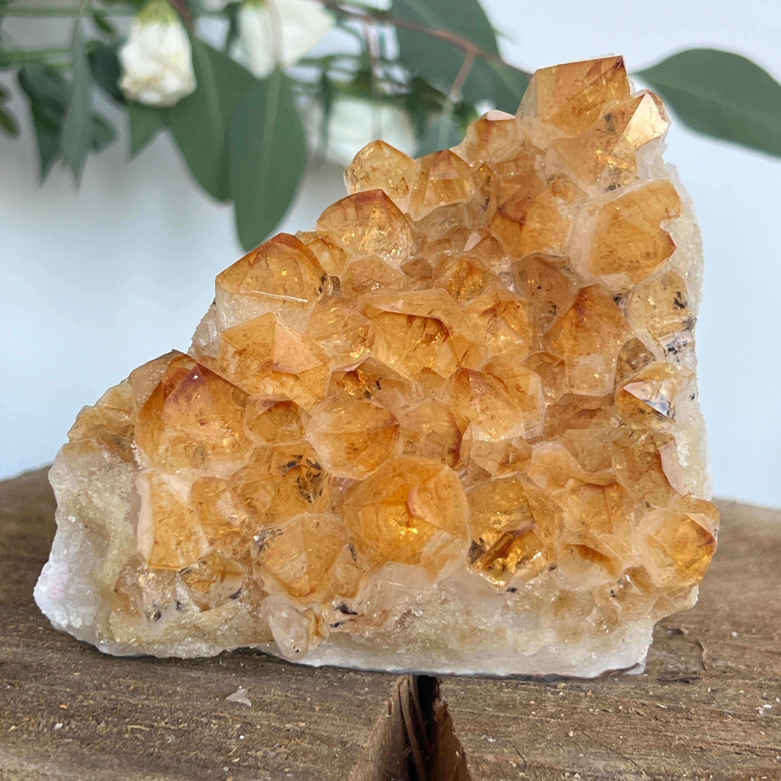 В кристалотерапията, цитринът се счита за камък на изобилието и оптимизма. Дори в термично обработена форма, нейната светлинна вибрация се възприема като опора за умствена яснота, радост и проявление на намерения. Клъстер с такъв размер и интензивност се превръща в истинска точка светлина в пространството, привличайки хармония и просперитет.