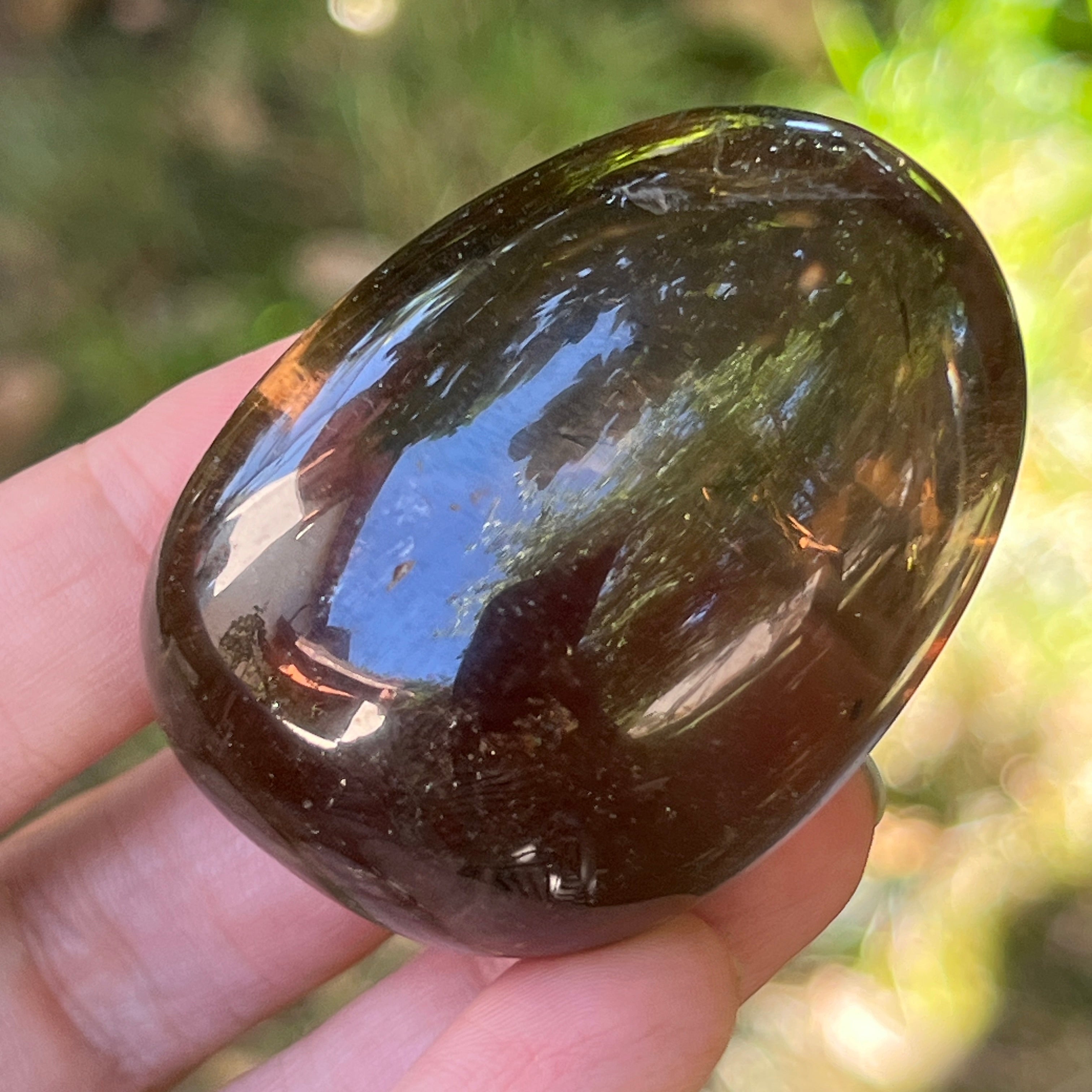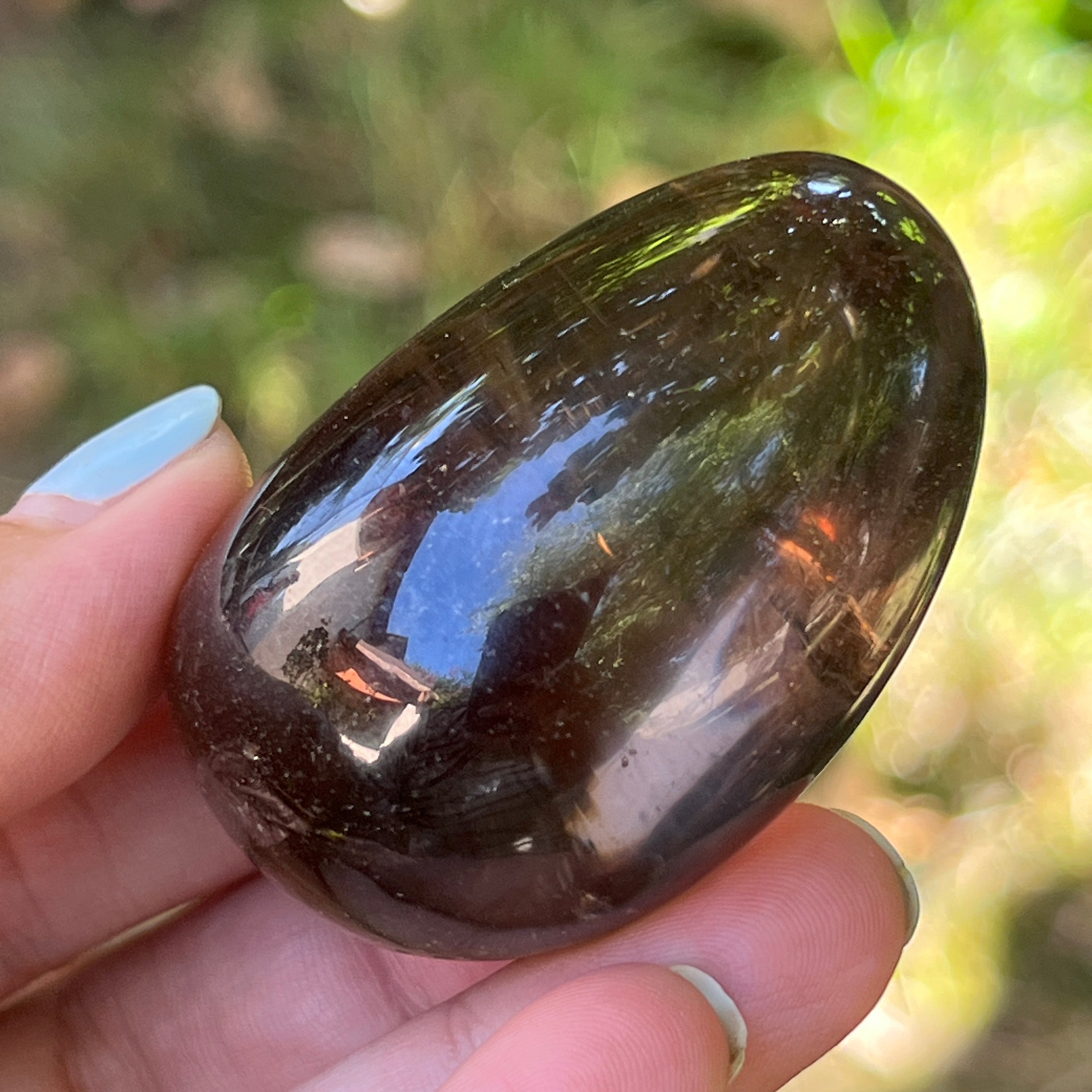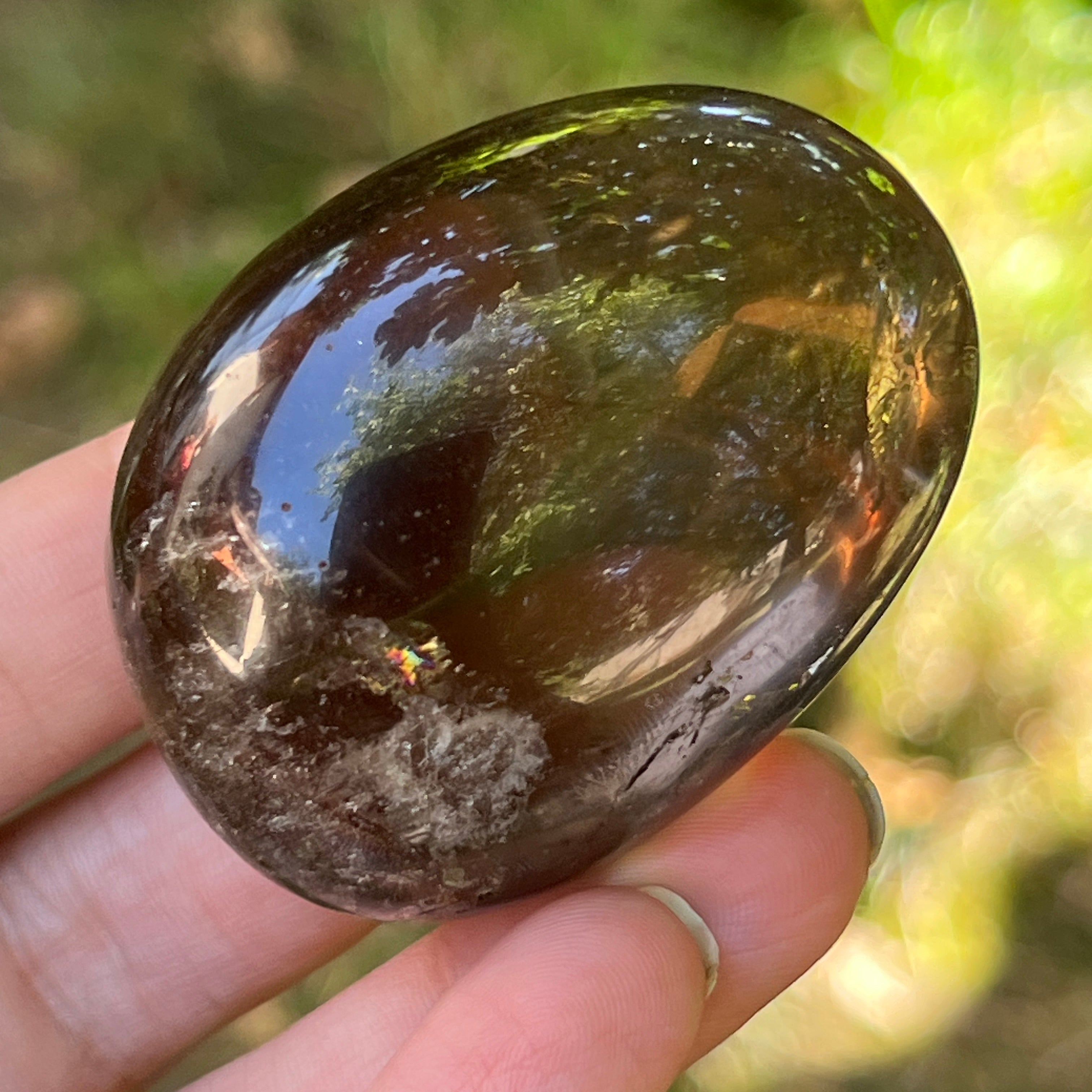 Внимателно оформен, за да пасне перфектно в дланта, този палмстоун от димчат кварц не е просто камък – той е опора в средата на ежедневния хаос. Със своите земни нюанси, от полупрозрачно кафяво до по-дълбоки тонове, димчатият кварц носи в себе си спокойствието на древните скали и търпението на планините.