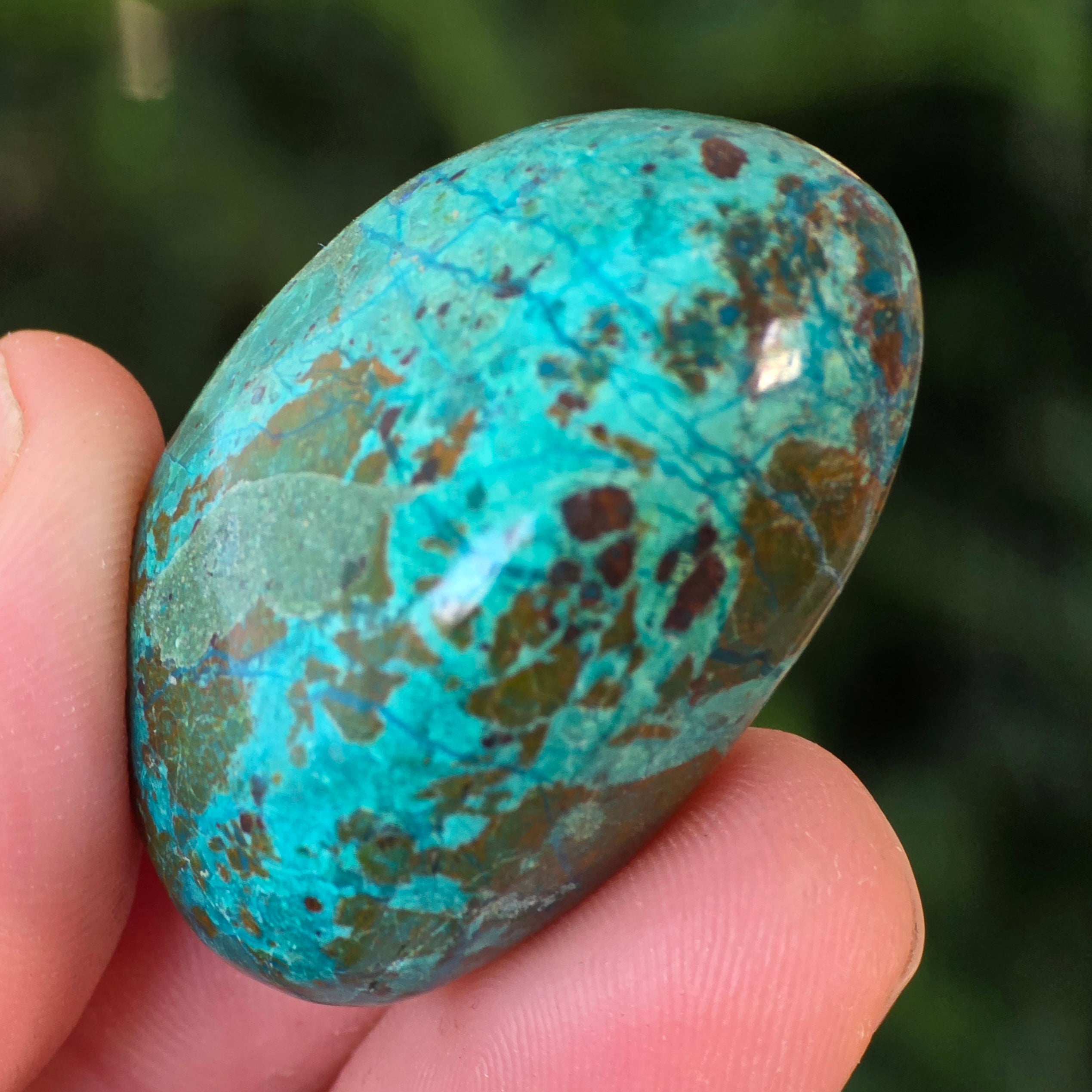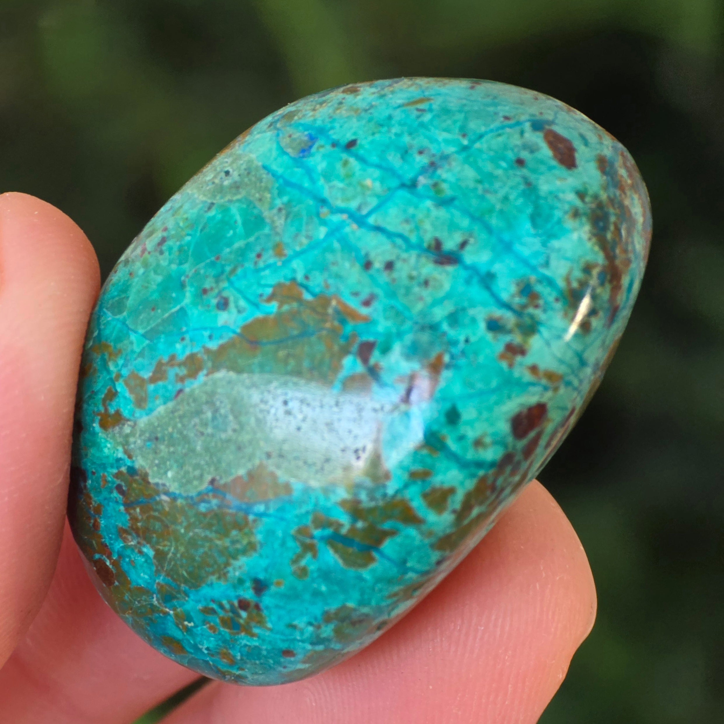 Крисколата е полускъпоценен камък със зелено-син цвят, който съдържа мед.