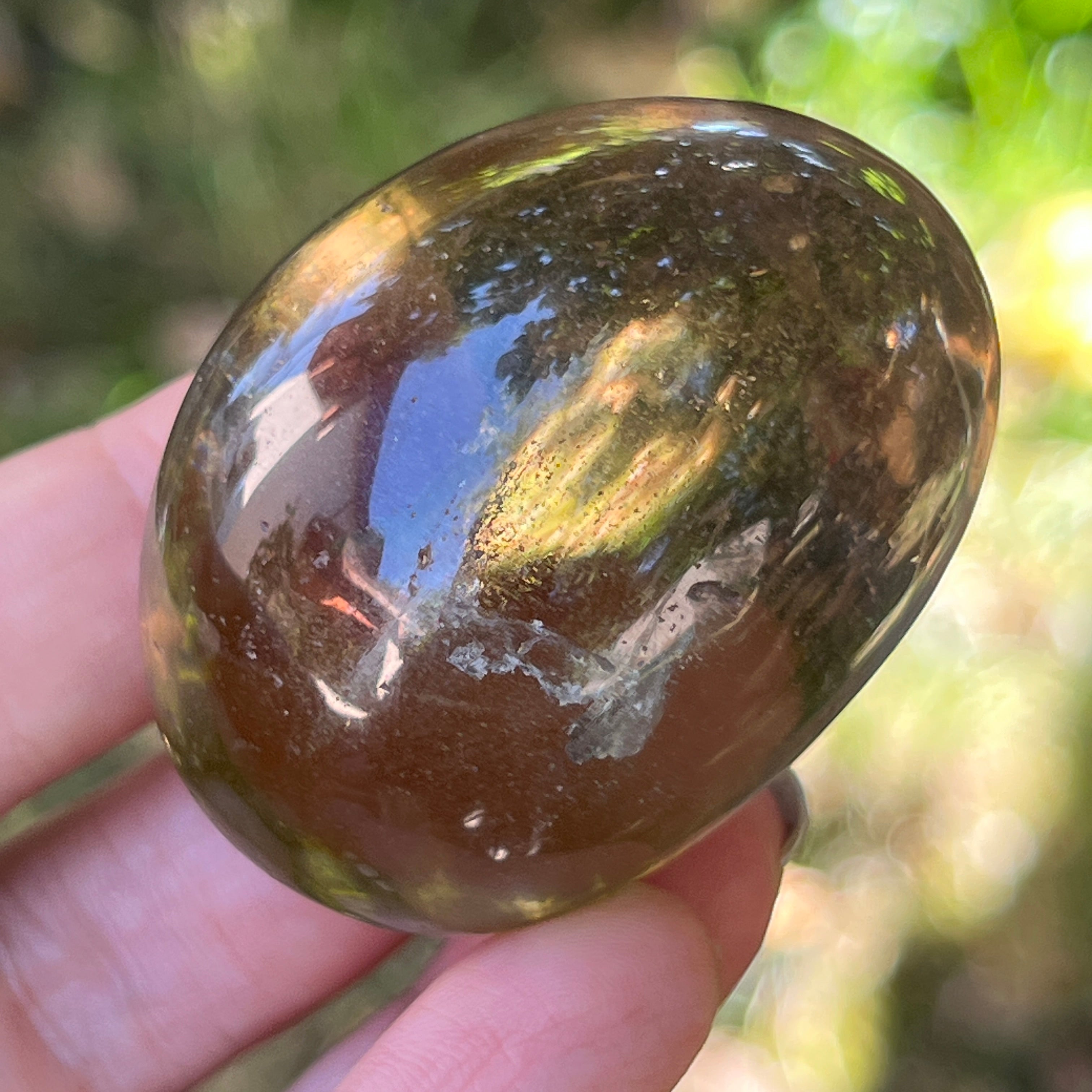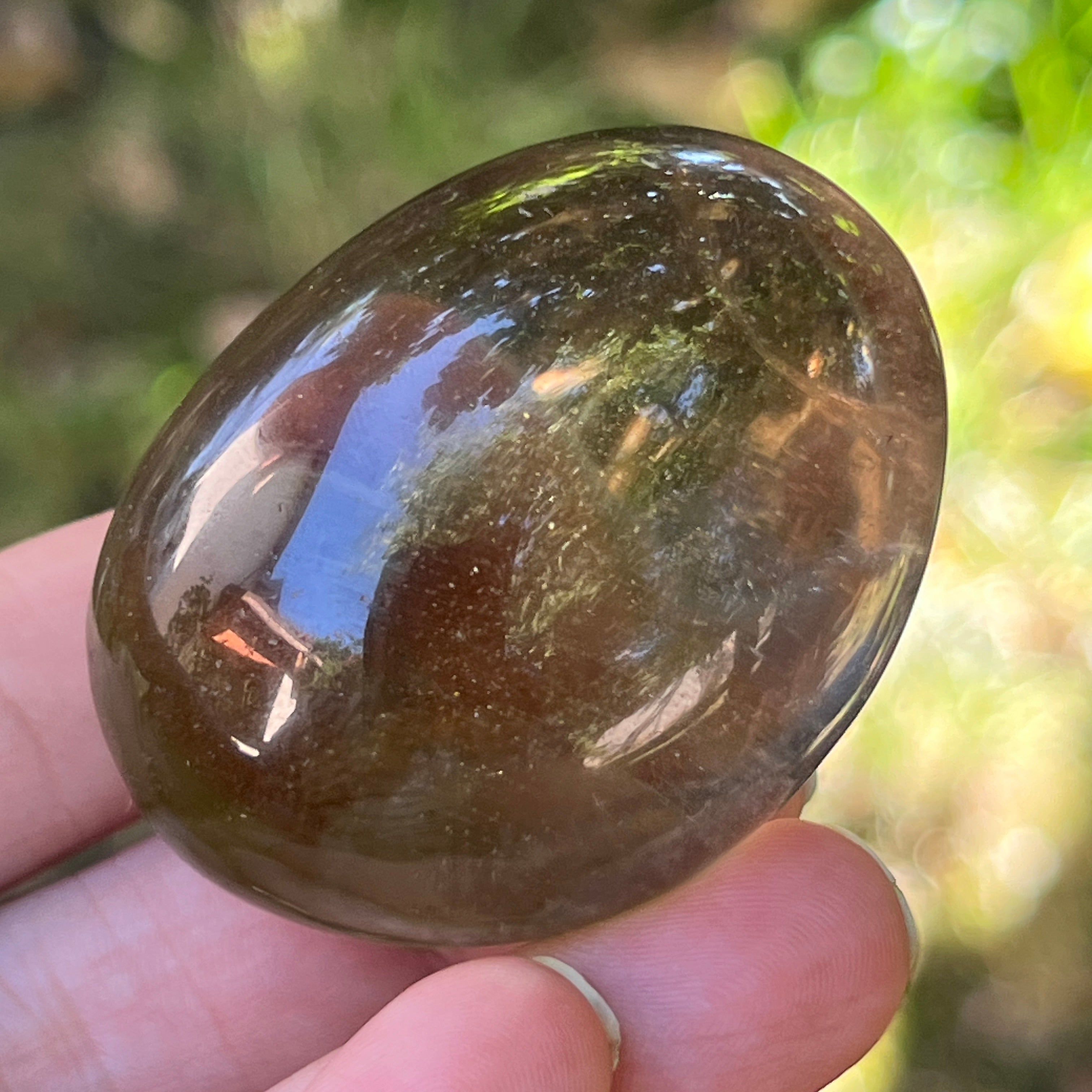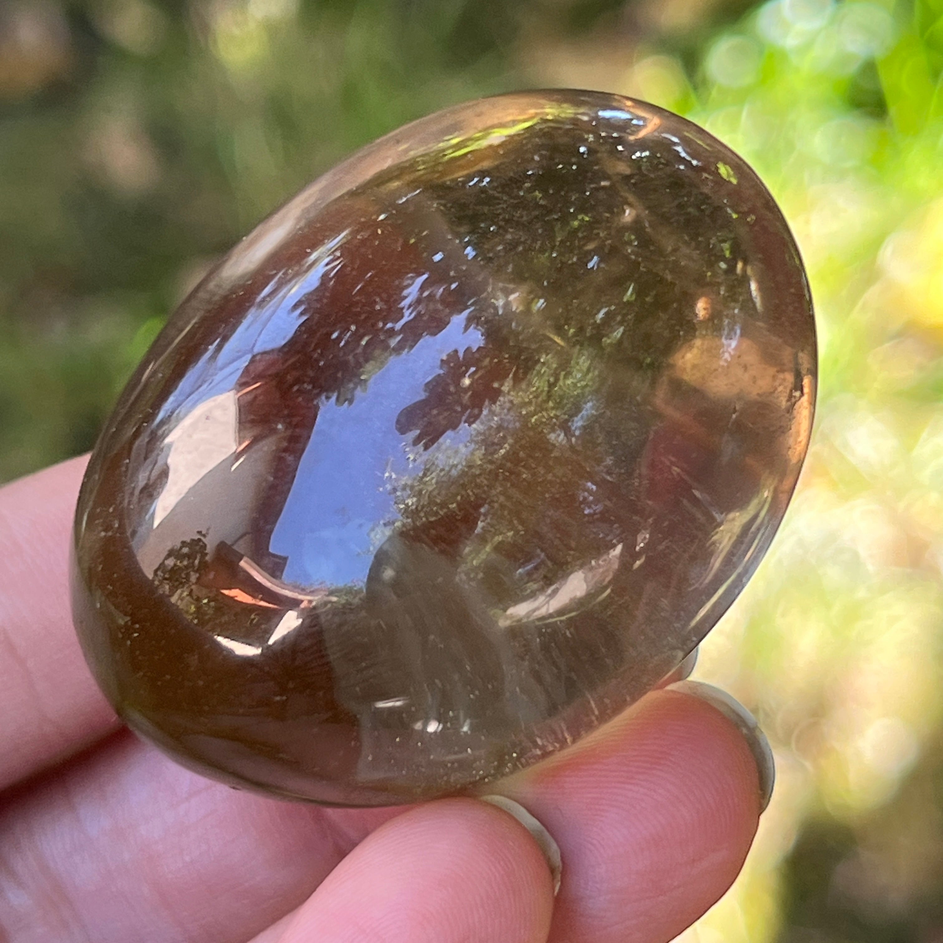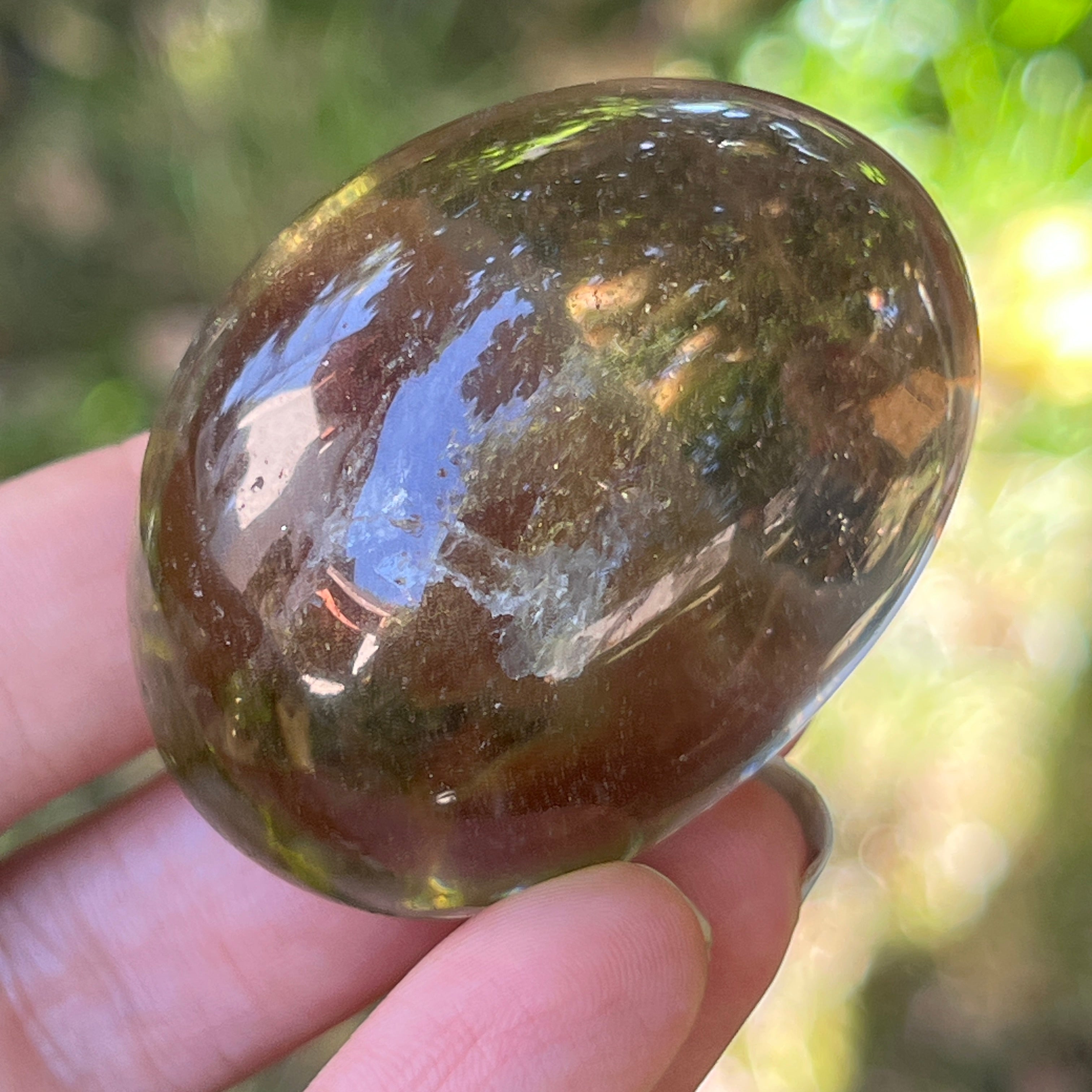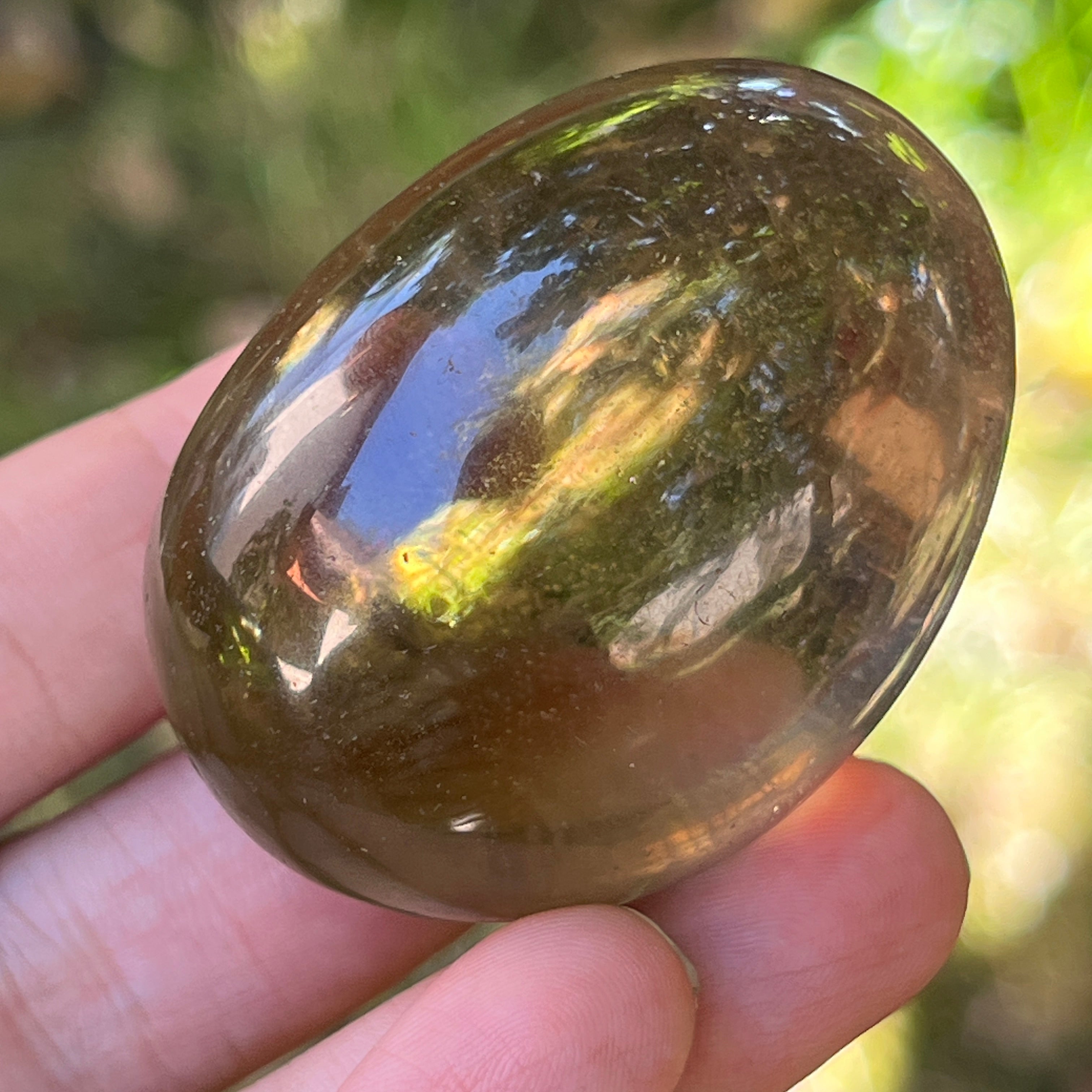 Внимателно оформен, за да пасне перфектно в дланта, този палмов камък от димен кварц не е просто камък – той е опора в средата на ежедневния хаос. С наситените си земни тонове, от прозрачнокафяви до по-дълбоки нюанси, димният кварц носи в себе си спокойствието на древните скали и търпението на планините.