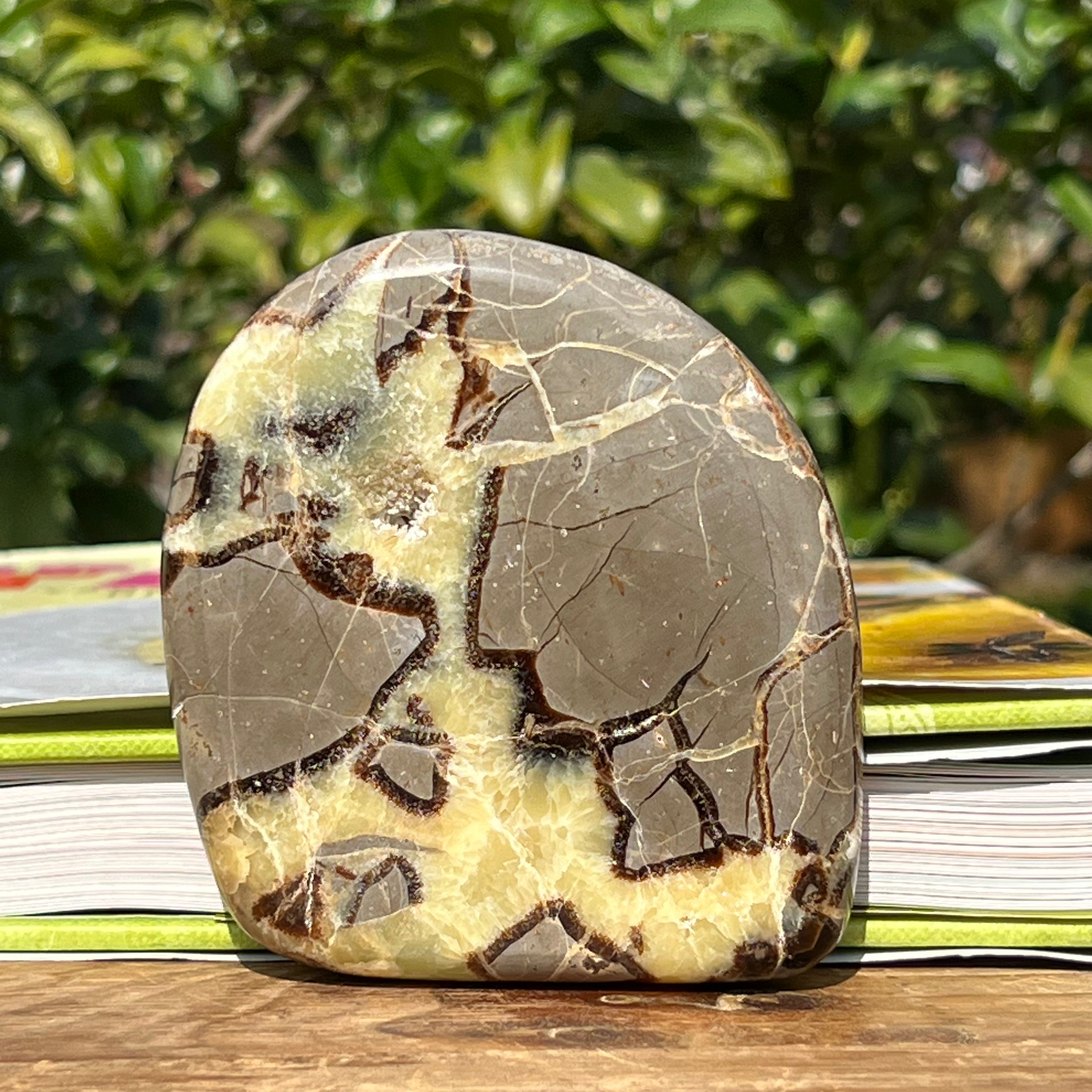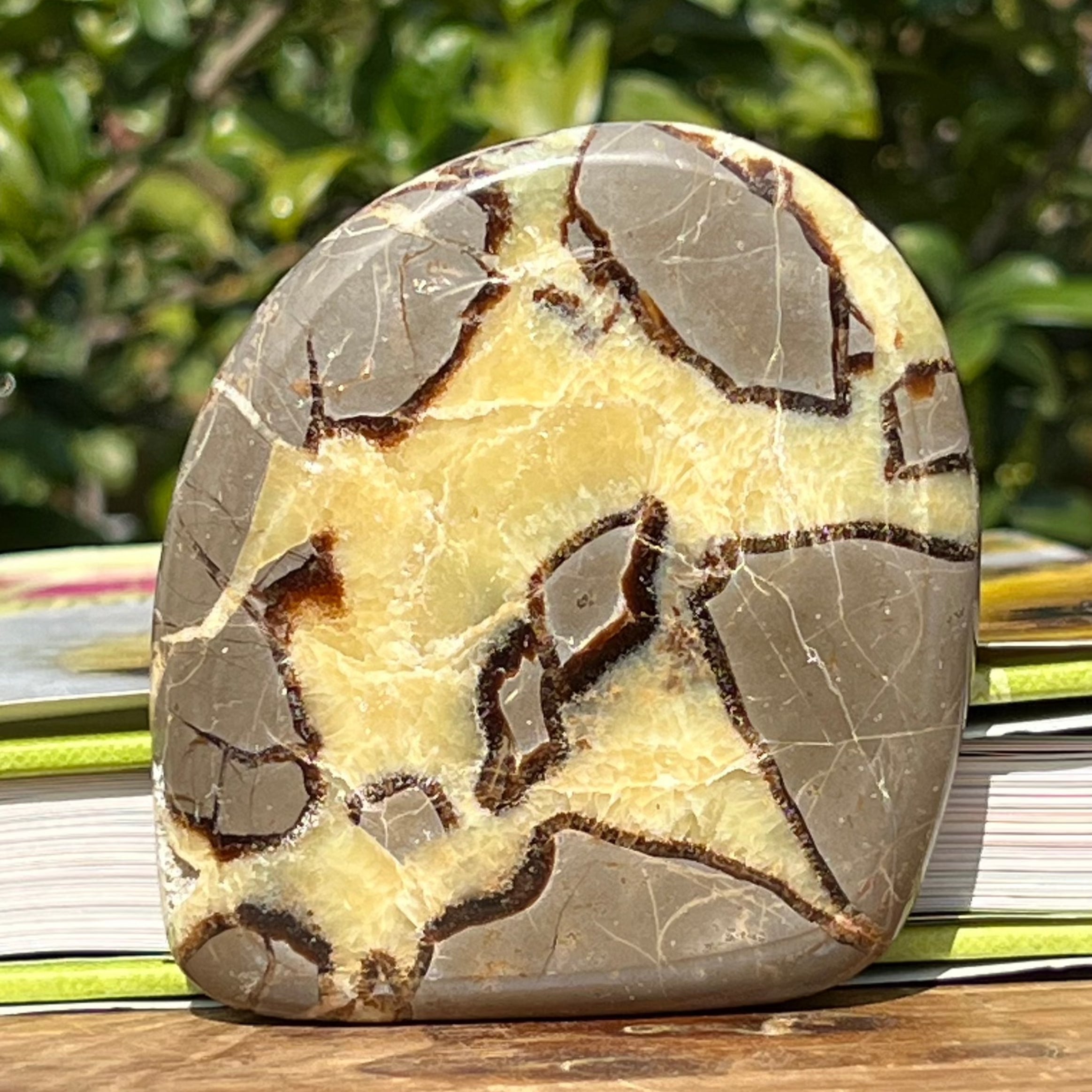 Септарията се състои от калцит, лимонит, гипс и барит, минерали, които създават уникално съчетание в този камък и му придават специфичен външен вид.