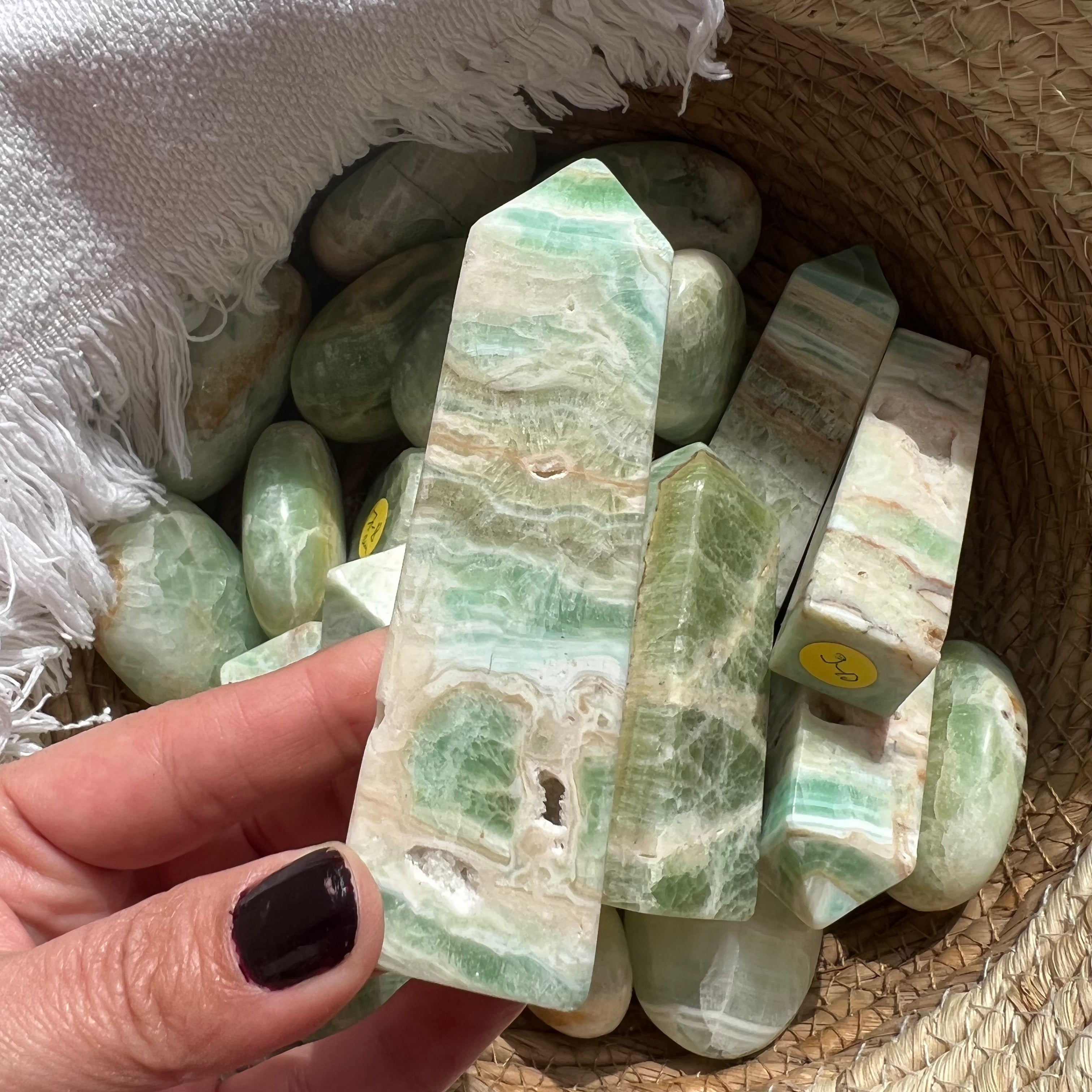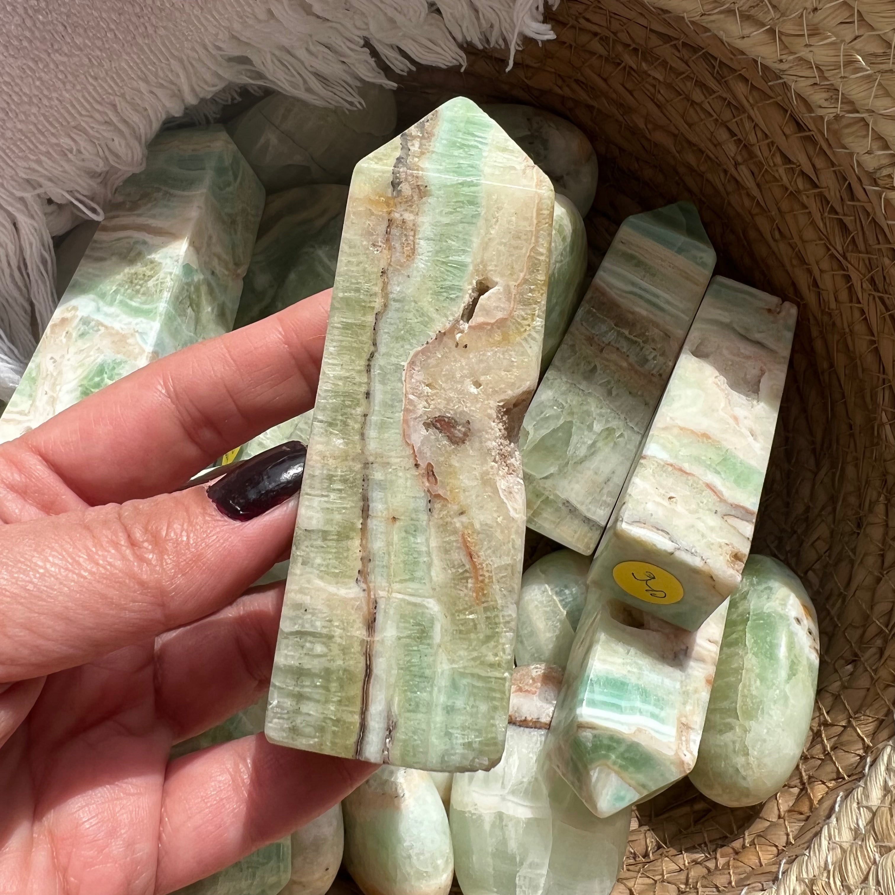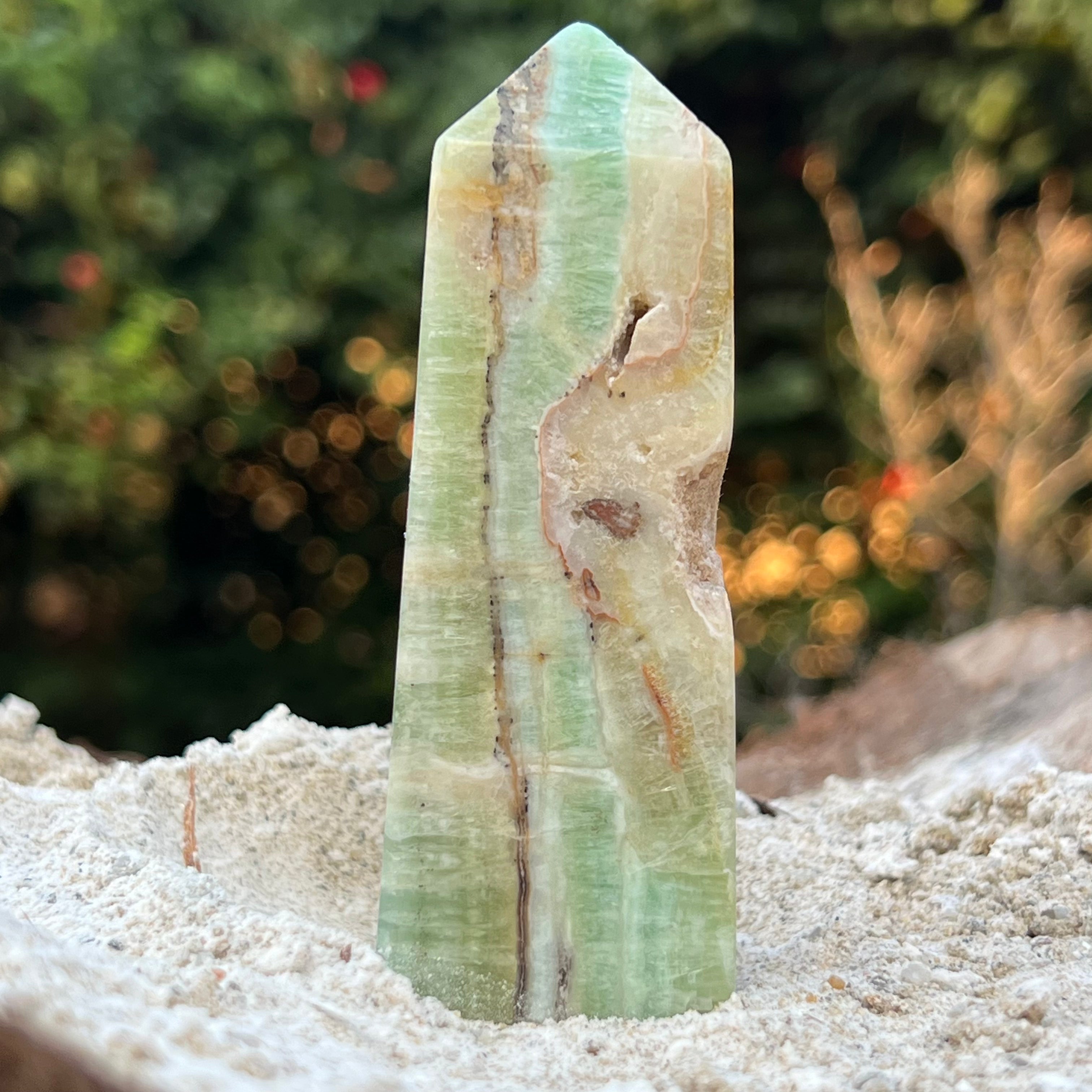 Фисташков калцит, въртящ се/обелиск 9-10 см