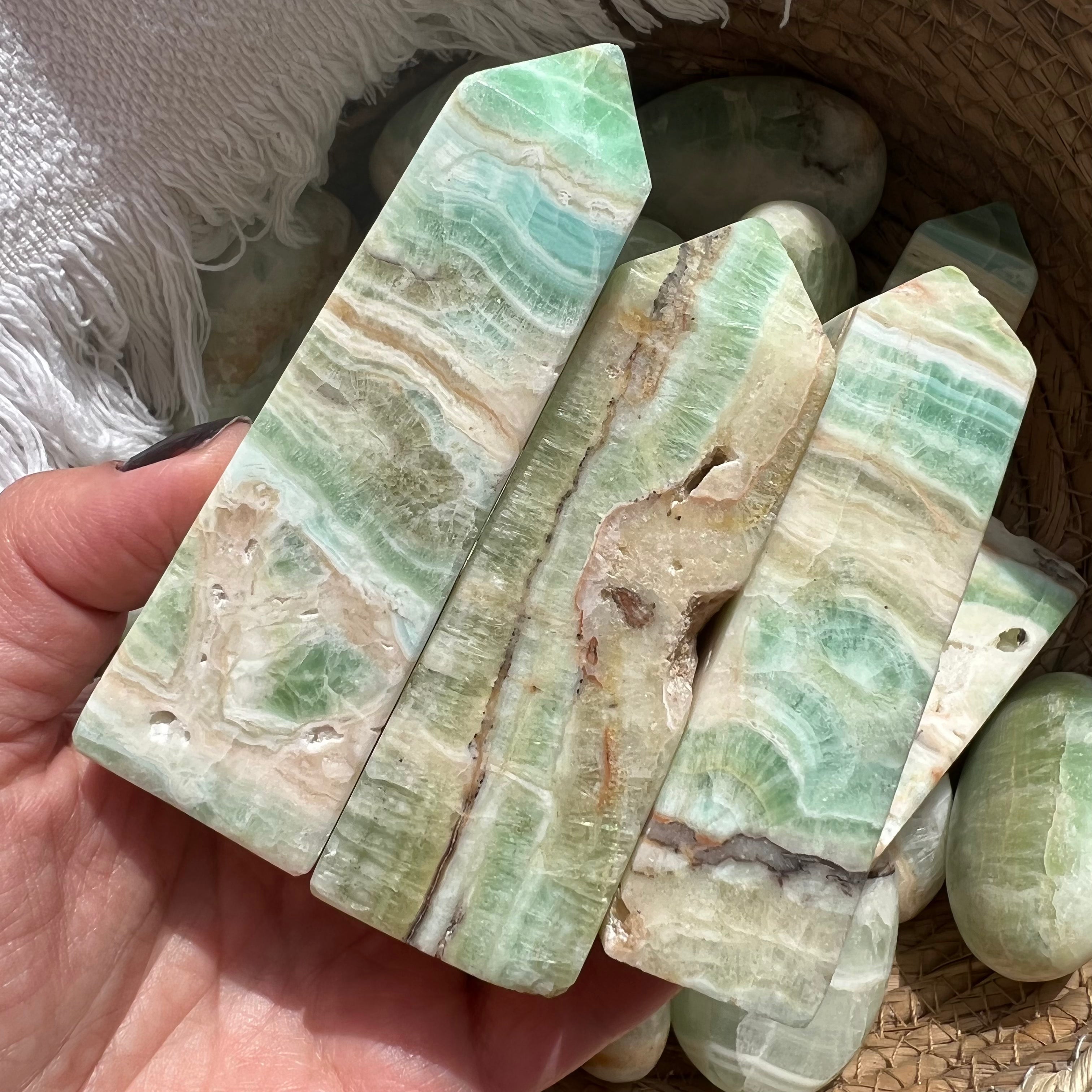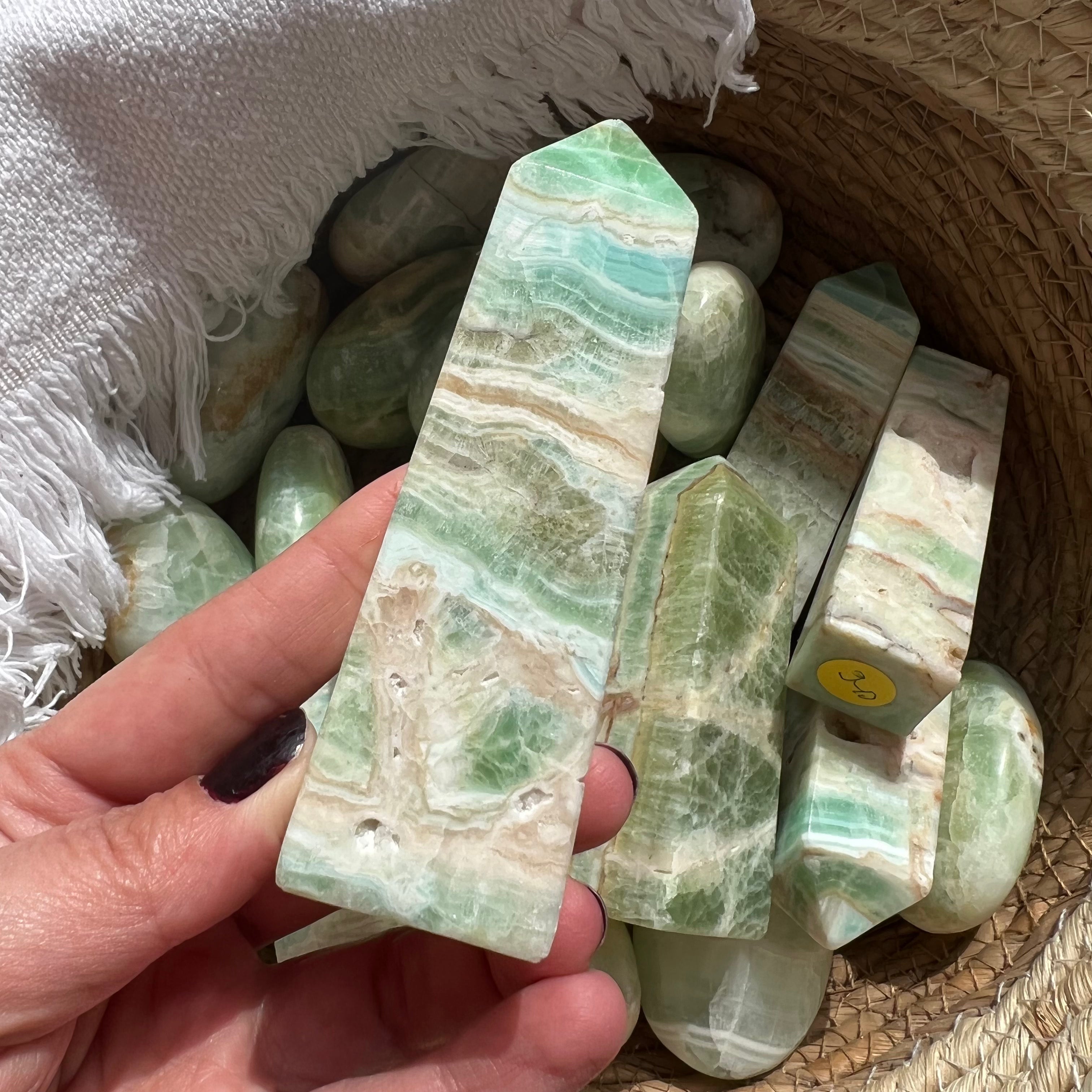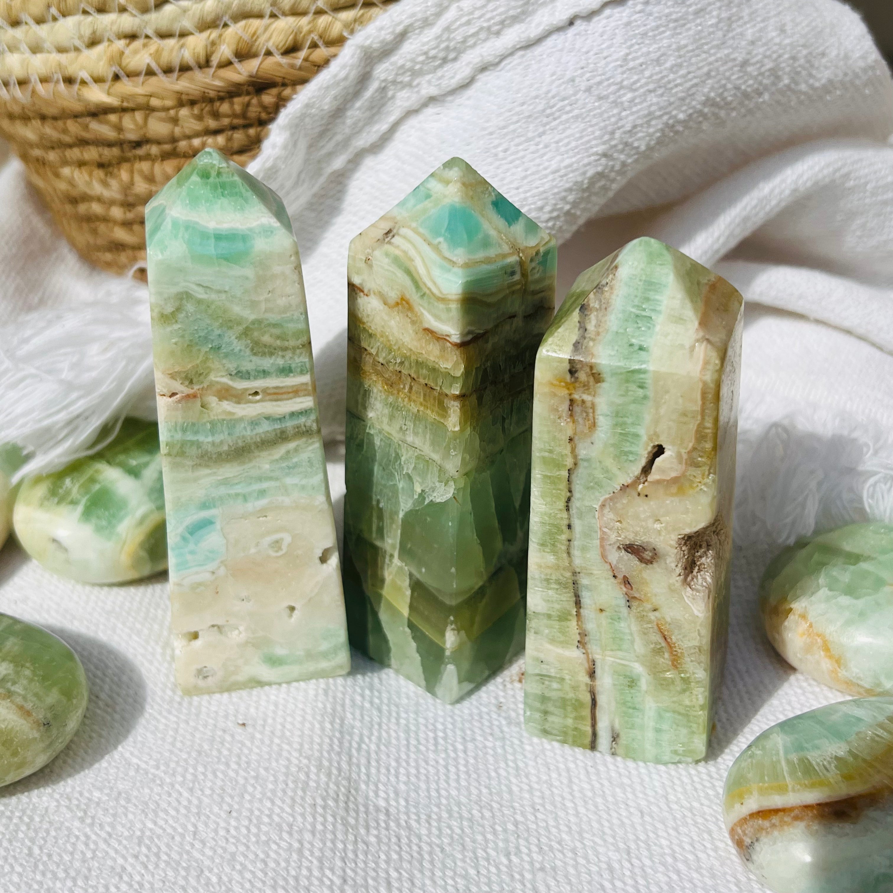 Фисташков калцит, въртящ се/обелиск 9-10 см
