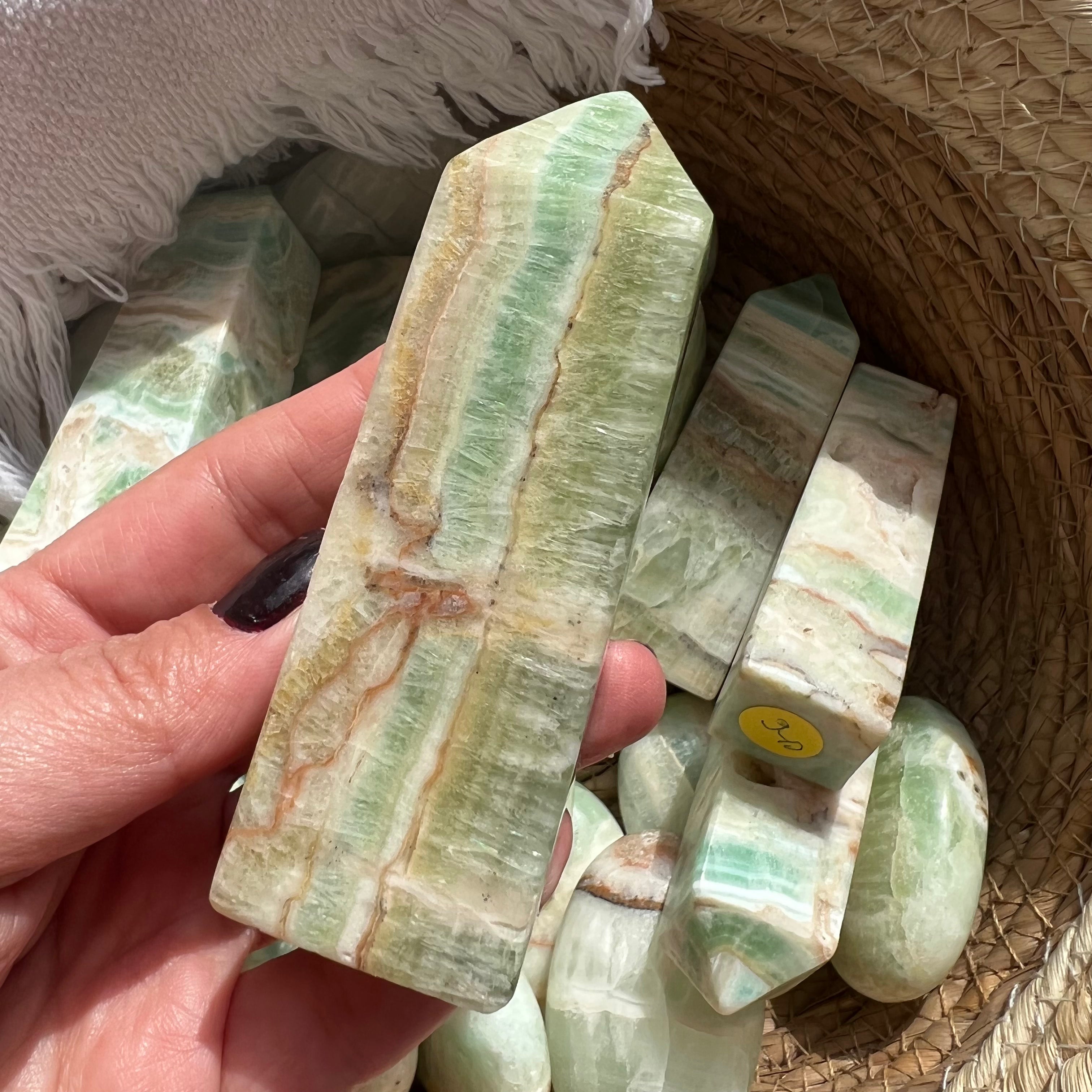 Фисташков калцит, въртящ се/обелиск 9-10 см, размер: 9-10 см