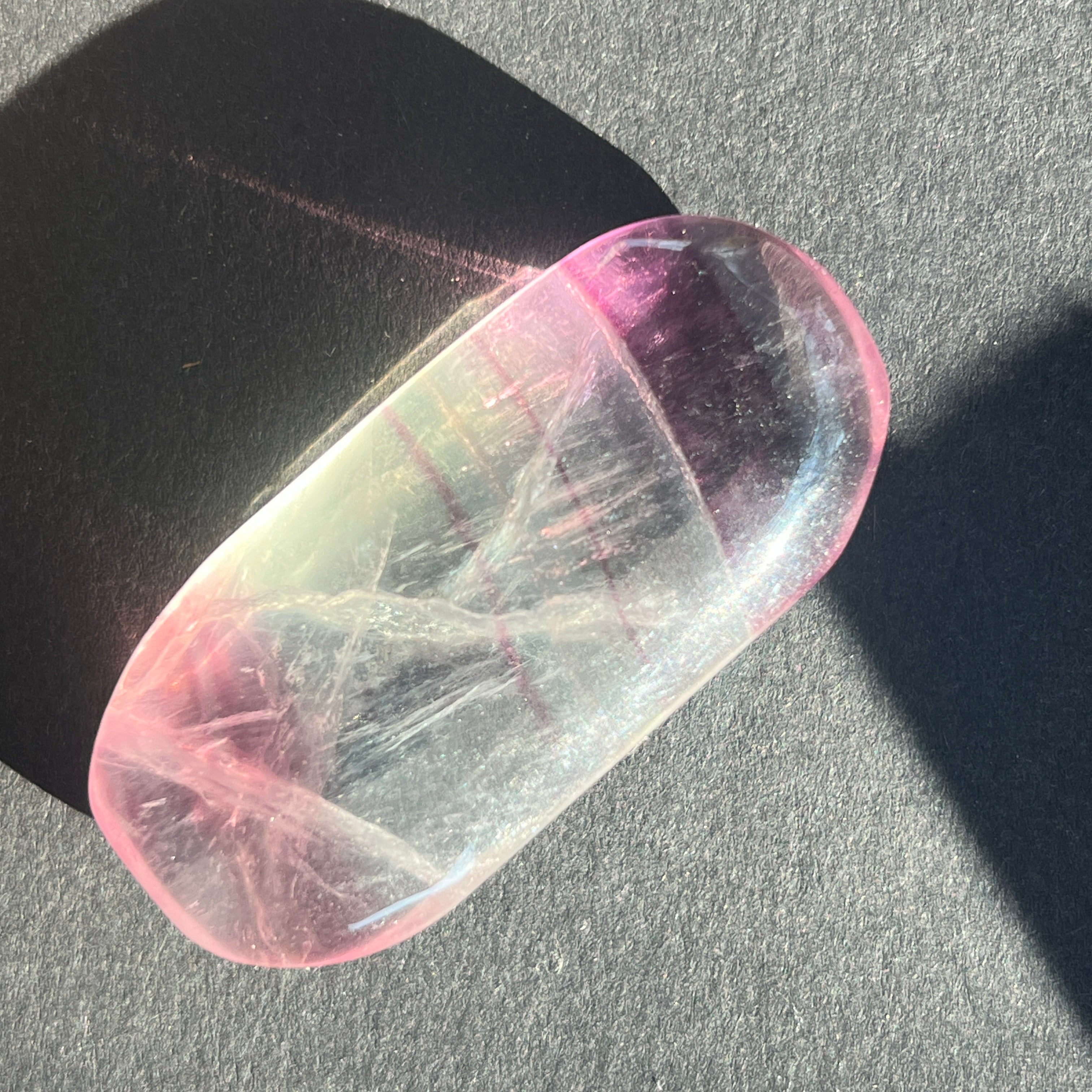 Дъговият флуорит помага за балансиране и хармонизиране на околната енергия и често се използва, за да видим ситуации от различни ъгли и да разширим нашите перспективи.