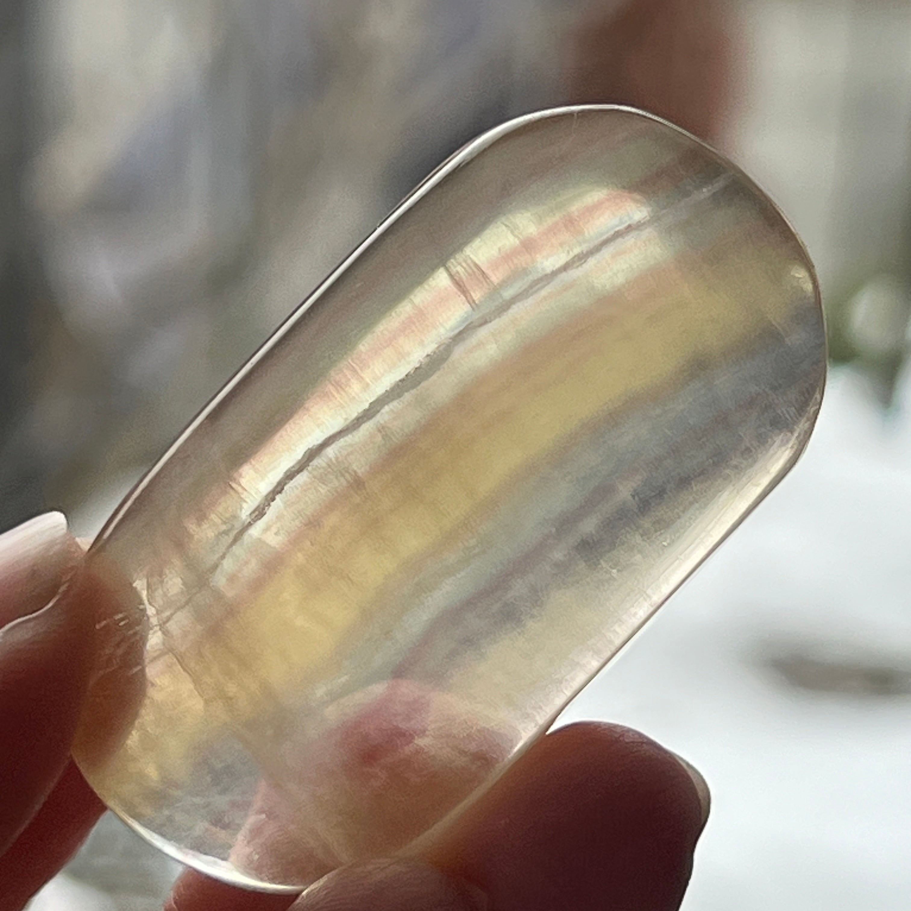 Дъговият флуорит помага за балансиране и хармонизиране на околната енергия и често се използва, за да видим ситуации от различни ъгли и да разширим нашите перспективи.