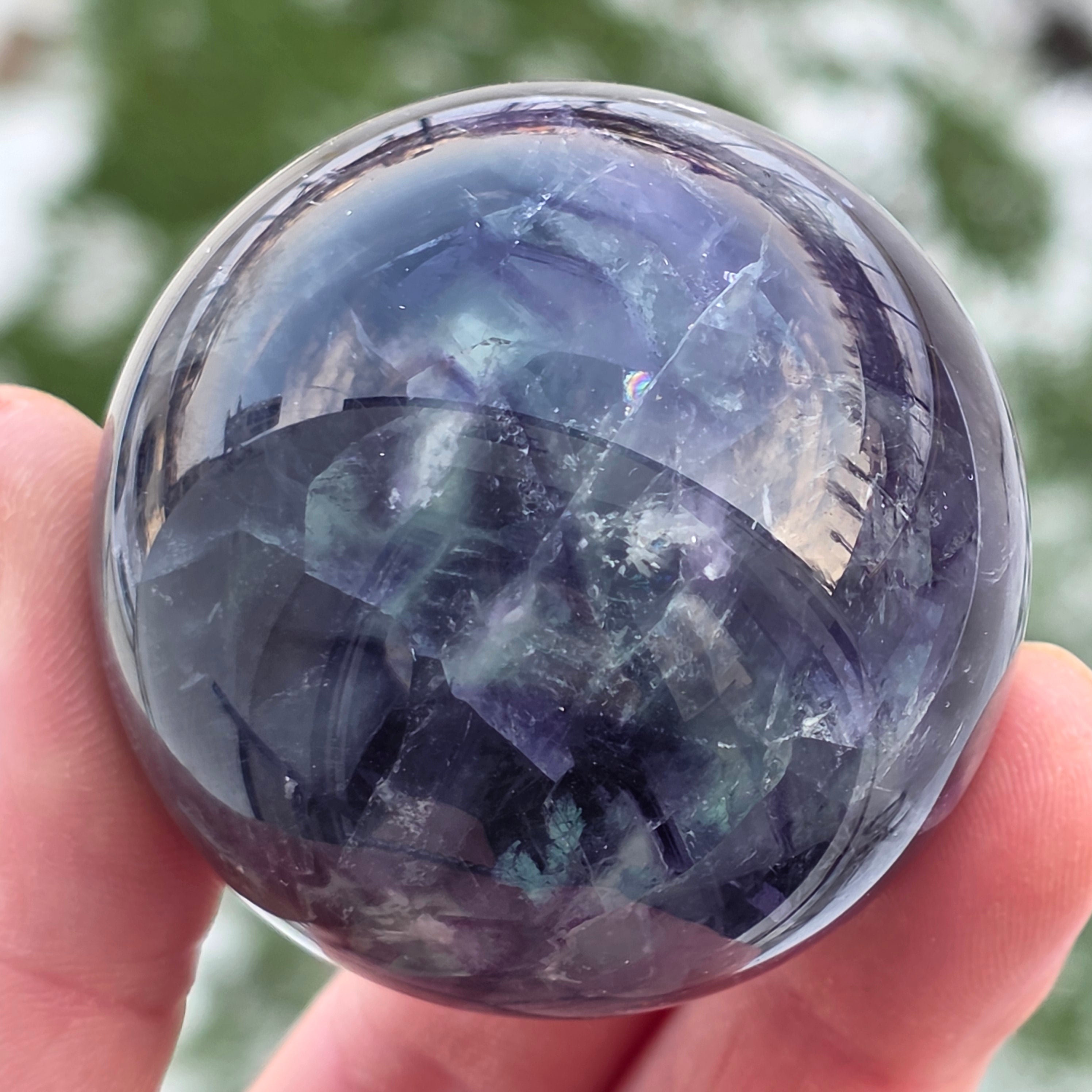 Дъговият флуорит помага за балансиране и хармонизиране на околната енергия и често се използва за виждане на ситуациите от различни гледни точки и разширяване на перспективите.