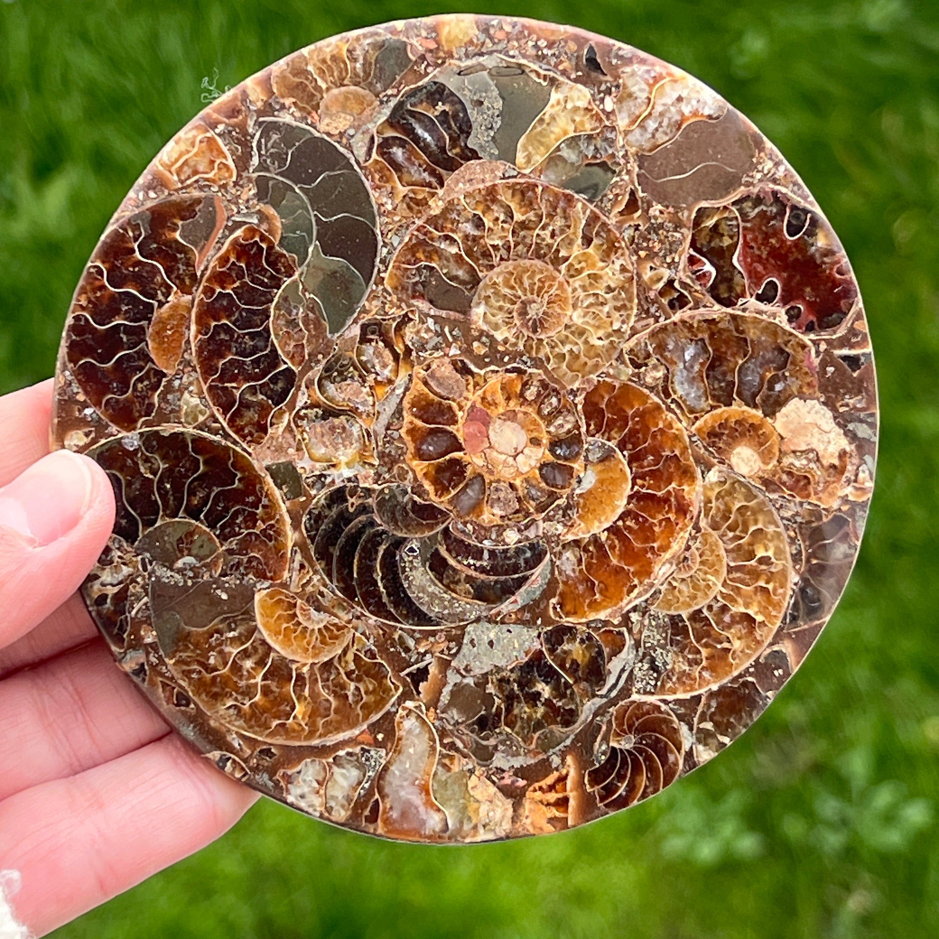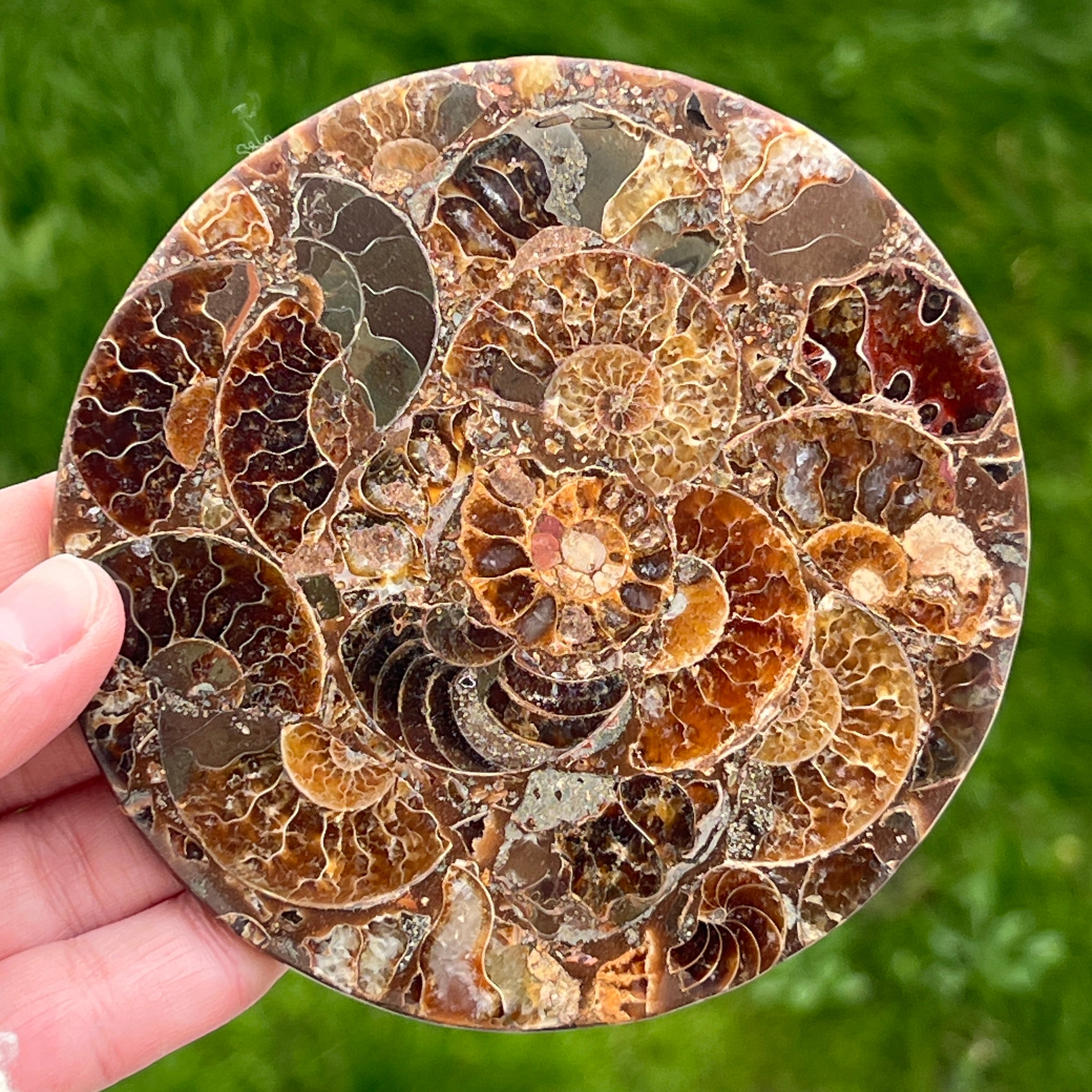 Кристалите от фосил амонит са изработени от автентични фосили на амонит. Тези фосили могат да имат различни размери и украси, в зависимост от вида и геологичния период, в който са живели.
