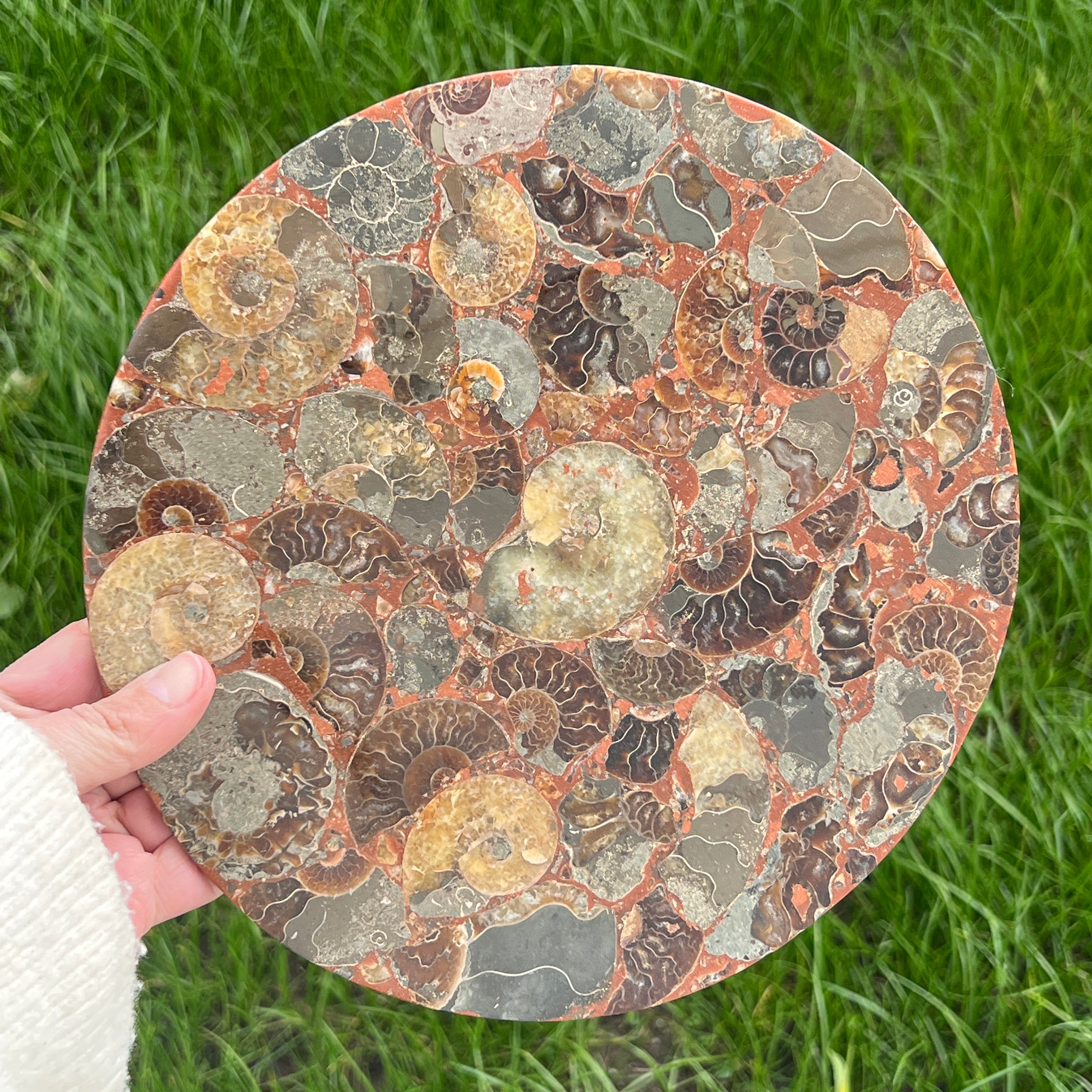 Кристалите от амонит са изработени от автентични амонитни фосили. Тези фосили могат да имат различни размери и орнаменти, в зависимост от вида и геологичния период, през който са живели.