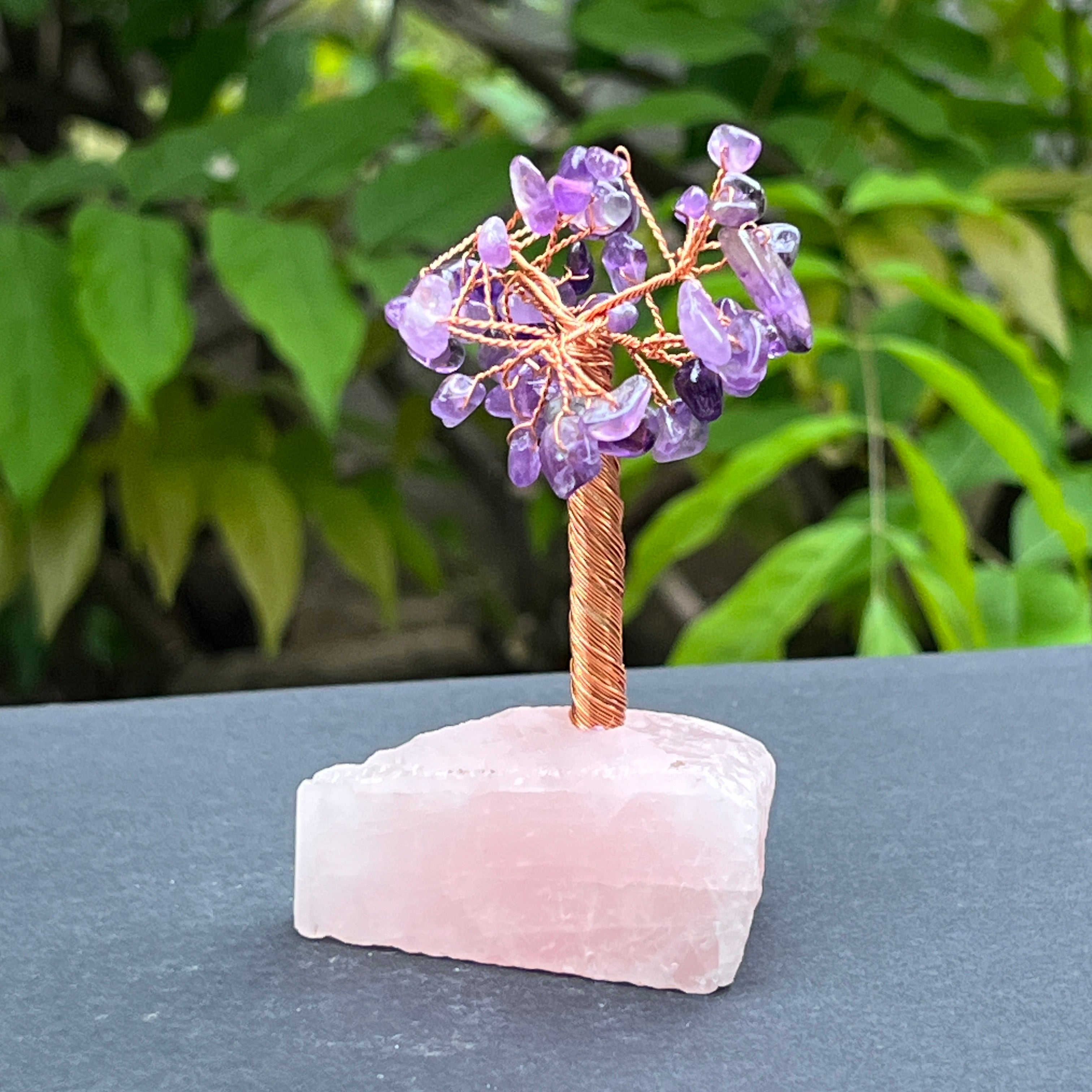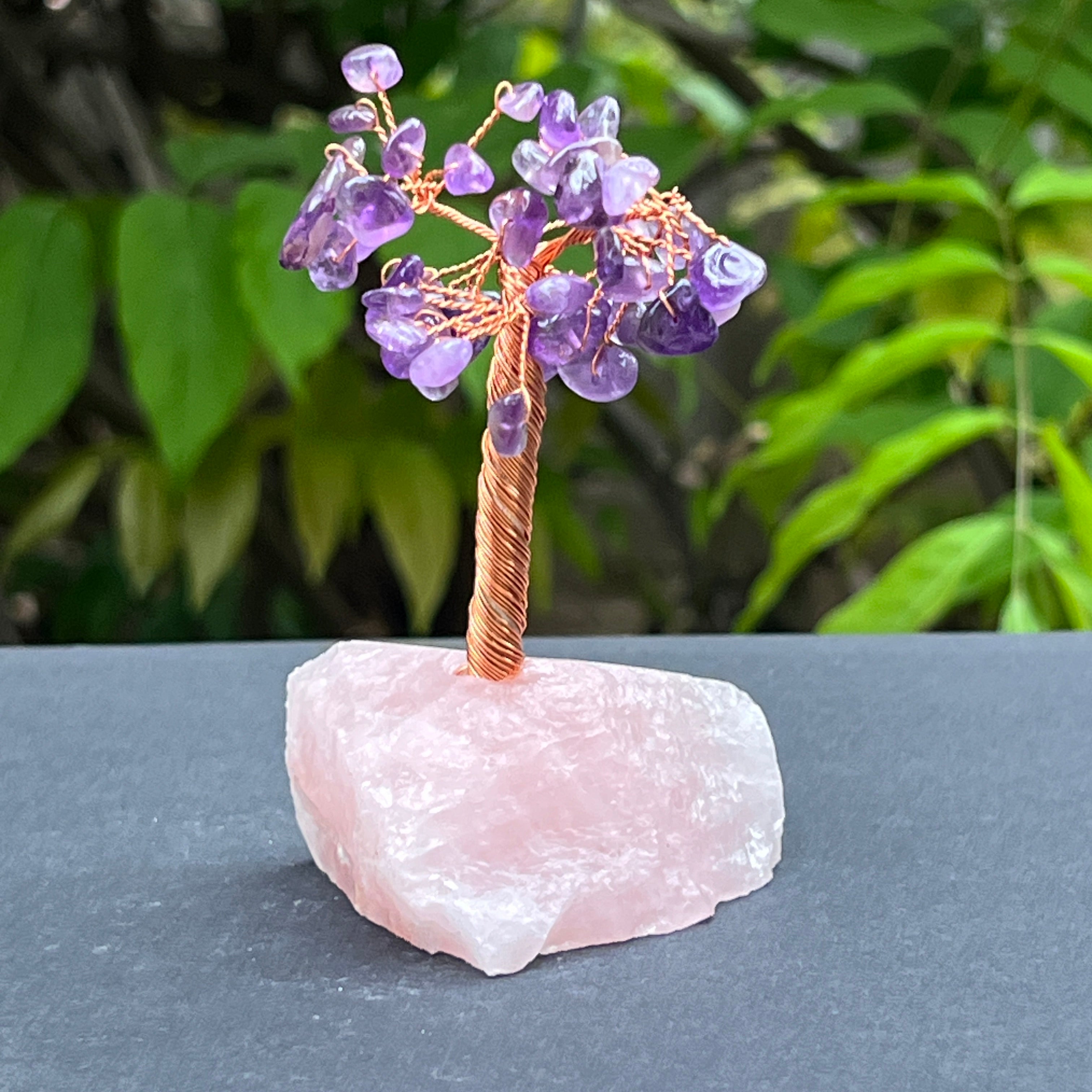 Фън шуй дърво с аметист върху основа от розов кварц – размер S