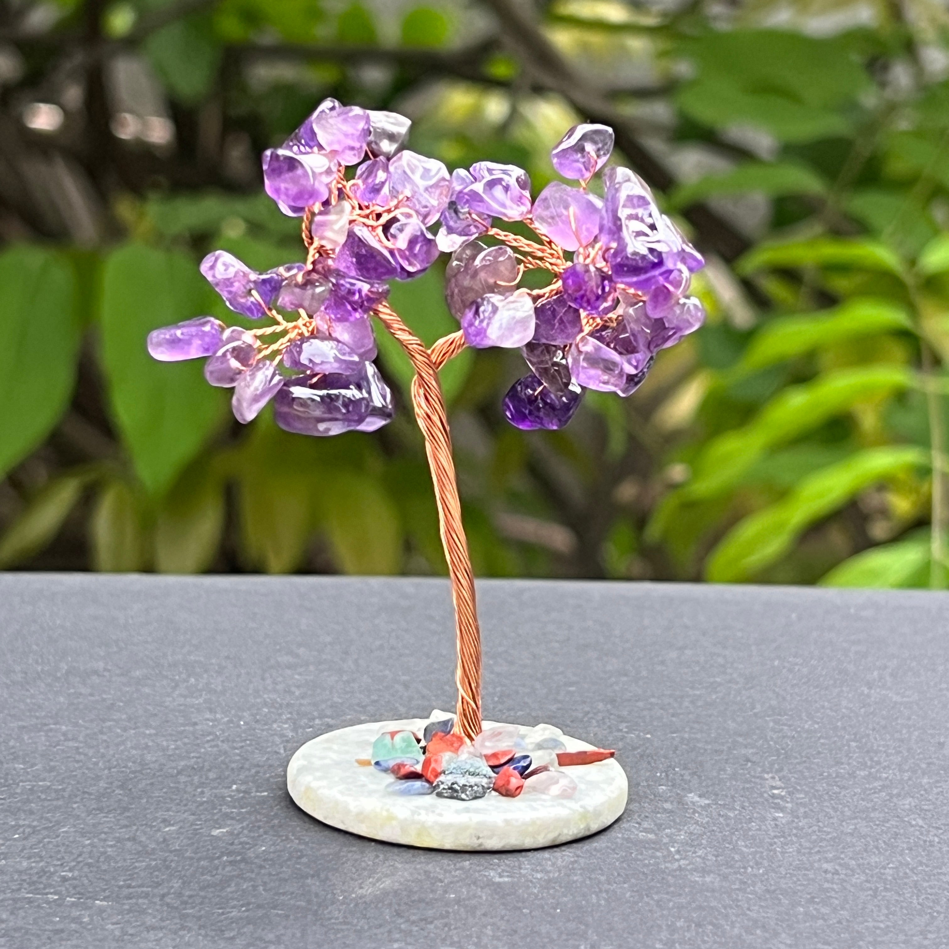 Това фън шуй дърво е декоративен предмет с високи вибрации, създадено да носи спокойствие, защита и вътрешен баланс. Листата от аметист – камъкът на духовността, умствената яснота и спокойствието – подпомагат медитацията, интуицията и дълбоката релаксация. Основата от натурален жадеит, известен с защитните си свойства, хармония и мъдрост, стабилизира енергията на дървото и усилва благотворното му влияние.