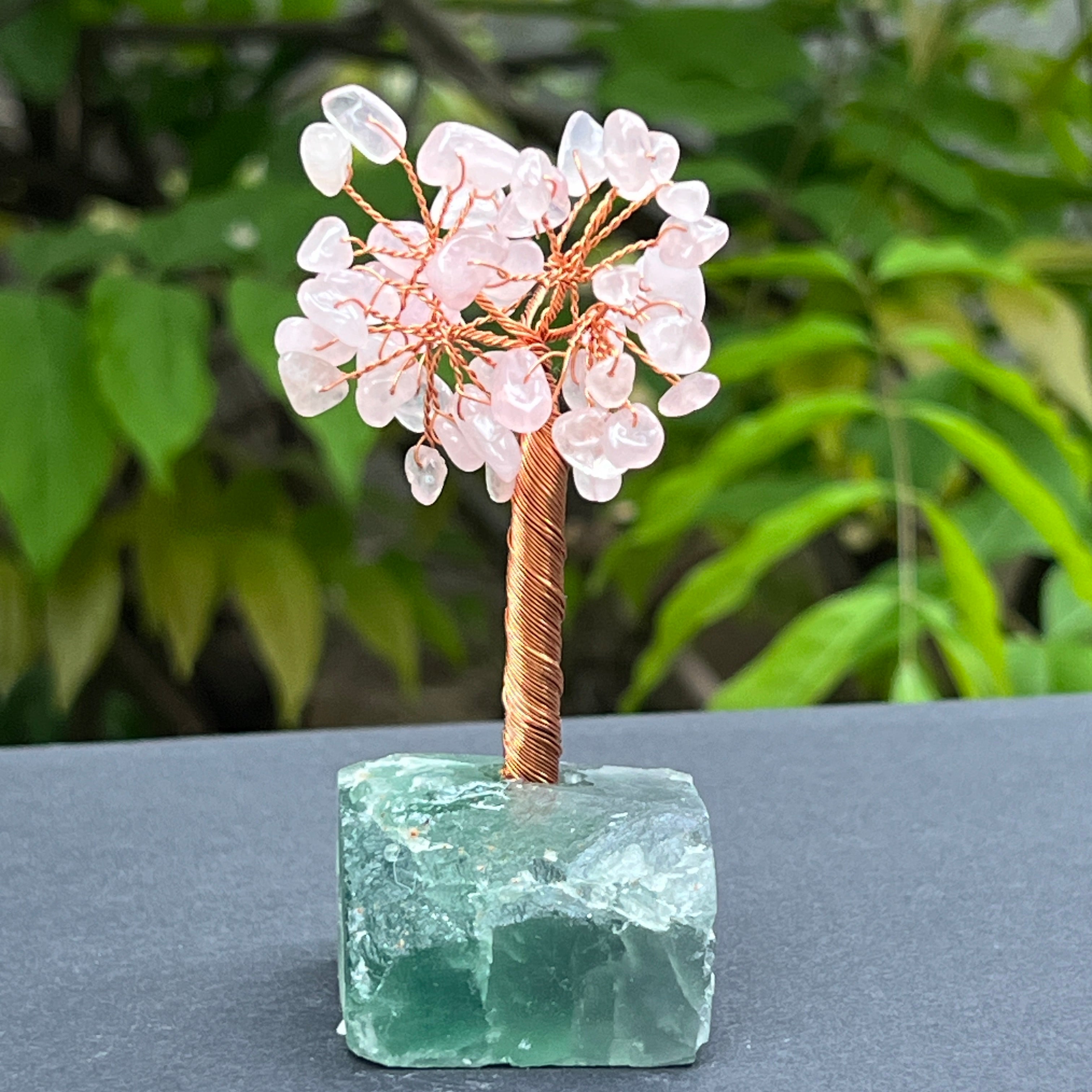 Това деликатно фън шуй дърво комбинира меката енергия на любовта с яснотата и умствената защита. Листата от розов кварц, известен във фън шуй като камък на сърцето, подкрепят безусловната любов, емоционалния баланс и хармонията в отношенията. Основата е изработена от необработен флуорит, кристал, асоцииран с пречистване на мислите, психическа защита и подпомагане на вътрешната яснота.