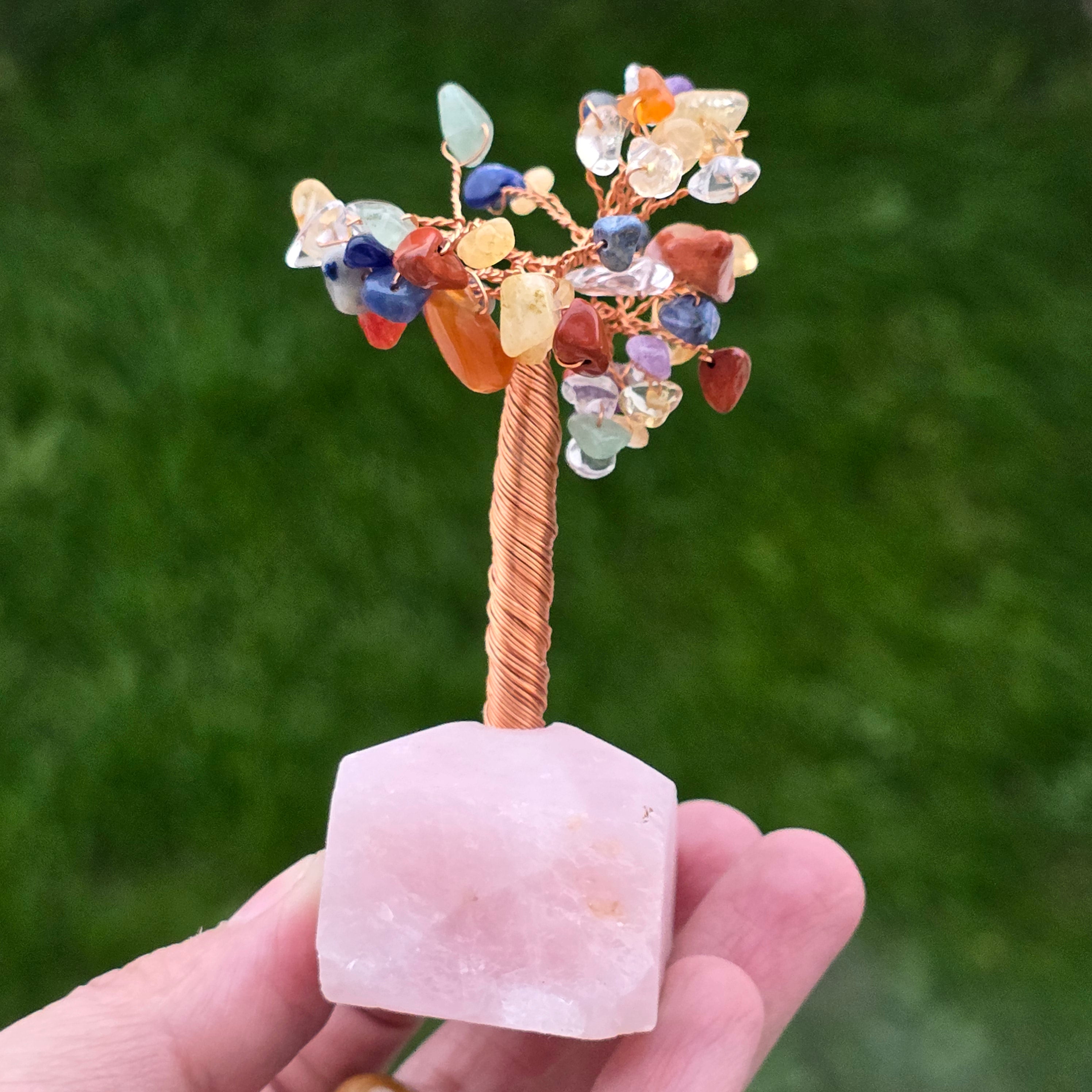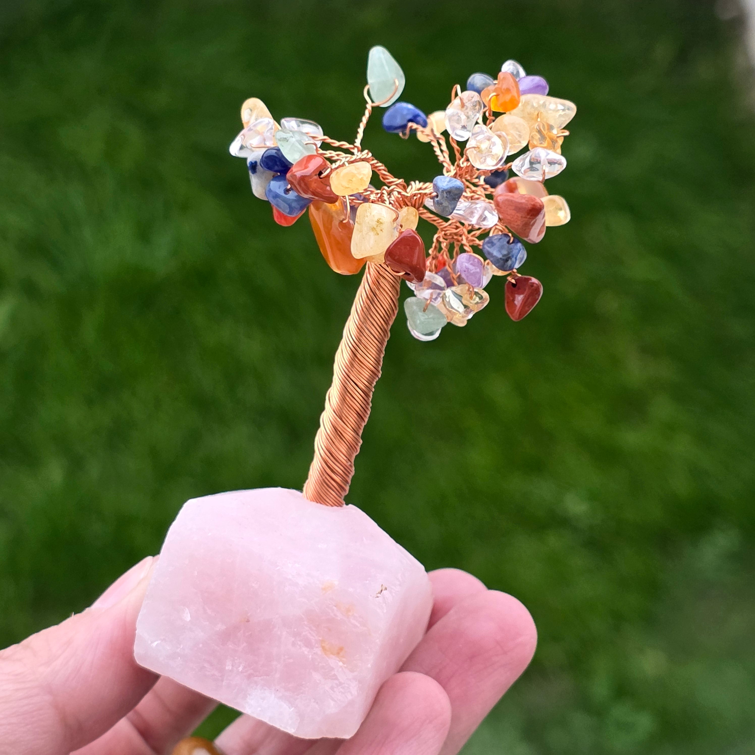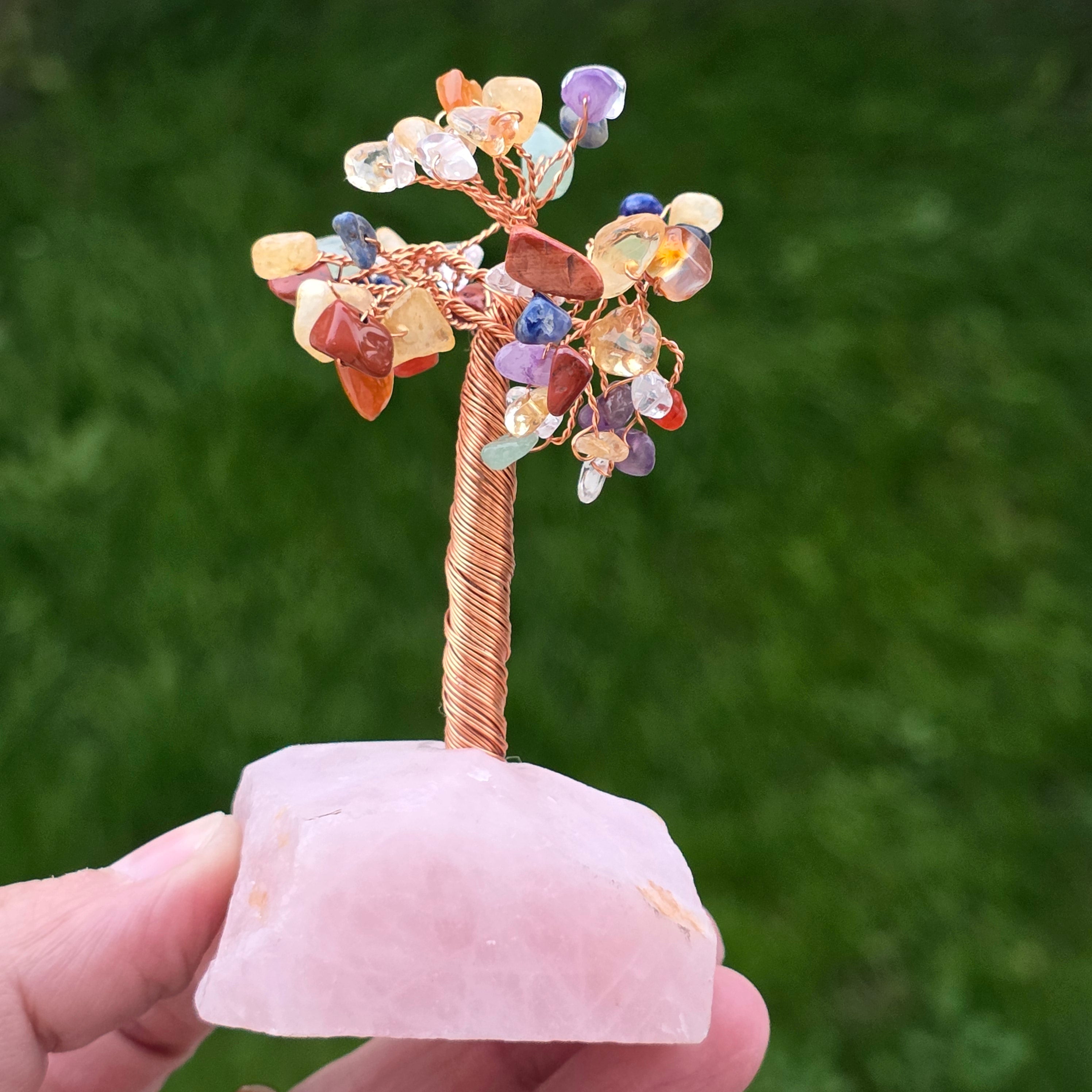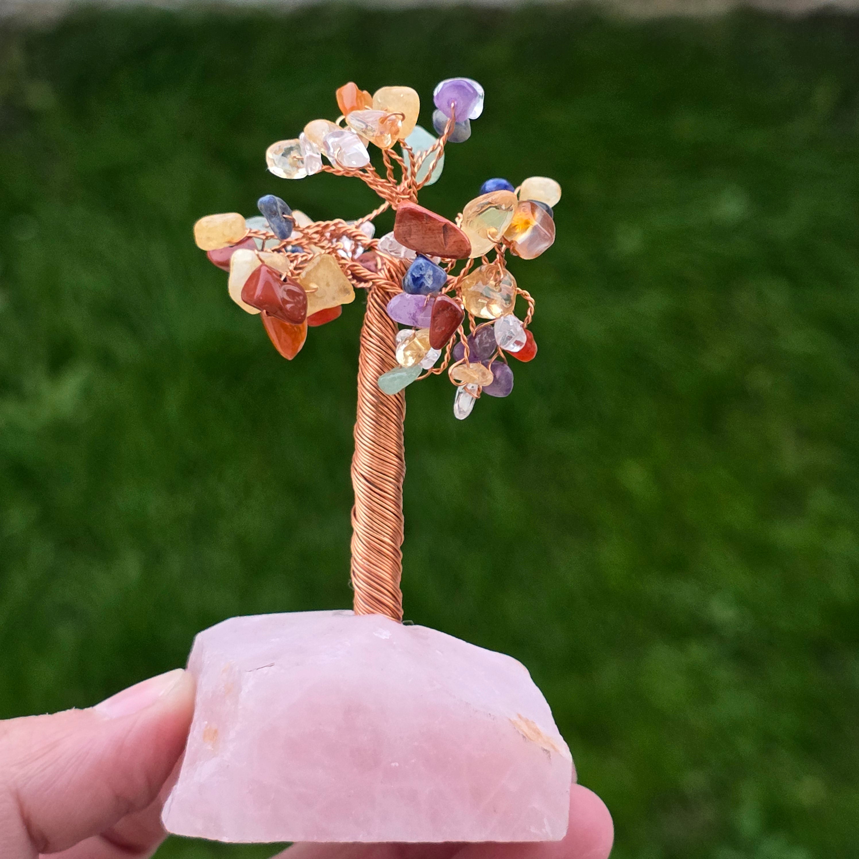 Фън шуй дърво 7 чакри на основата на розов кварц – размер S