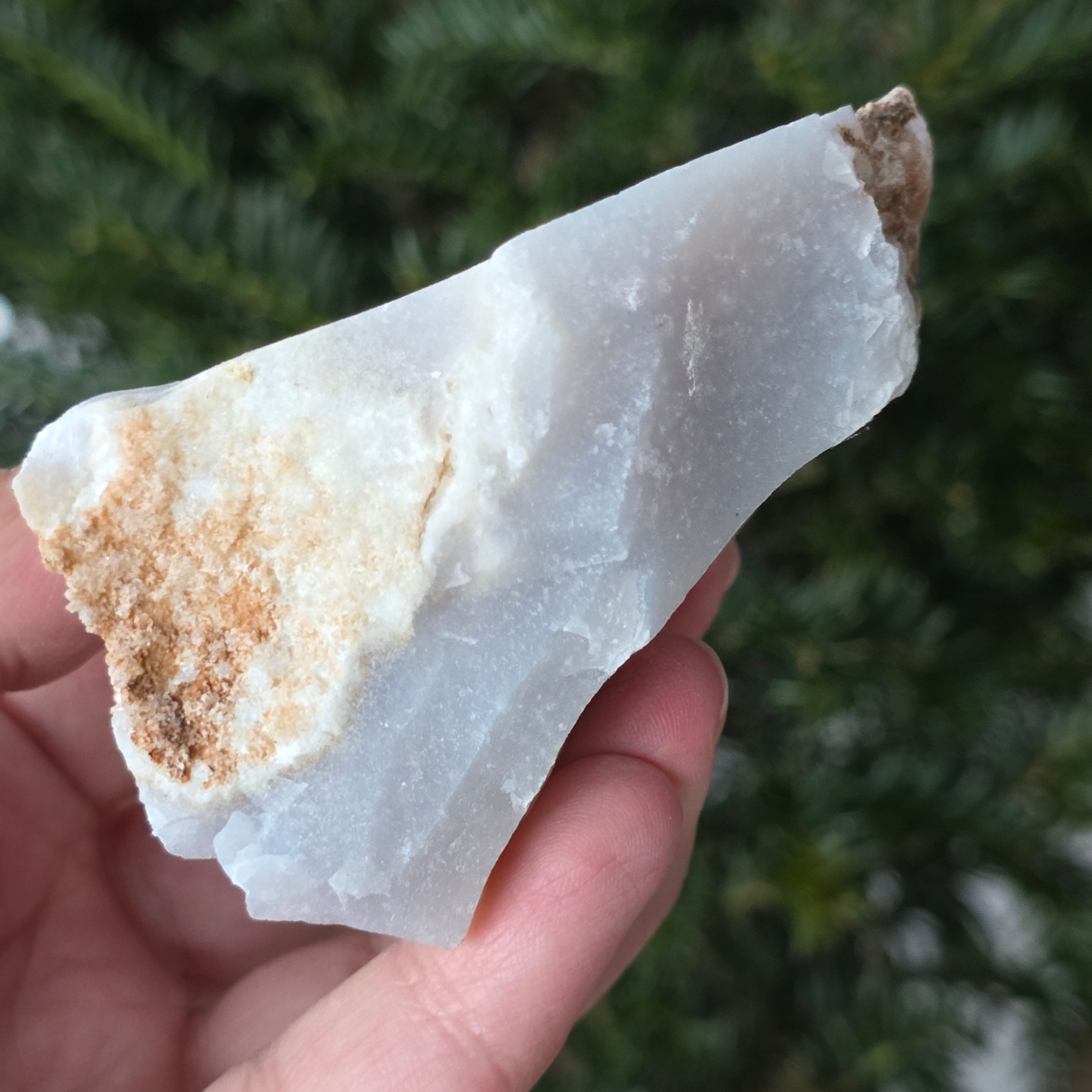 Синият халцедон, известен също като син ахат или небесен халцедон, е разновидност на микрокристален кварц, която проявява син оттенък.