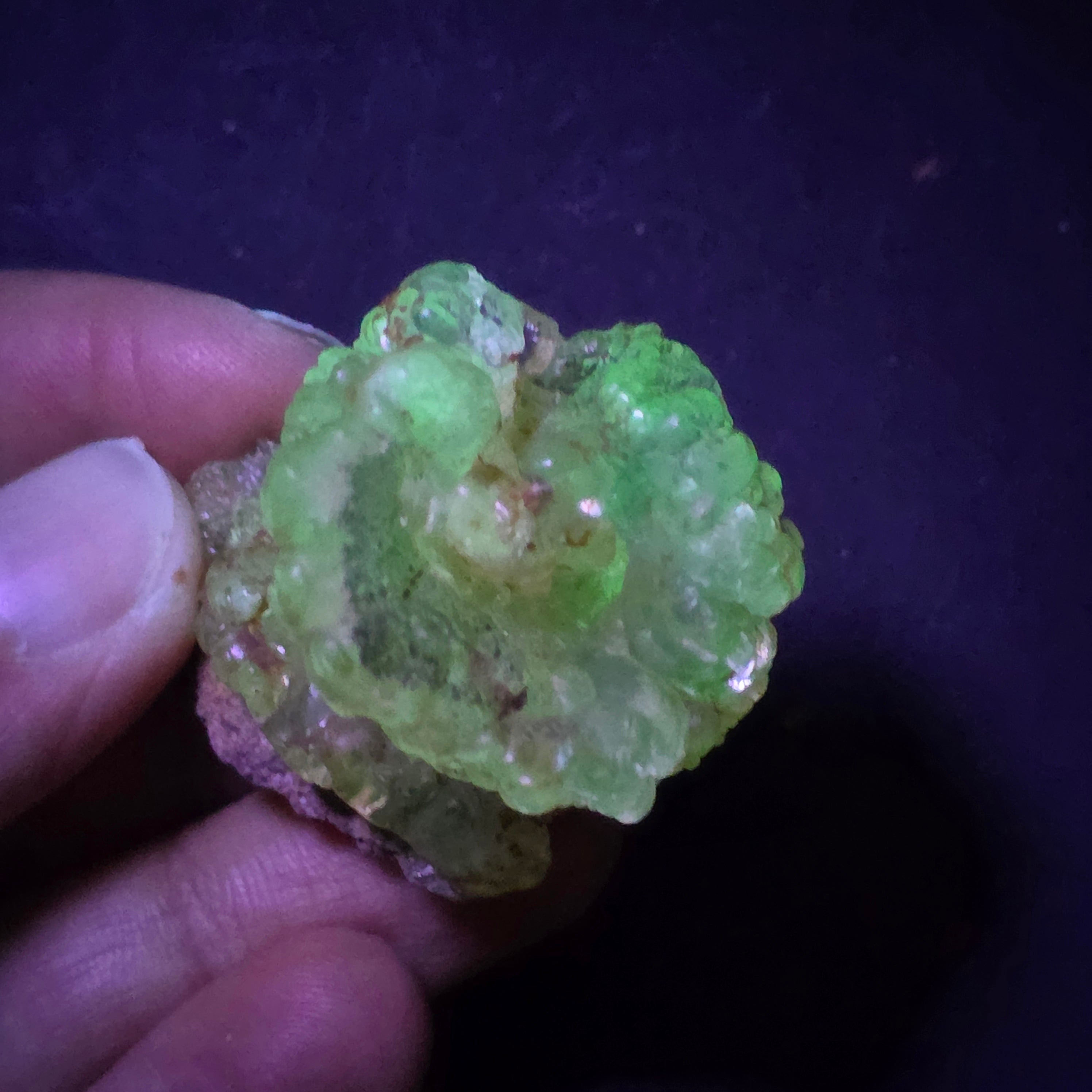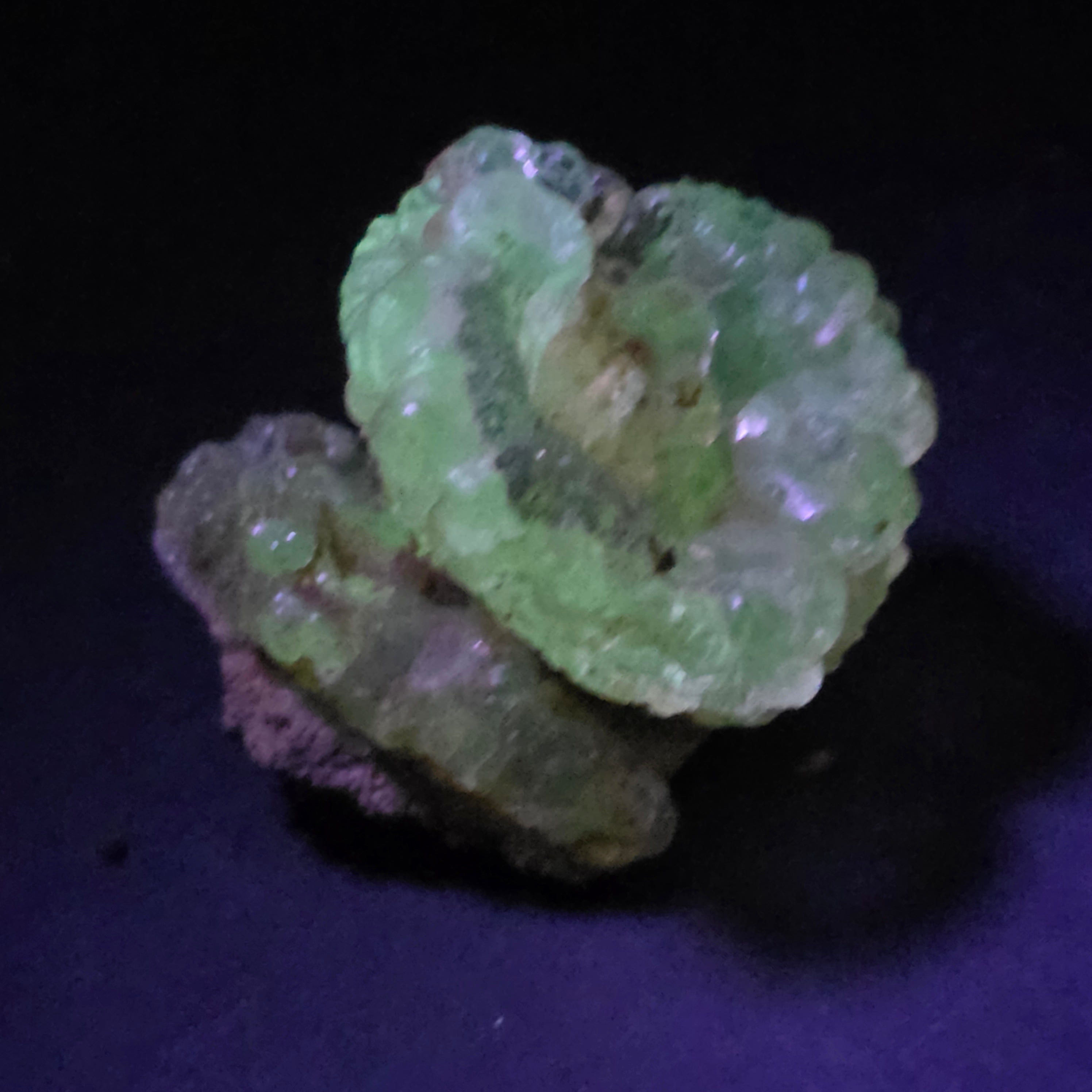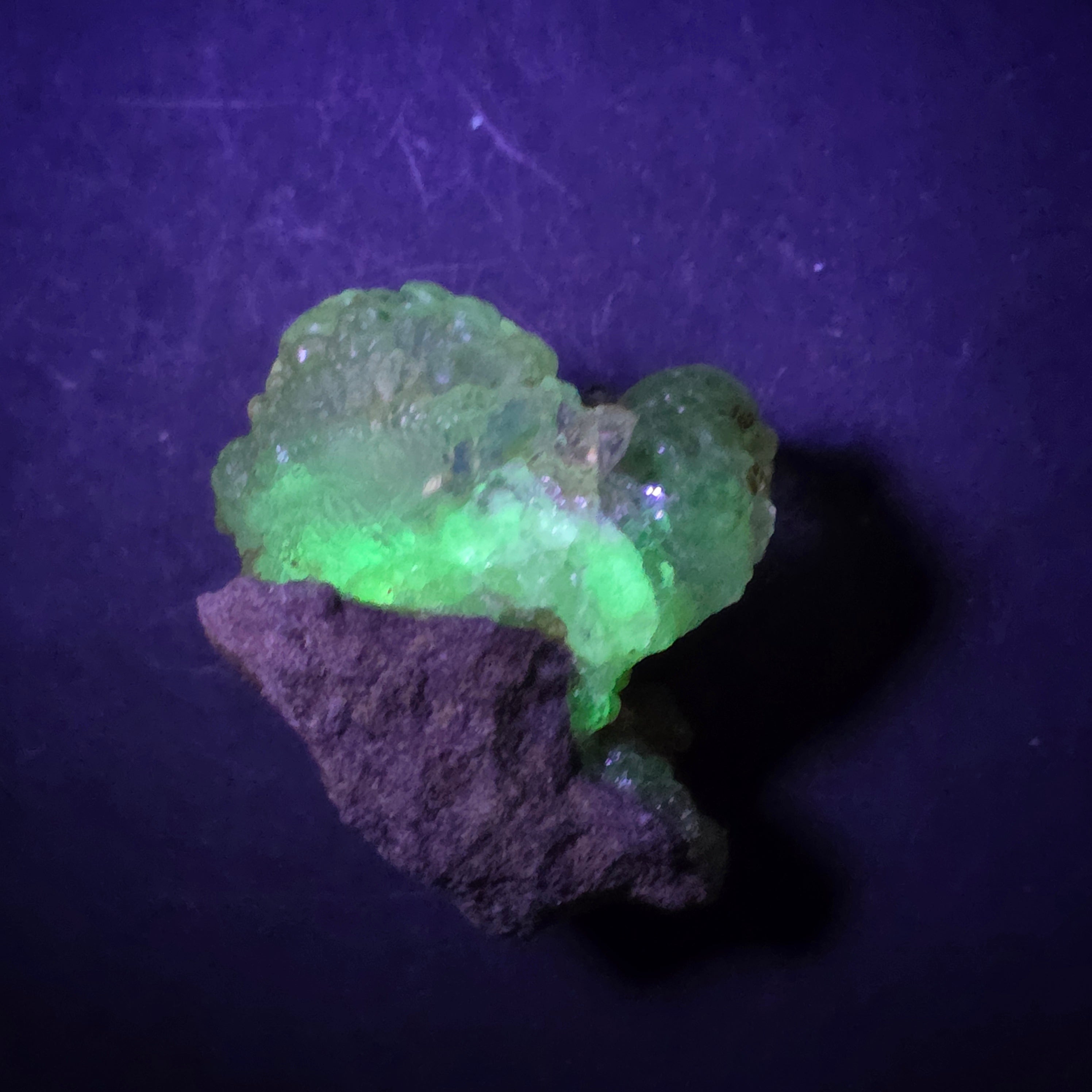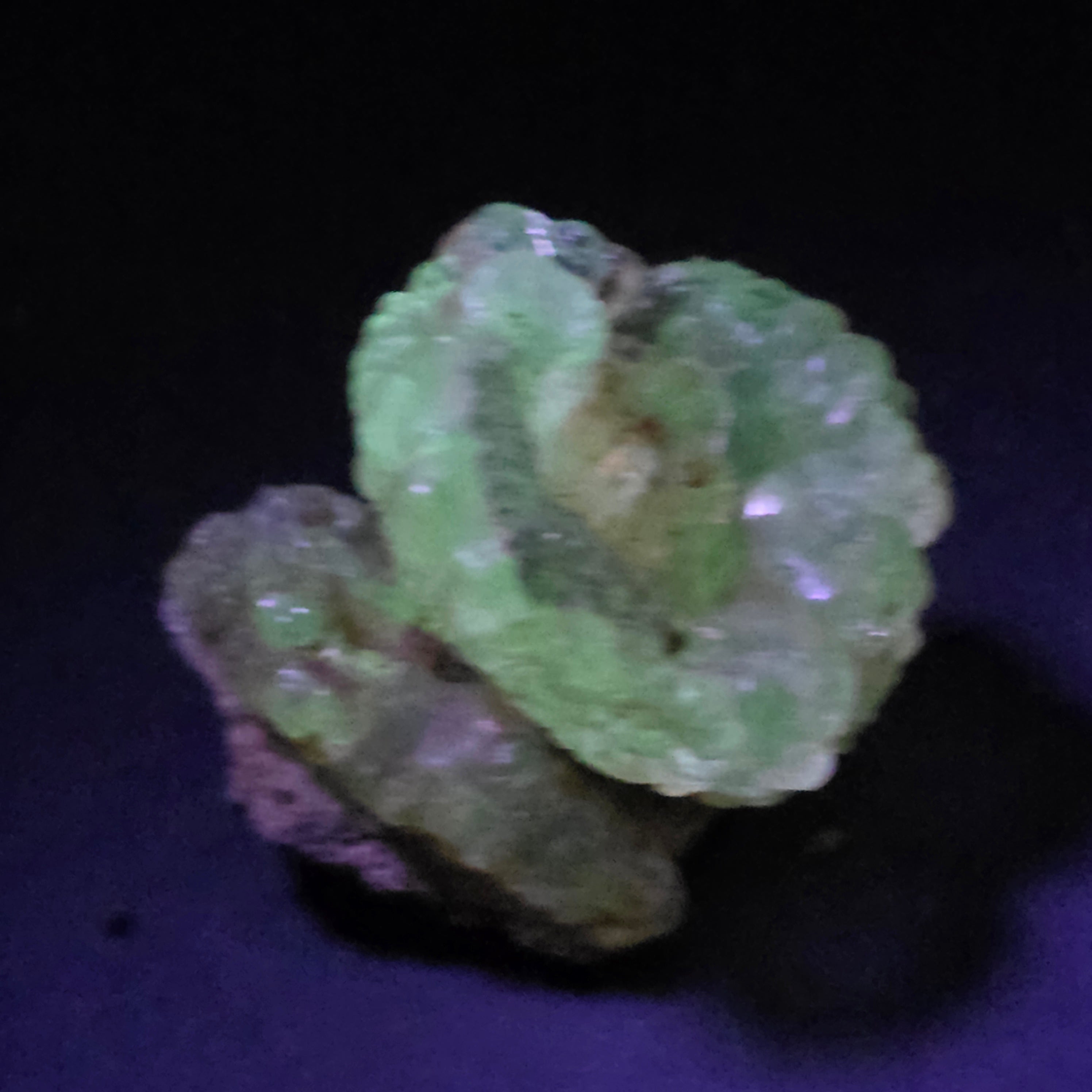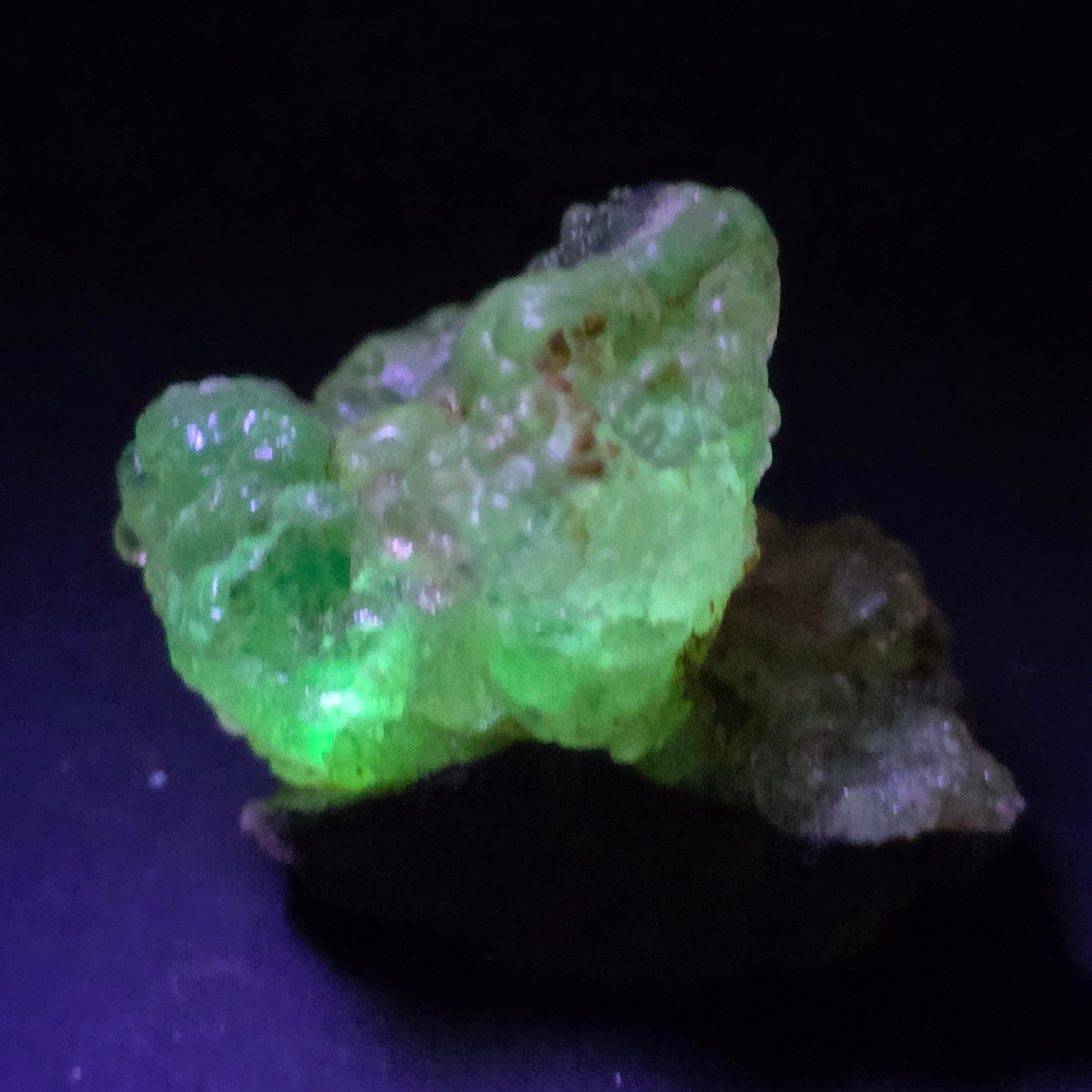 Този хиалит опал от Мексико е рядък и впечатляващ минерален образец, известен със своят стъкловиден прозрачен вид и с интензивното зелено флуоресциране под UV светлина, една от най-ценените характеристики на този тип опал. Екземплярите хиалит от Мексико се считат за референтни на международно ниво.