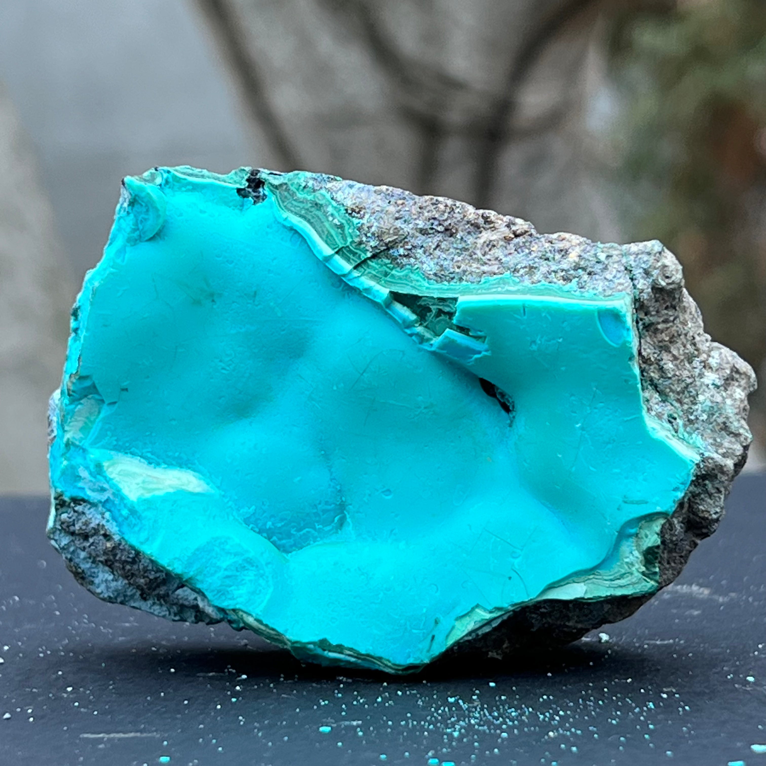 Хлороколът е полускъпоценен камък със зелено-син цвят, който съдържа мед.