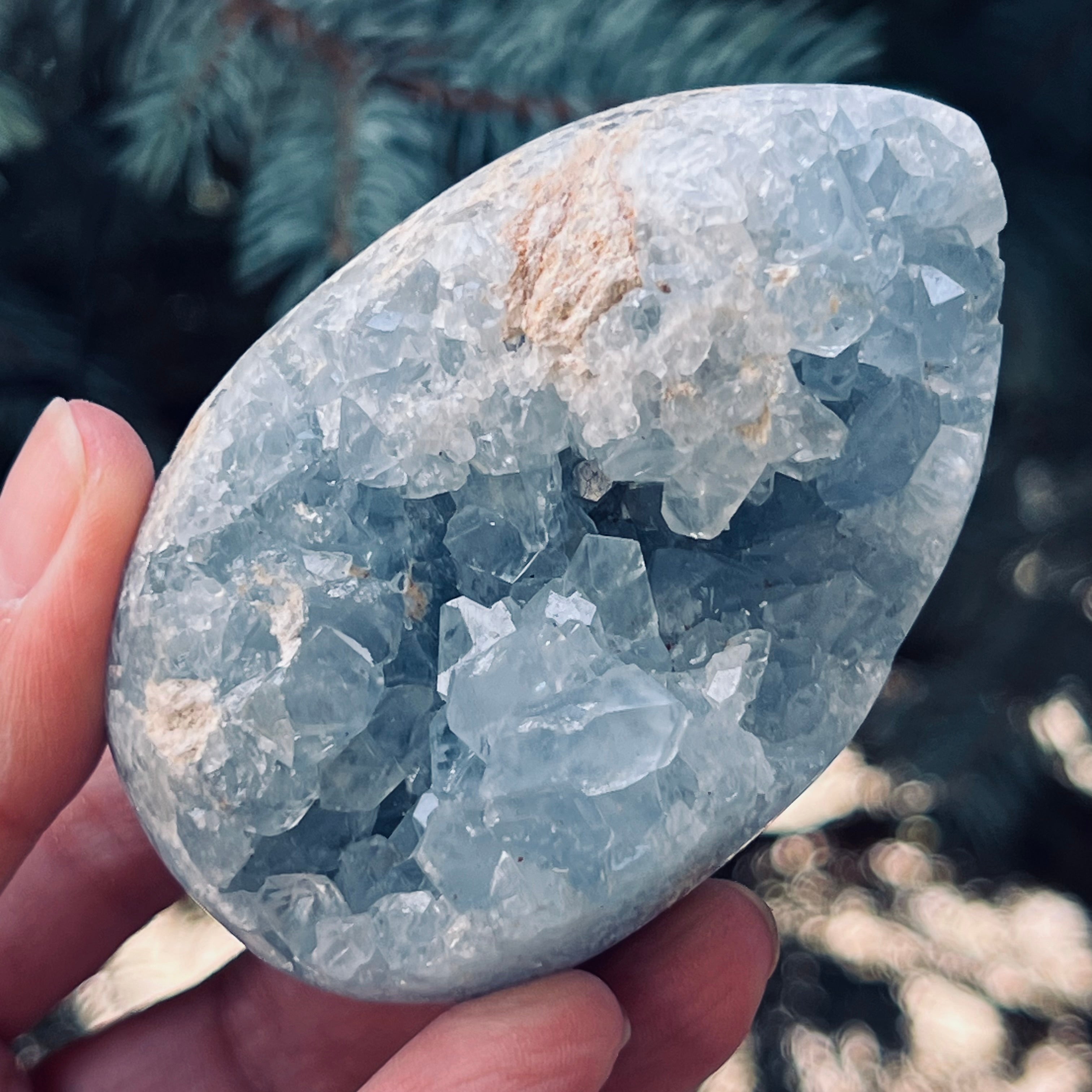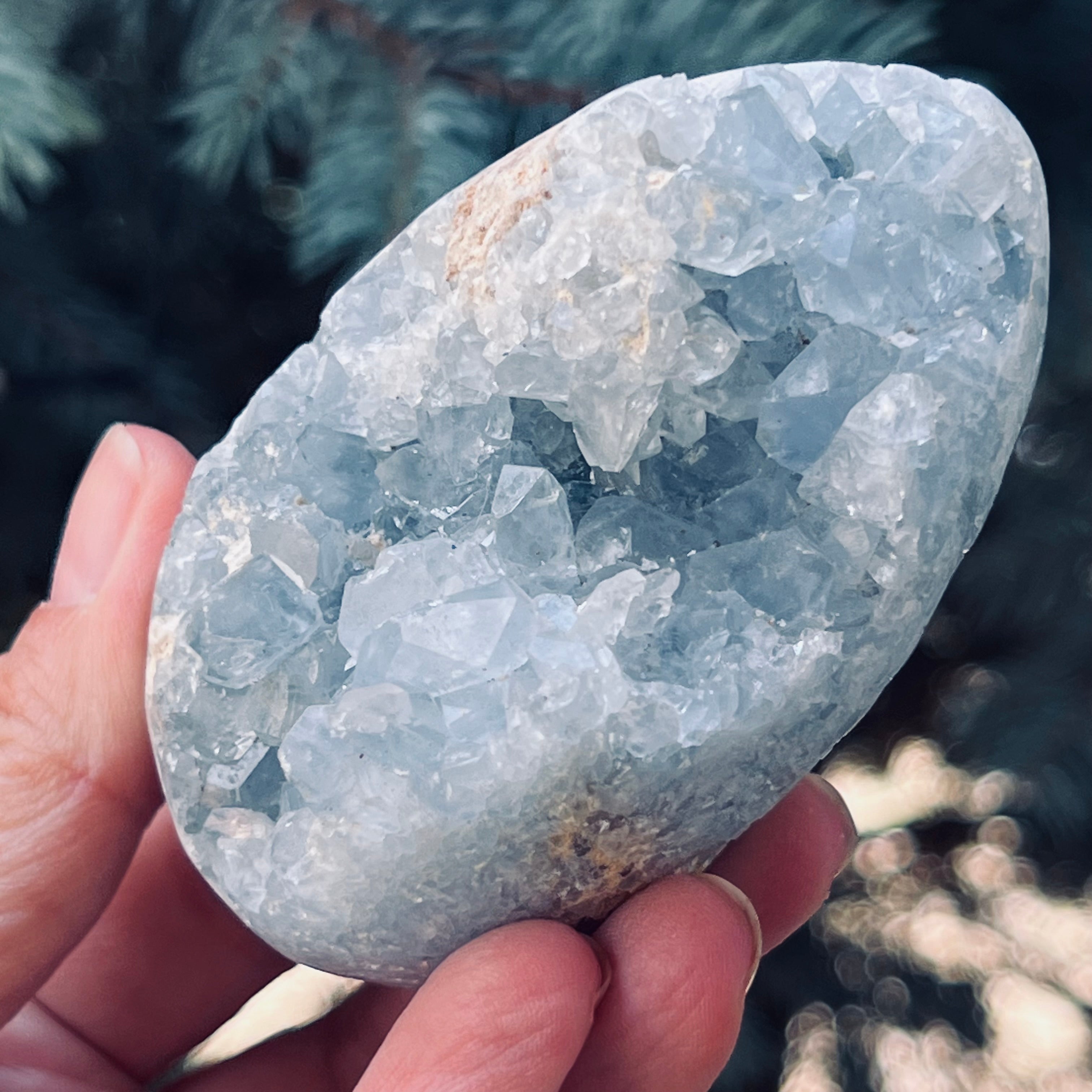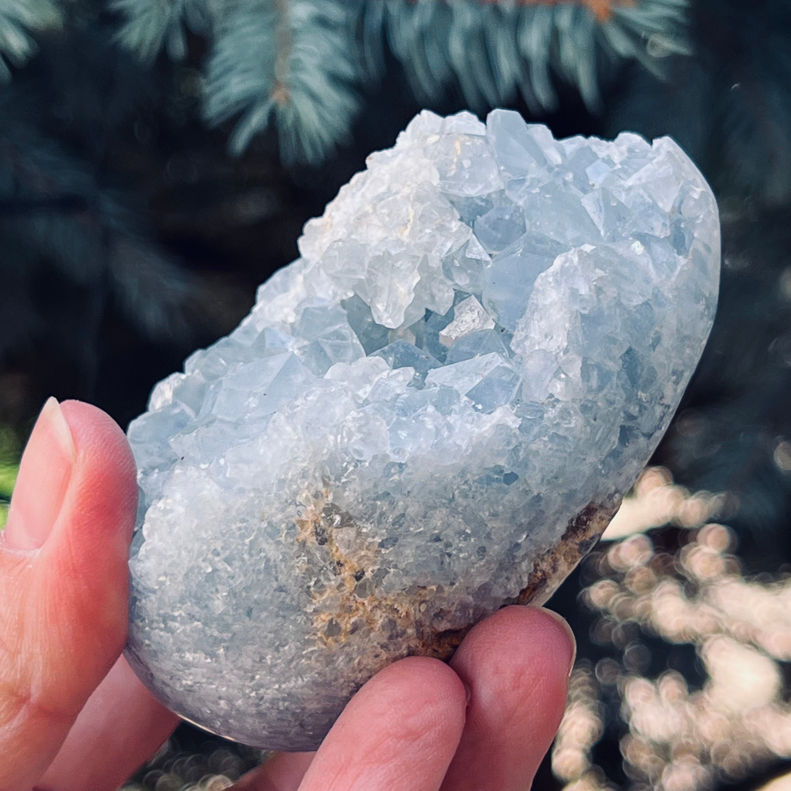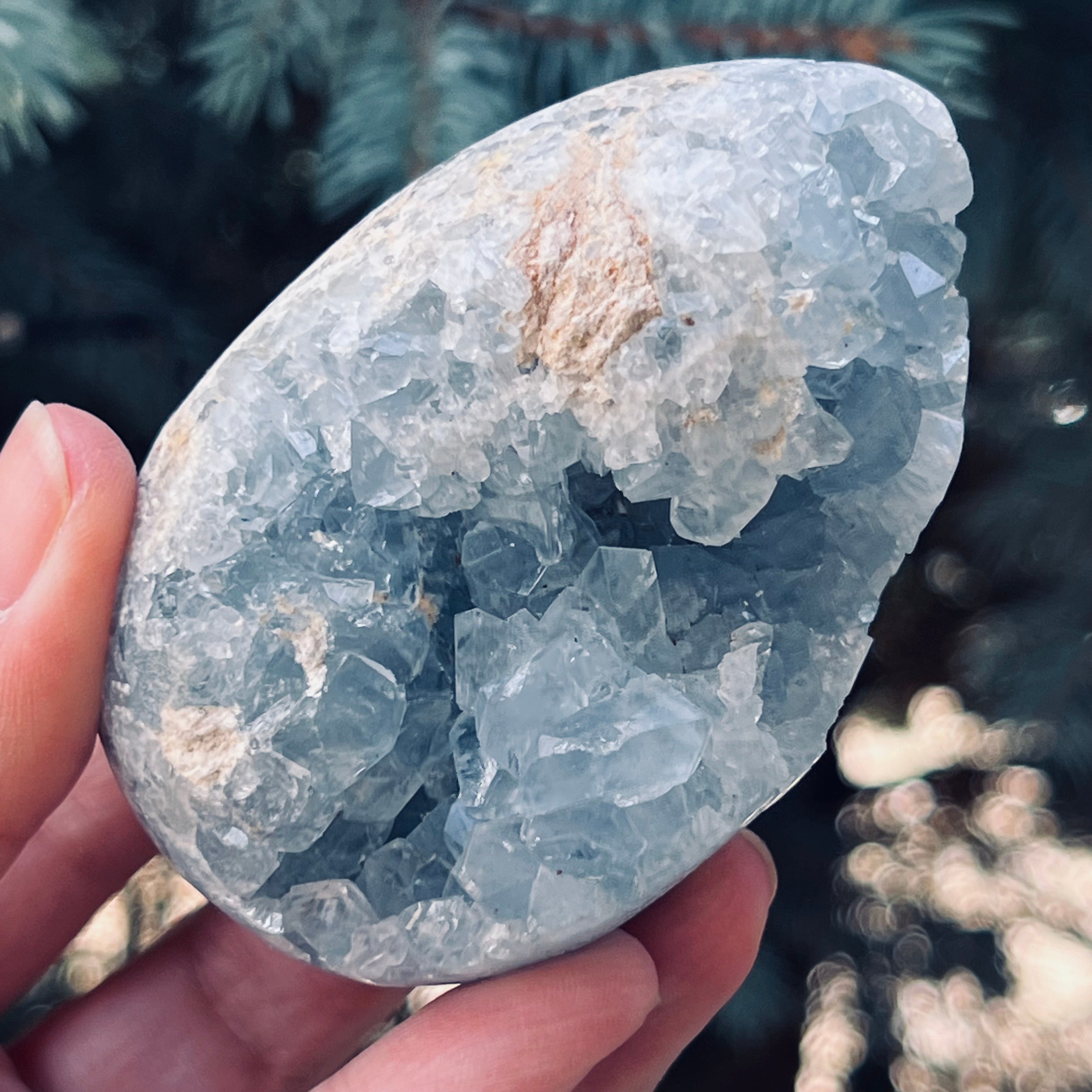 Целестинът е полускъпоценен камък със син или безцветен оттенък, съставен от стронциев сулфат. Той притежава успокояващи и релаксиращи свойства и често се използва в медитация и духовни практики за насърчаване на вътрешния мир и умствената яснота. Целестинът се свързва с гърлената чакра и може да помогне за ясна комуникация и изразяване на емоциите. Също така се вярва, че подобрява креативността, интуицията и психическите способности.