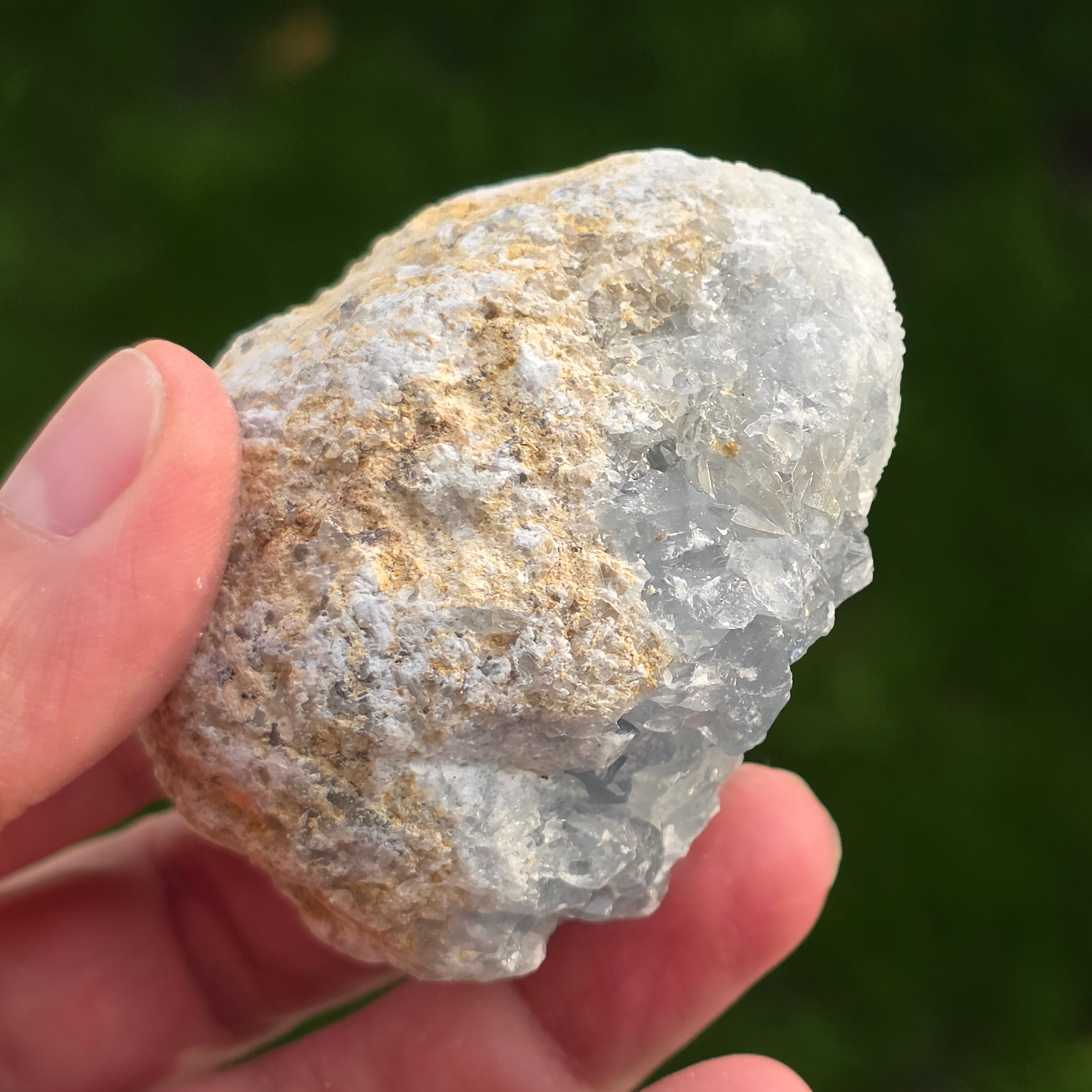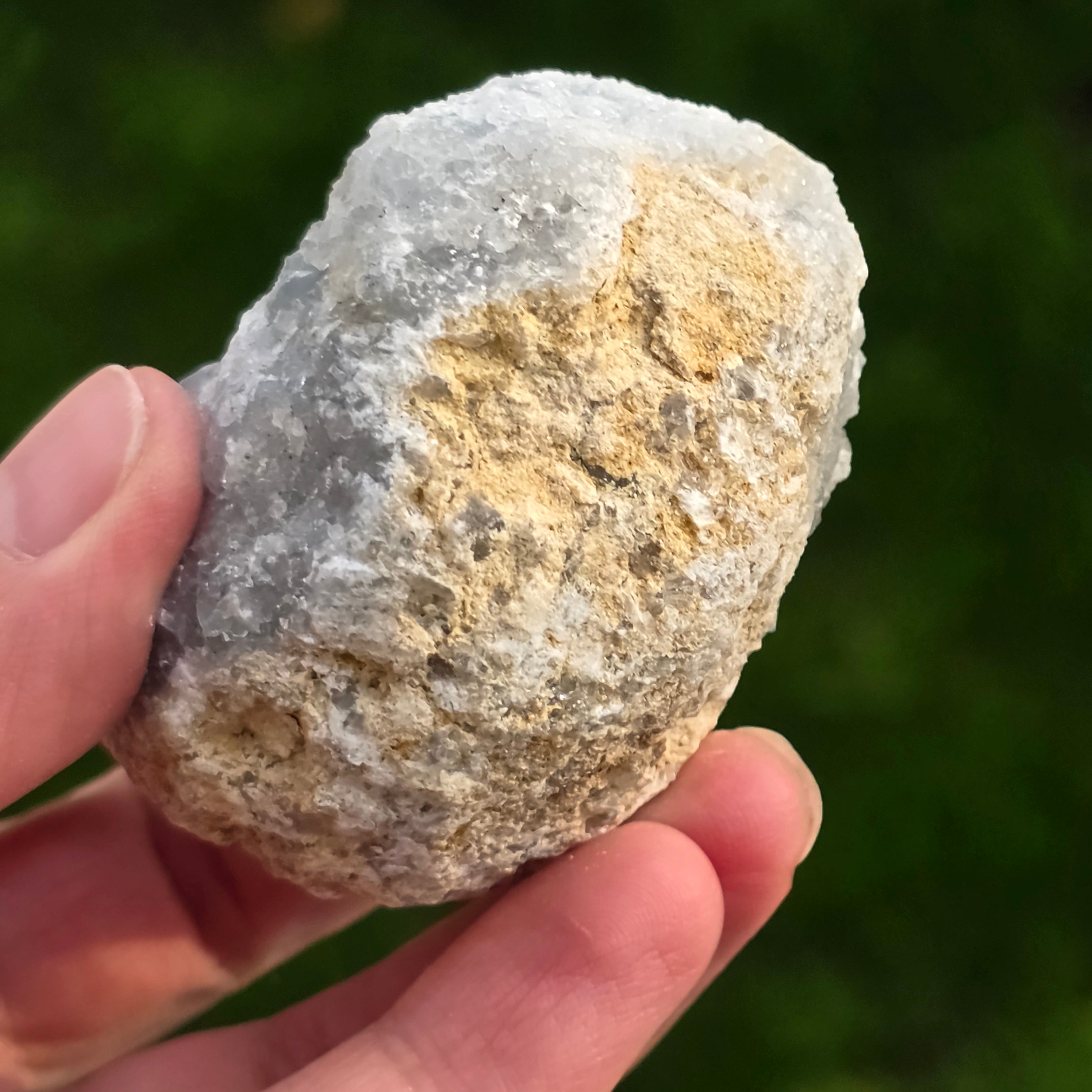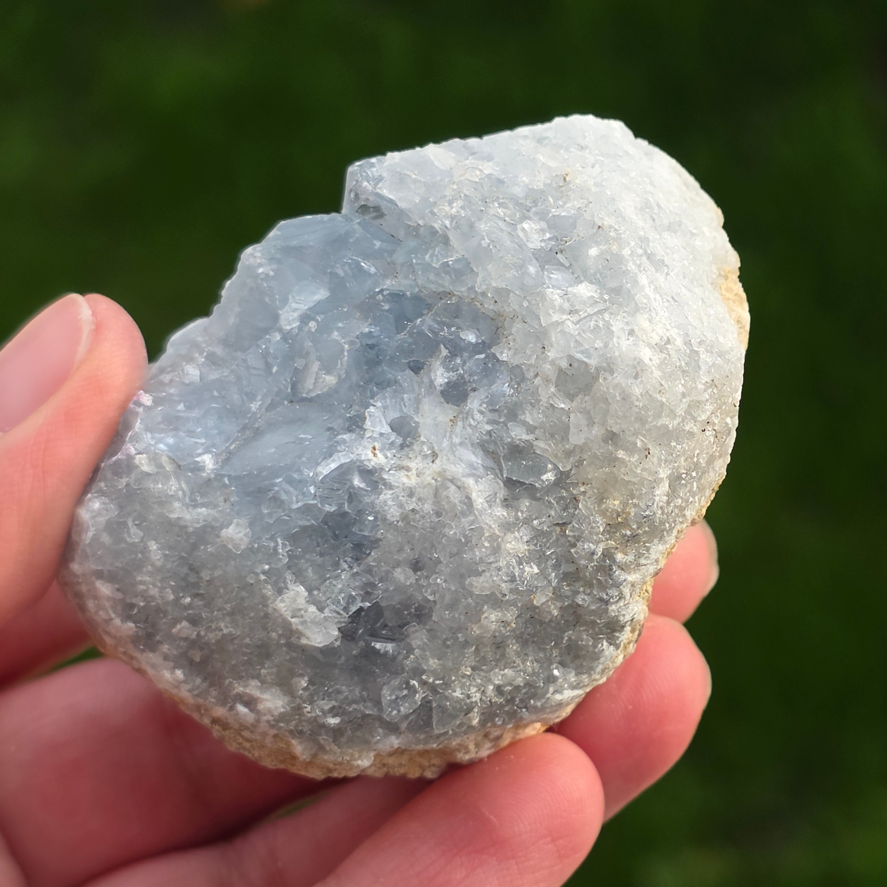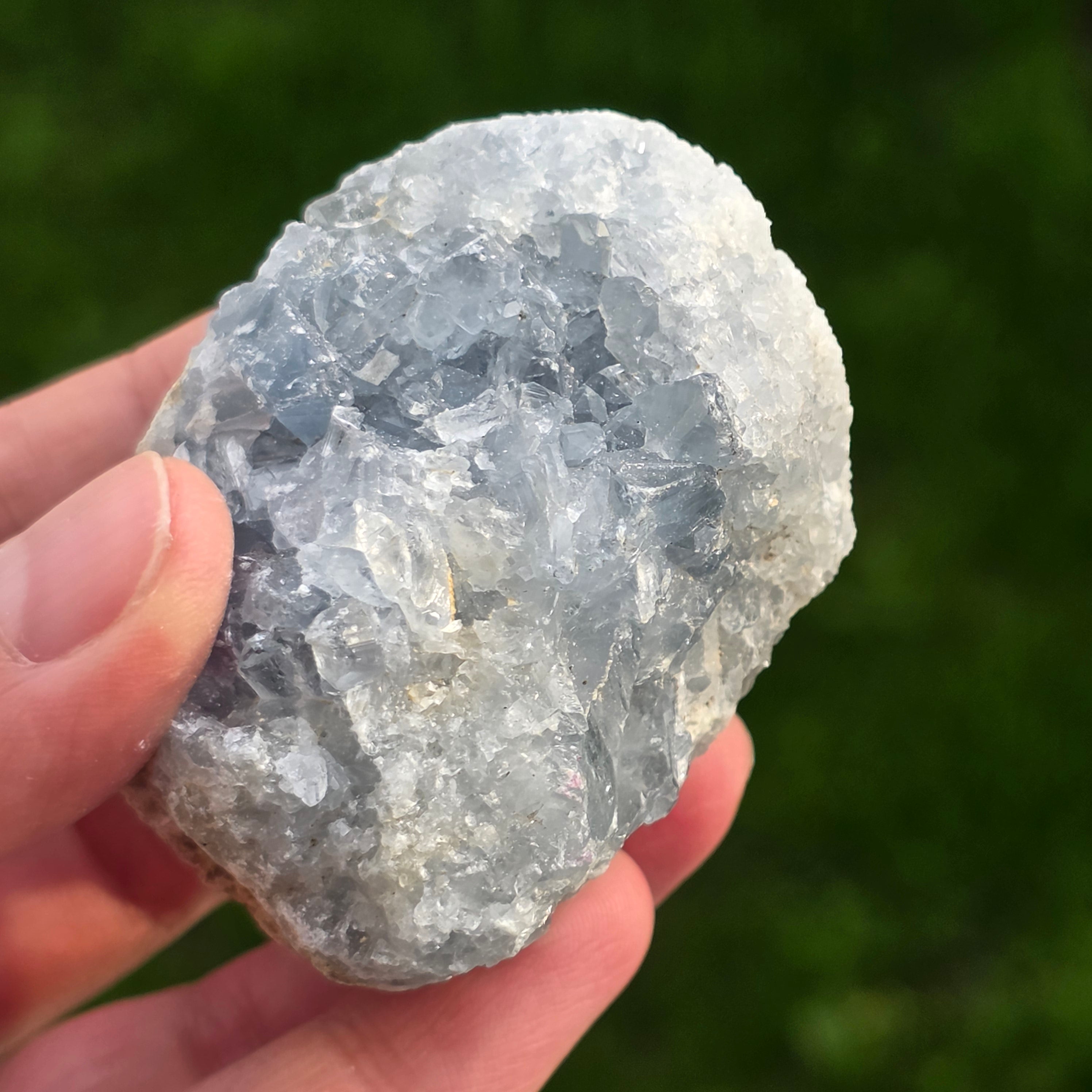 Целестинът е полускъпоценен камък със синьо или безцветно оцветяване, съставен от стронциев сулфат. Той има успокояващи и релаксиращи свойства и често се използва в медитация и духовни практики за насърчаване на вътрешния мир и менталната яснота. Целестинът е свързан с гърлената чакра и може да помогне за ясна комуникация и изразяване на емоциите. Също така се смята, че подобрява креативността, интуицията и психическите способности.
