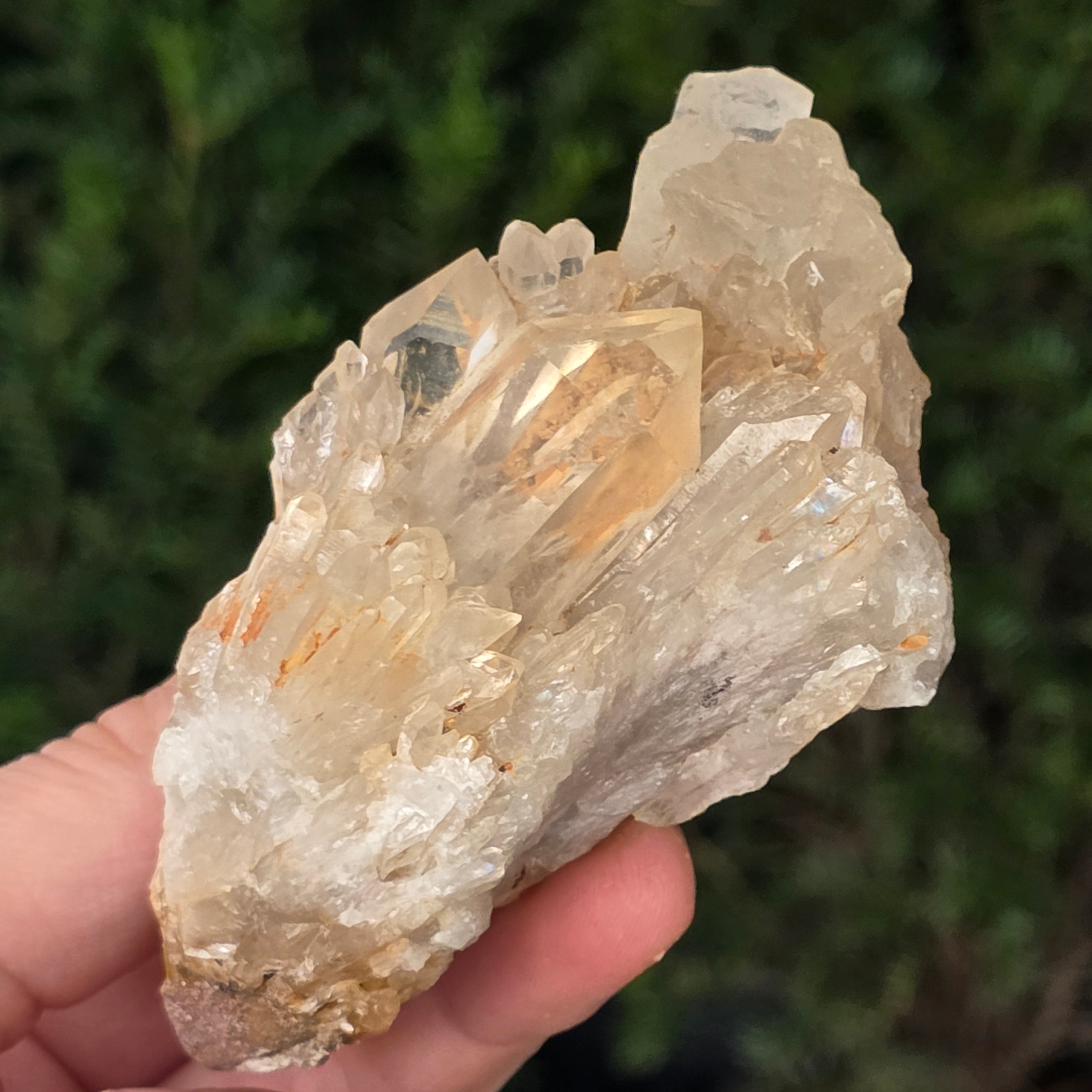 В дълбините на африканския континент, там където земята вибрира от първичен живот, се е родил този цитрин – рядък и мистериозен камък, извлечен от богатите почви на Конго. С топли нюанси, които варират между жълто-златно и дискретни димни оттенъци, този естествен образец носи отпечатъка на времето и на бавните трансформации на Земята.