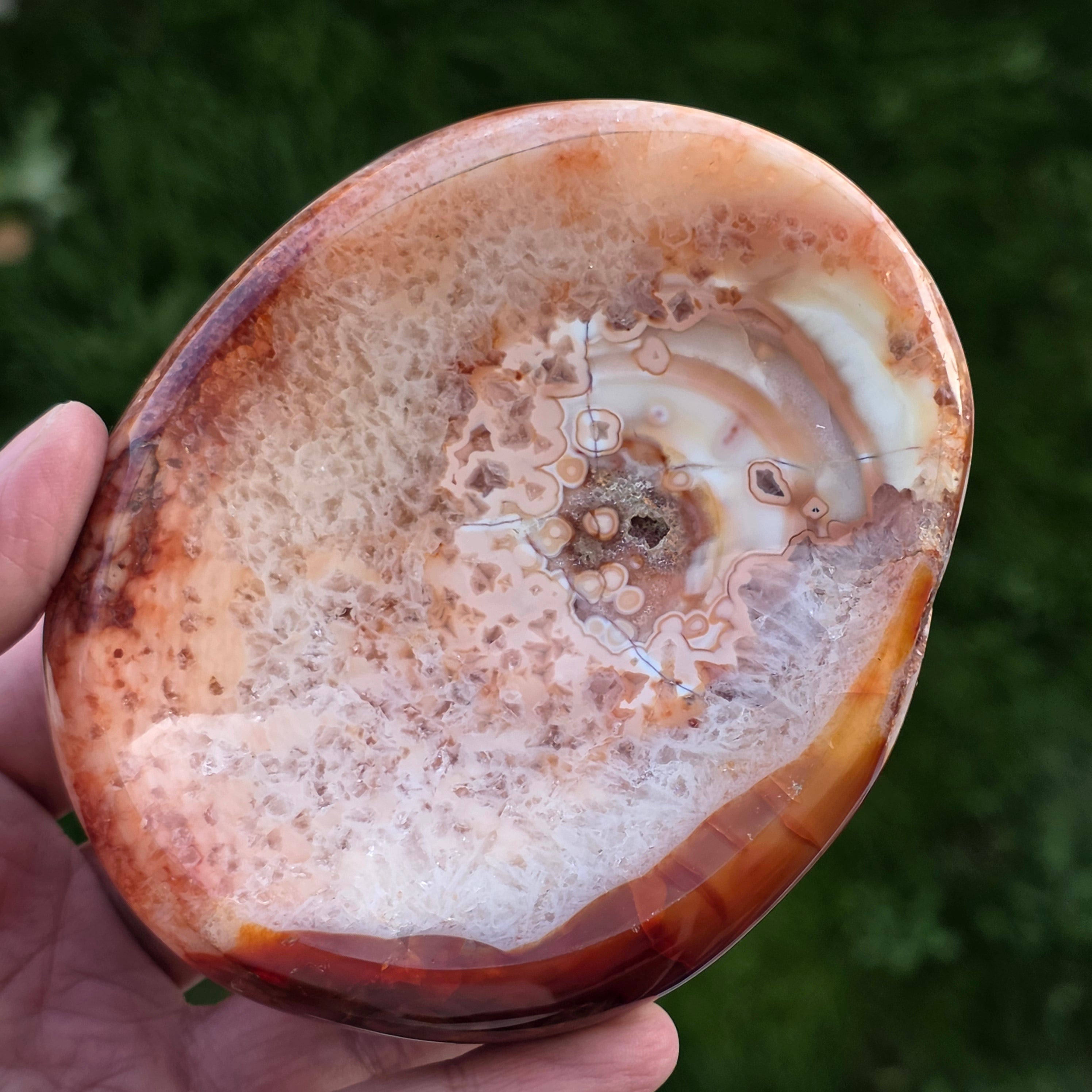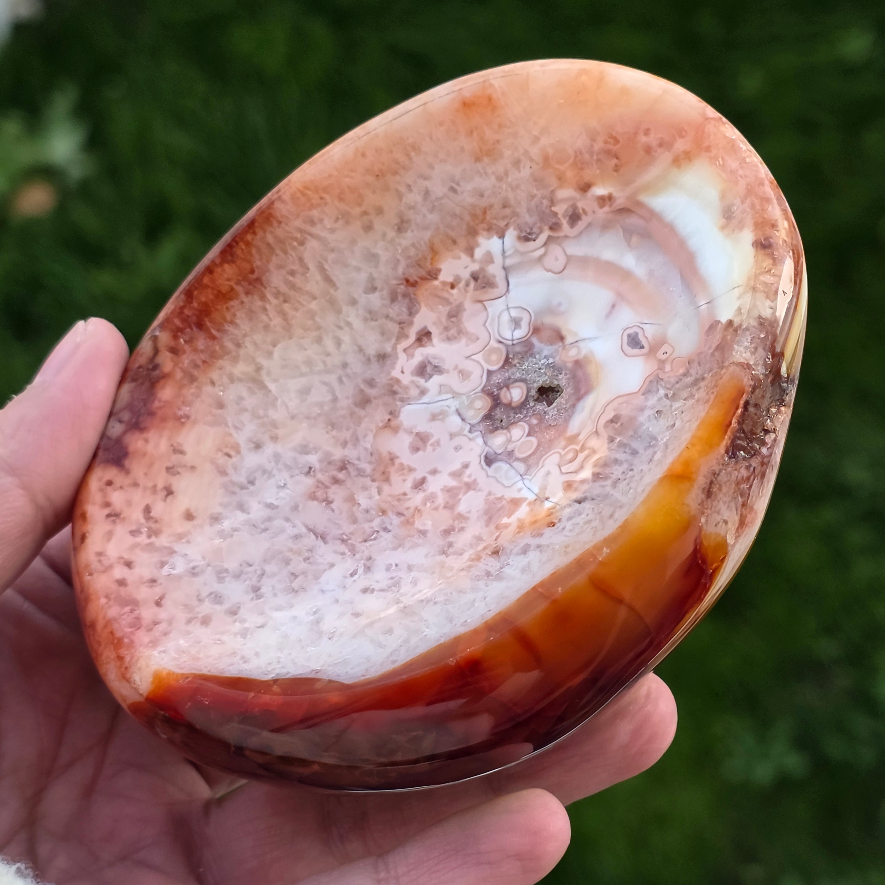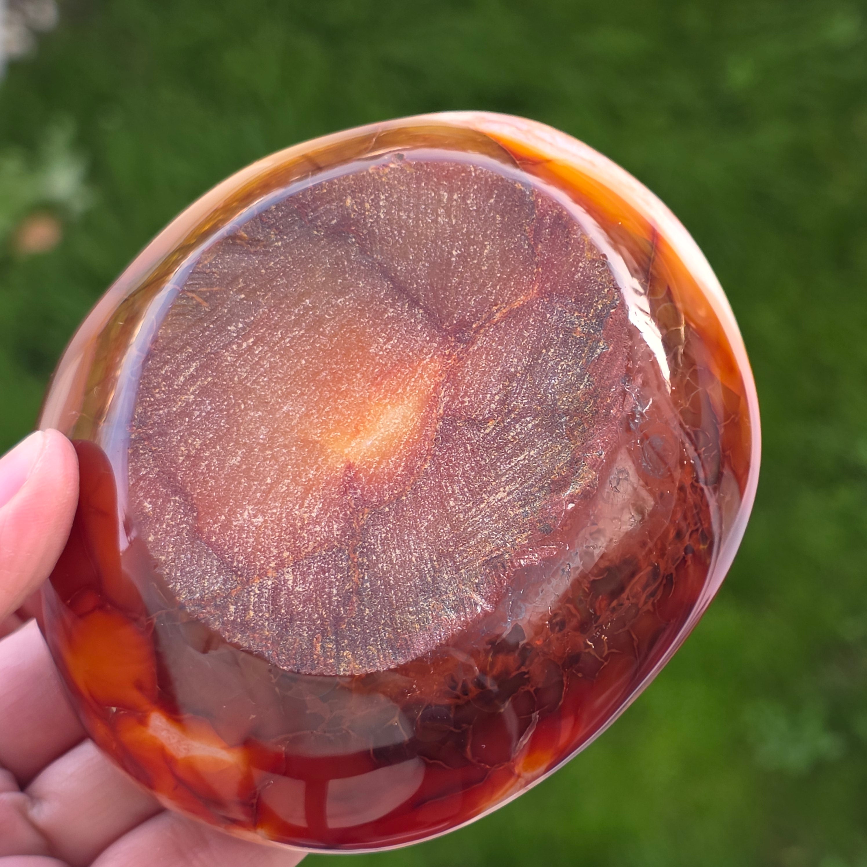 Чаша от естествен уникален карнеол, произхождащ от Мадагаскар, внимателно изсечен, за да подчертае естествената красота на камъка.