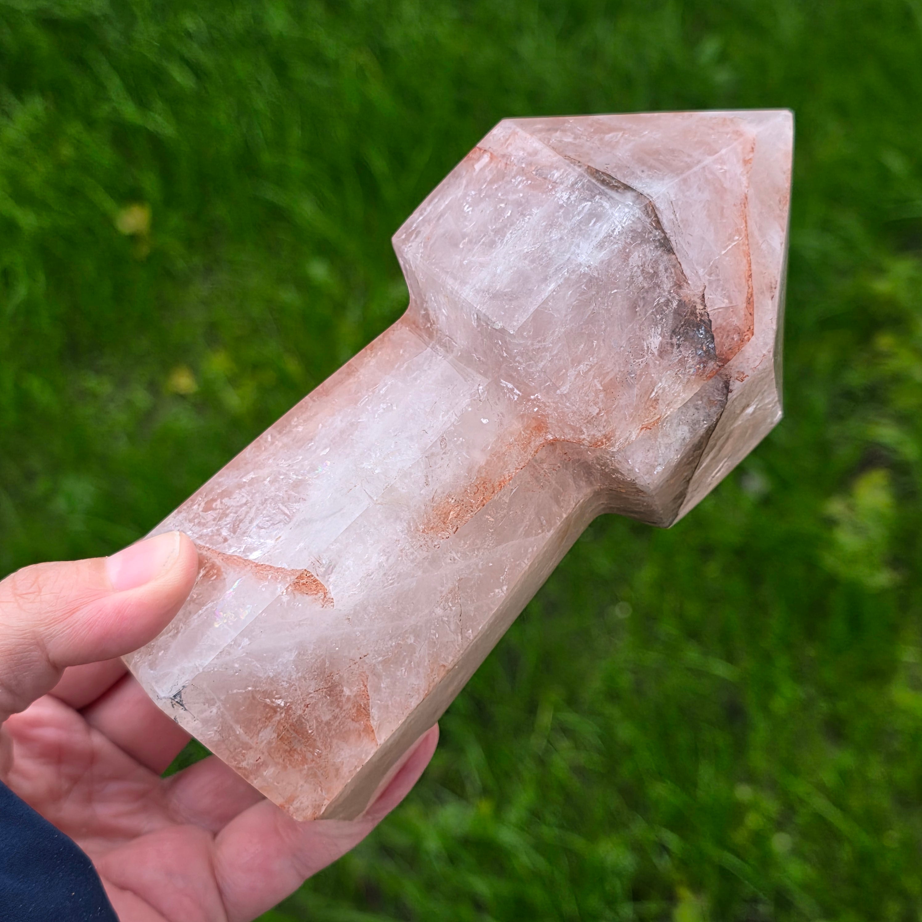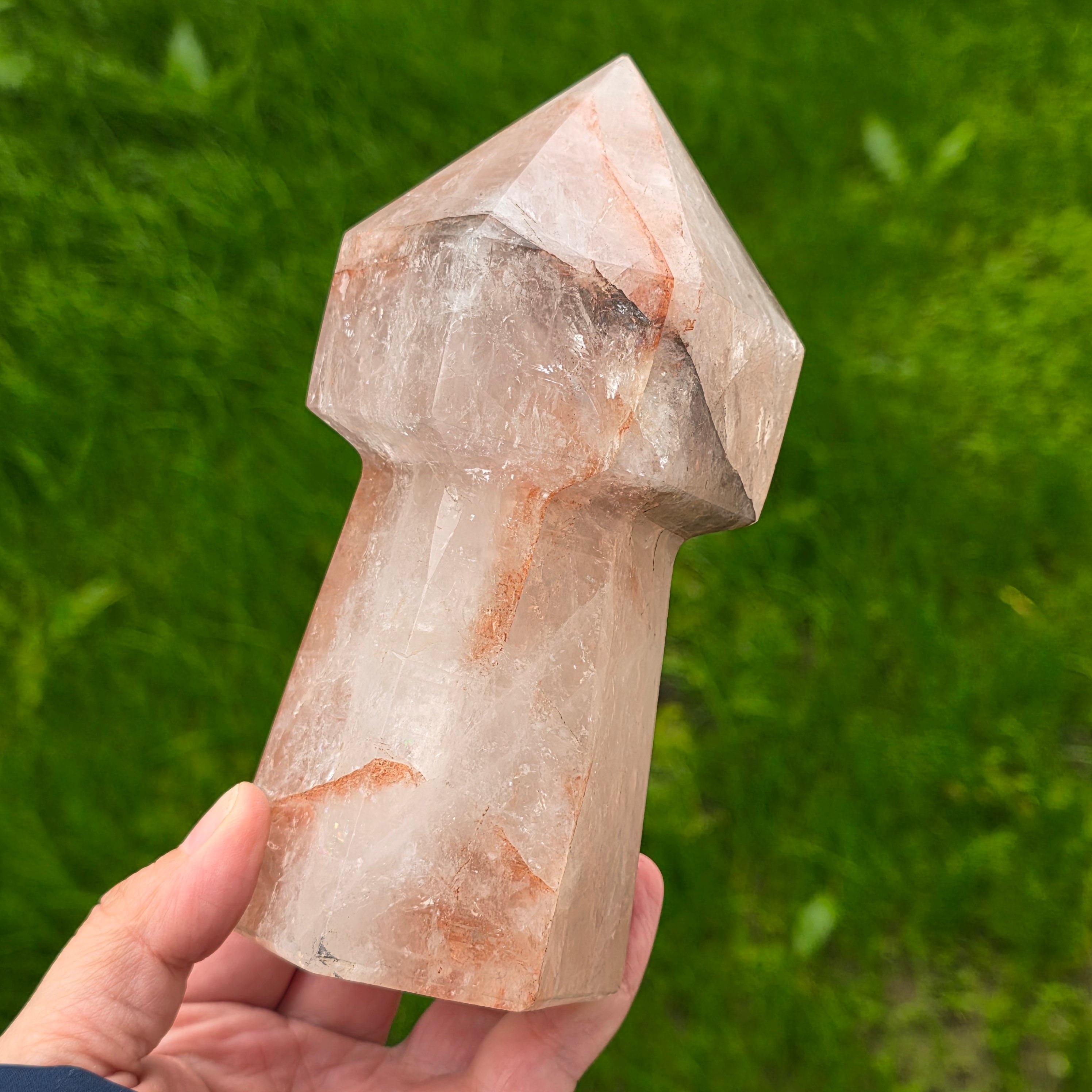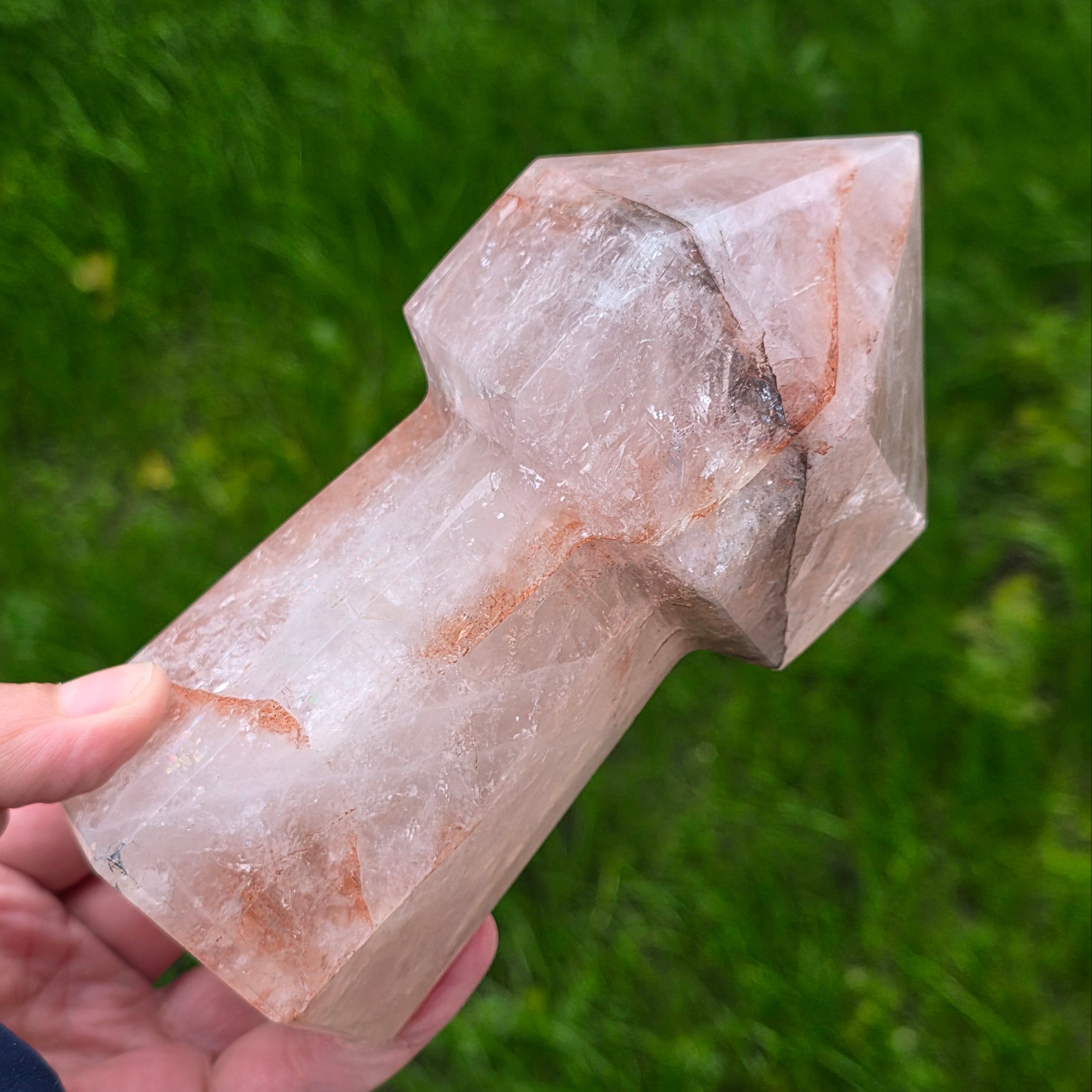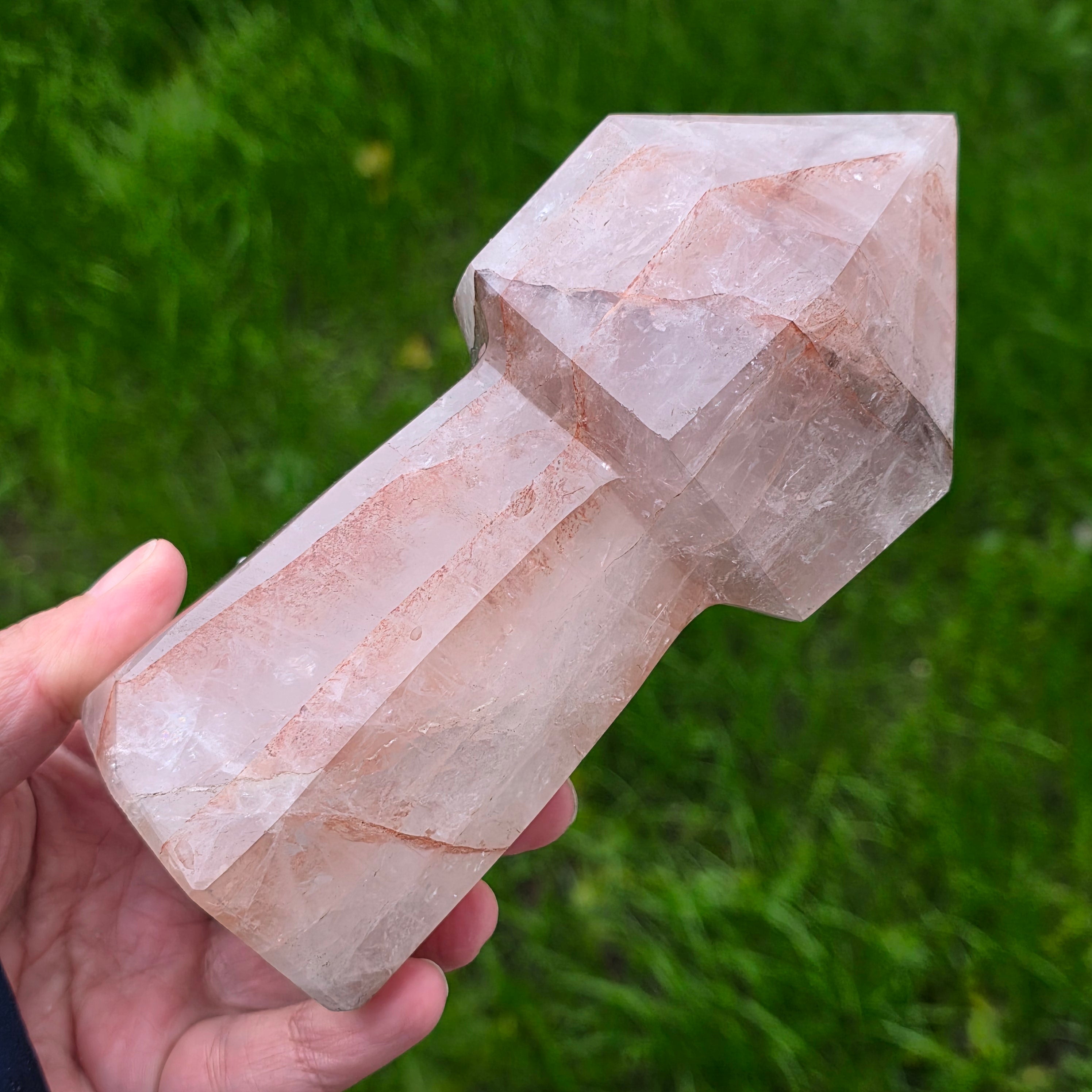 Червеният хематоиден кварц е известен с комбинацията от кварцова яснота и стабилизираща енергия на хематита, използвайки се в практики за фокусиране, витализация и емоционално балансиране. Във формата на скиптър, инструментът става идеален за насочване на енергията, работа върху меридиани, енергиен масаж, активиране на намеренията и освобождаване на напрежение от тялото. Добре оформеният му връх позволява прецизна работа, а долната част стабилизира енергийния поток по време на медитация или терапия.