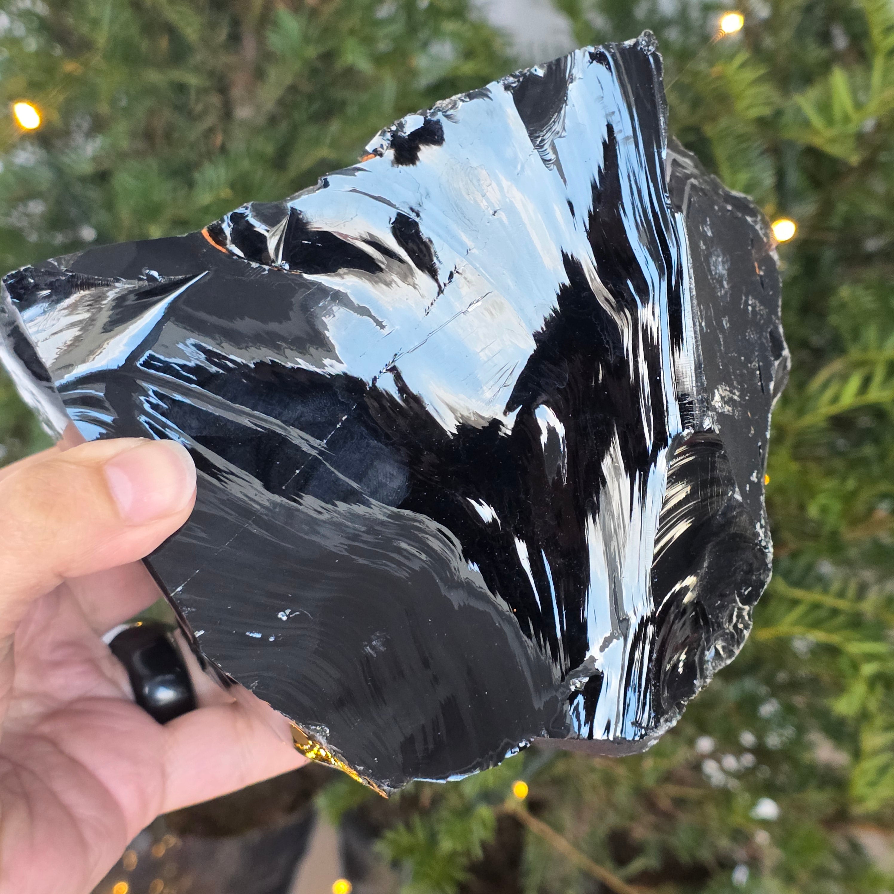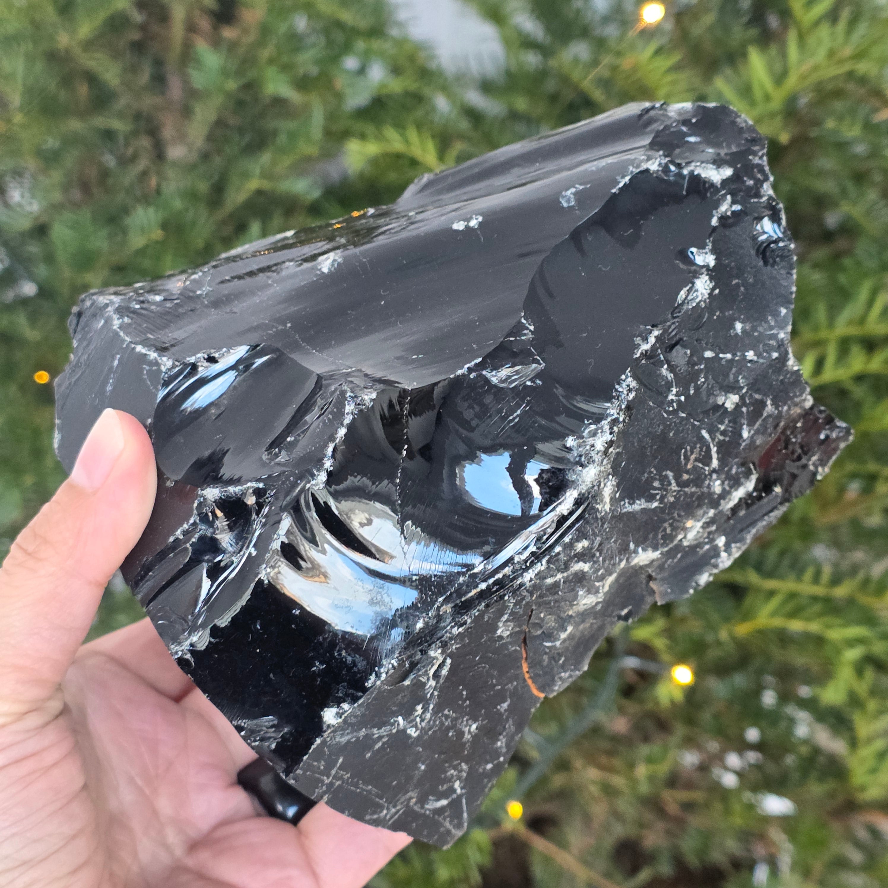 Черен обсидиан от Мексико, суров камък XL модел 1