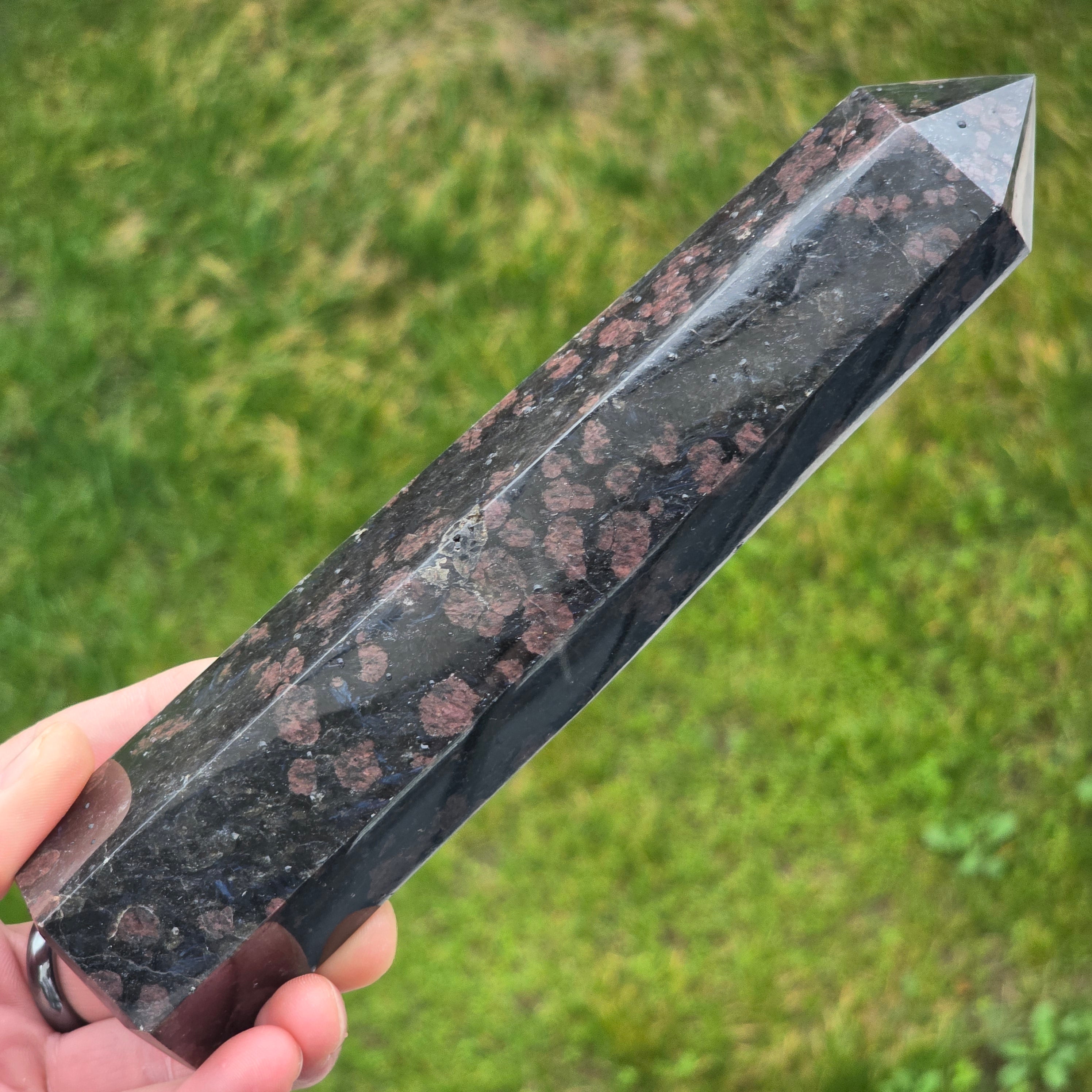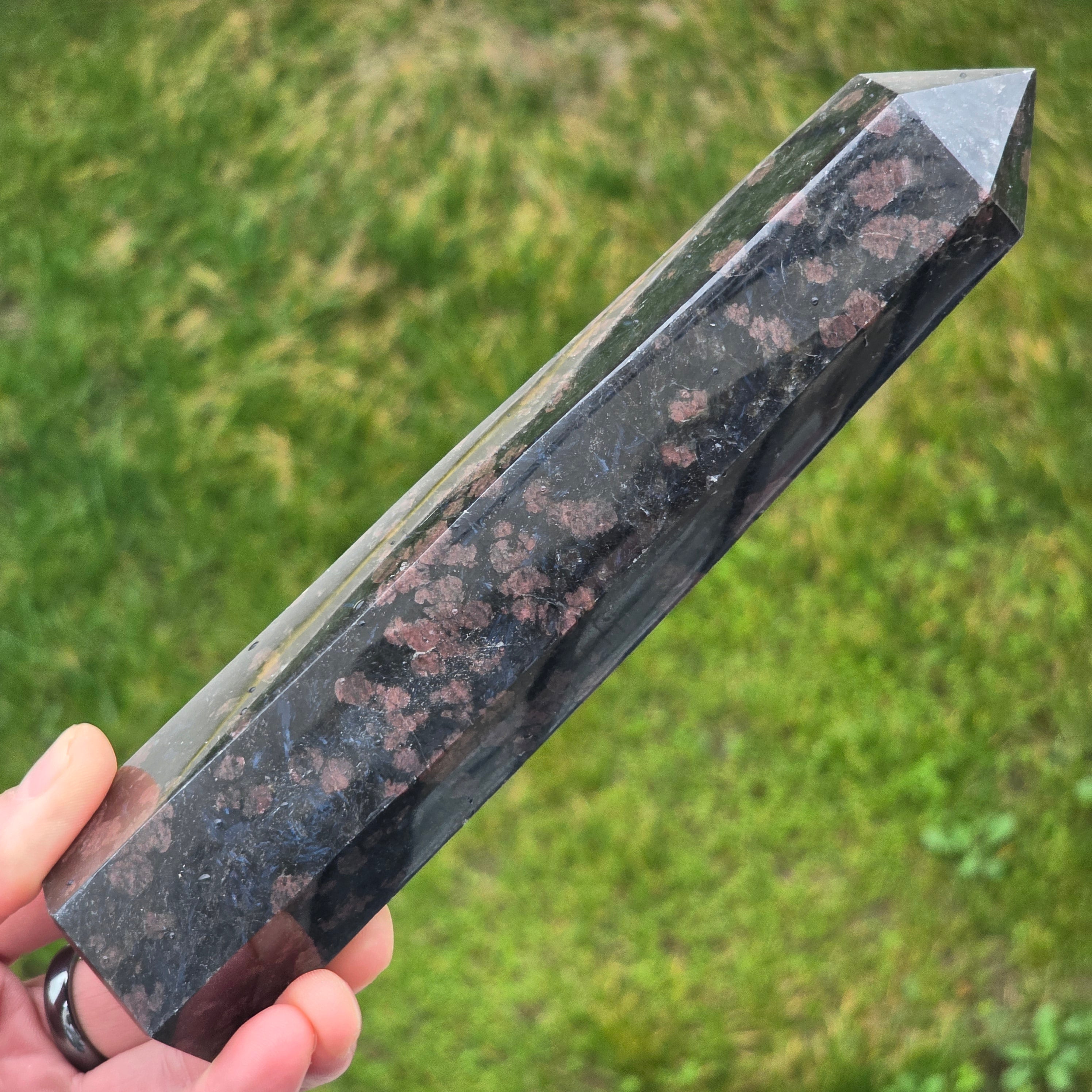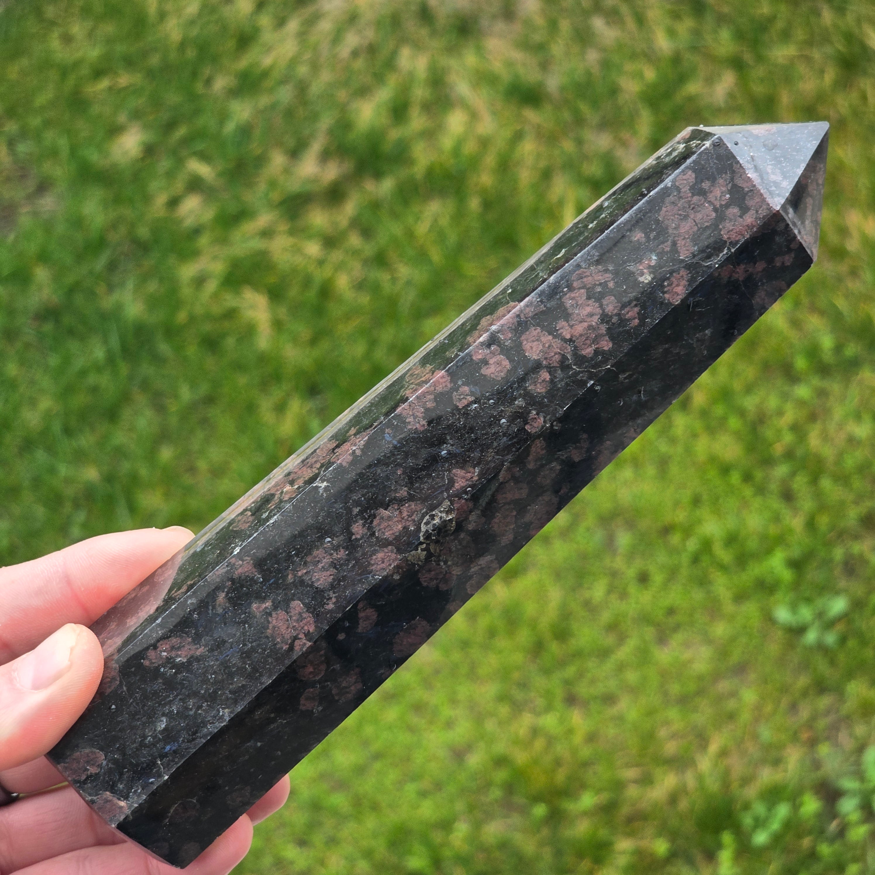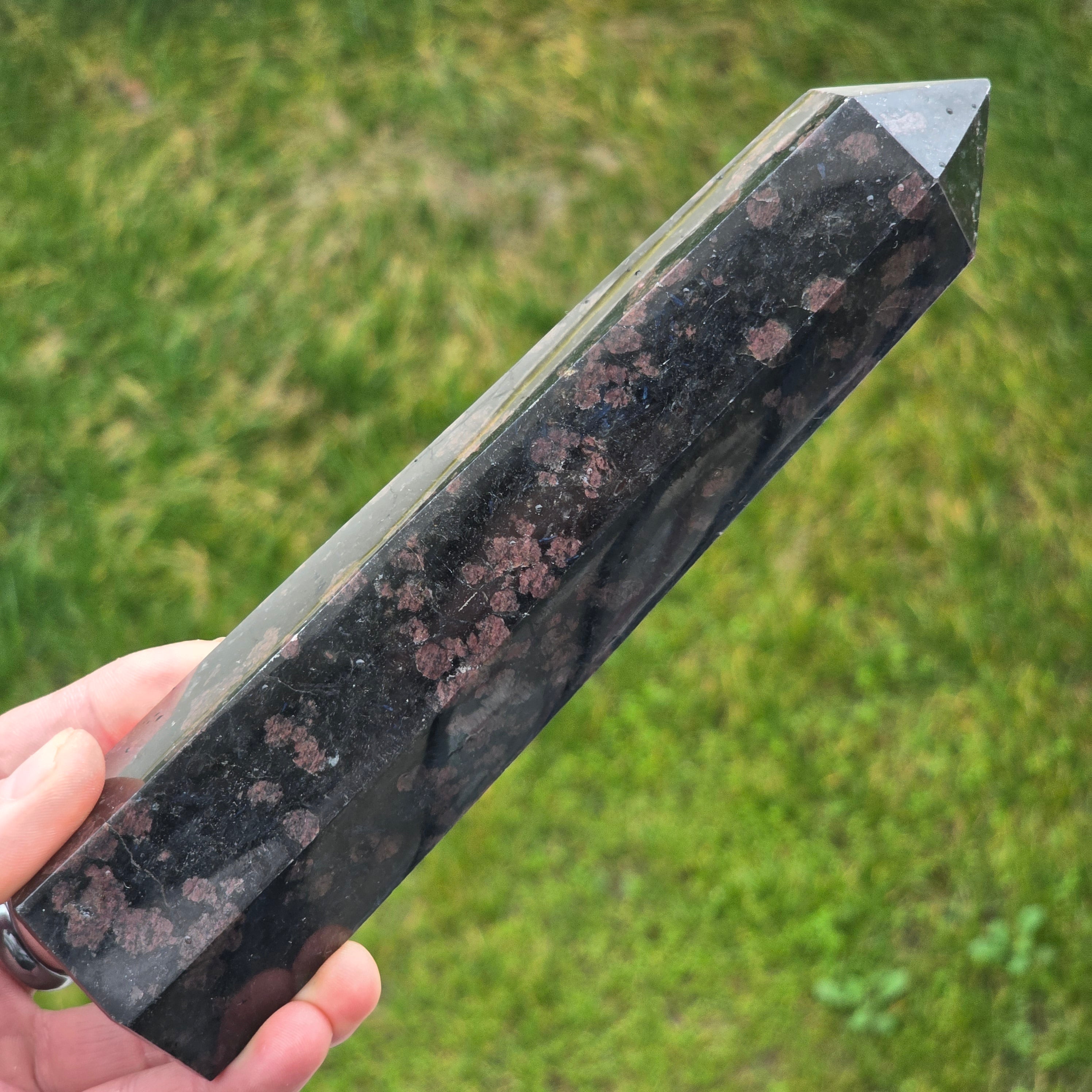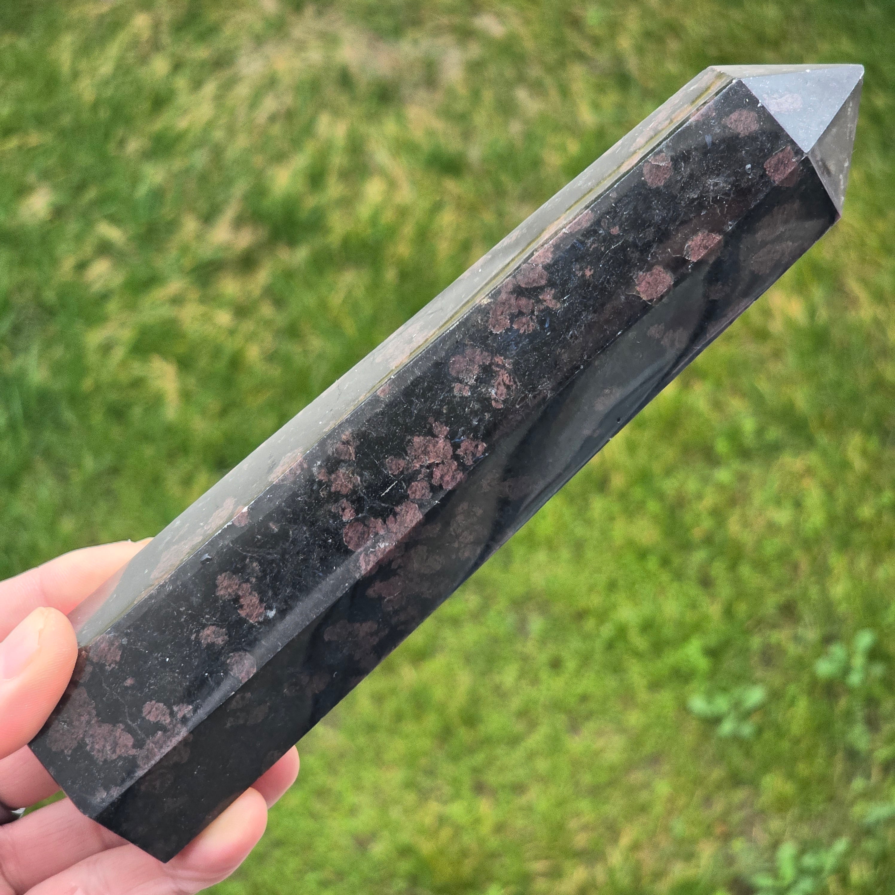 Описание - Черен турмалинов обелиск с гранат | Модел 26
