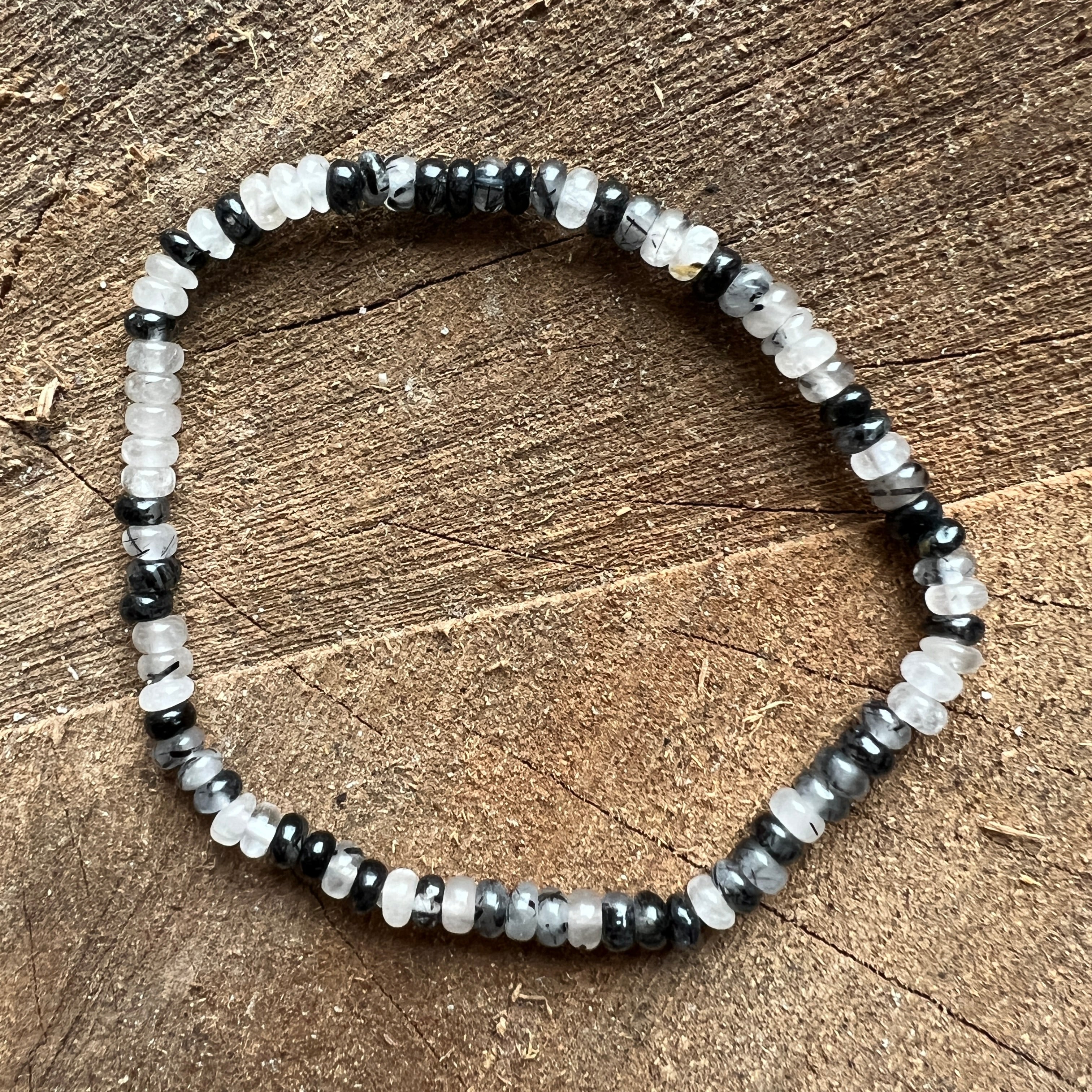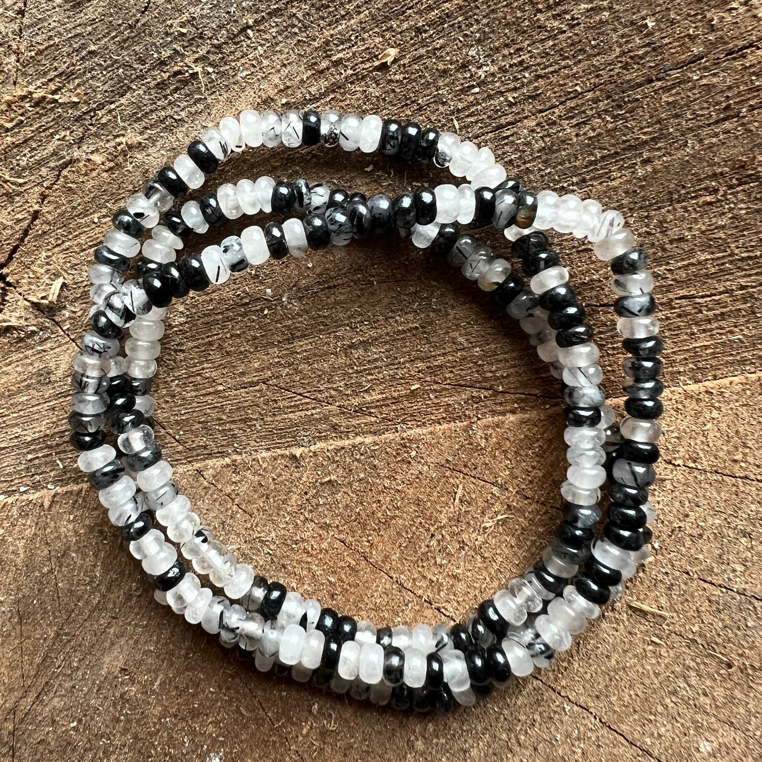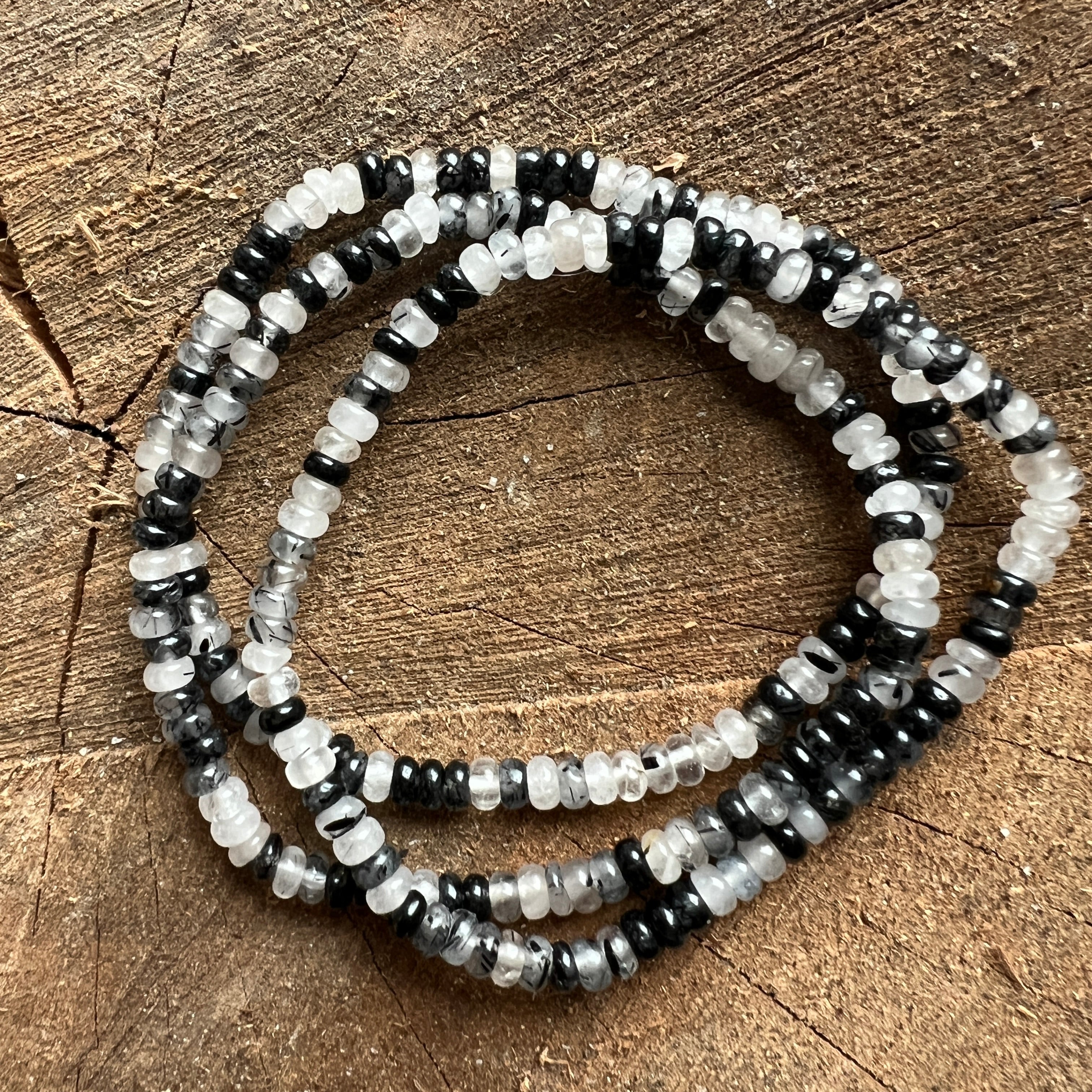 Черна турмалинова гривна в кварцови дискове 4 mm