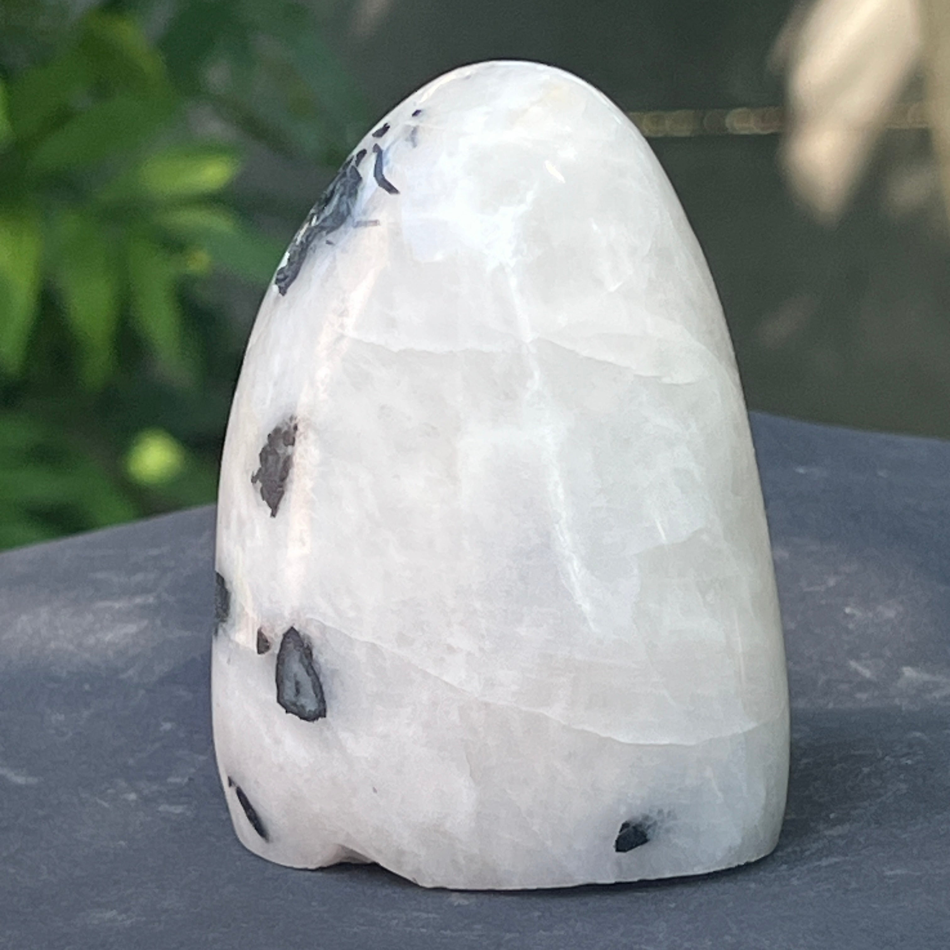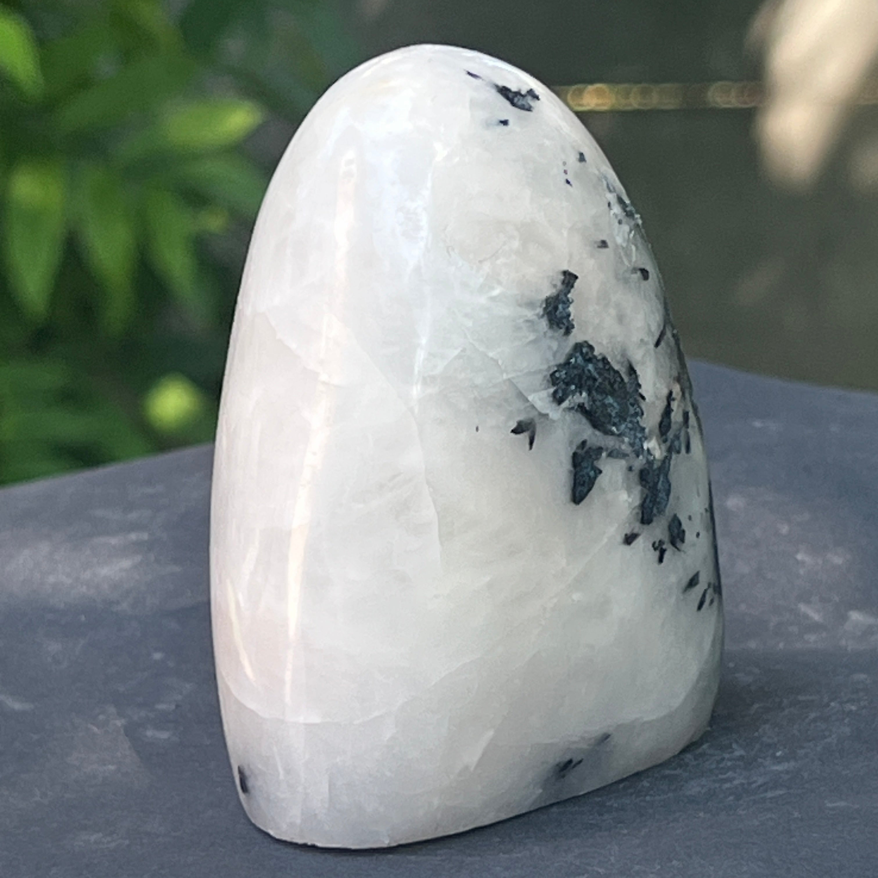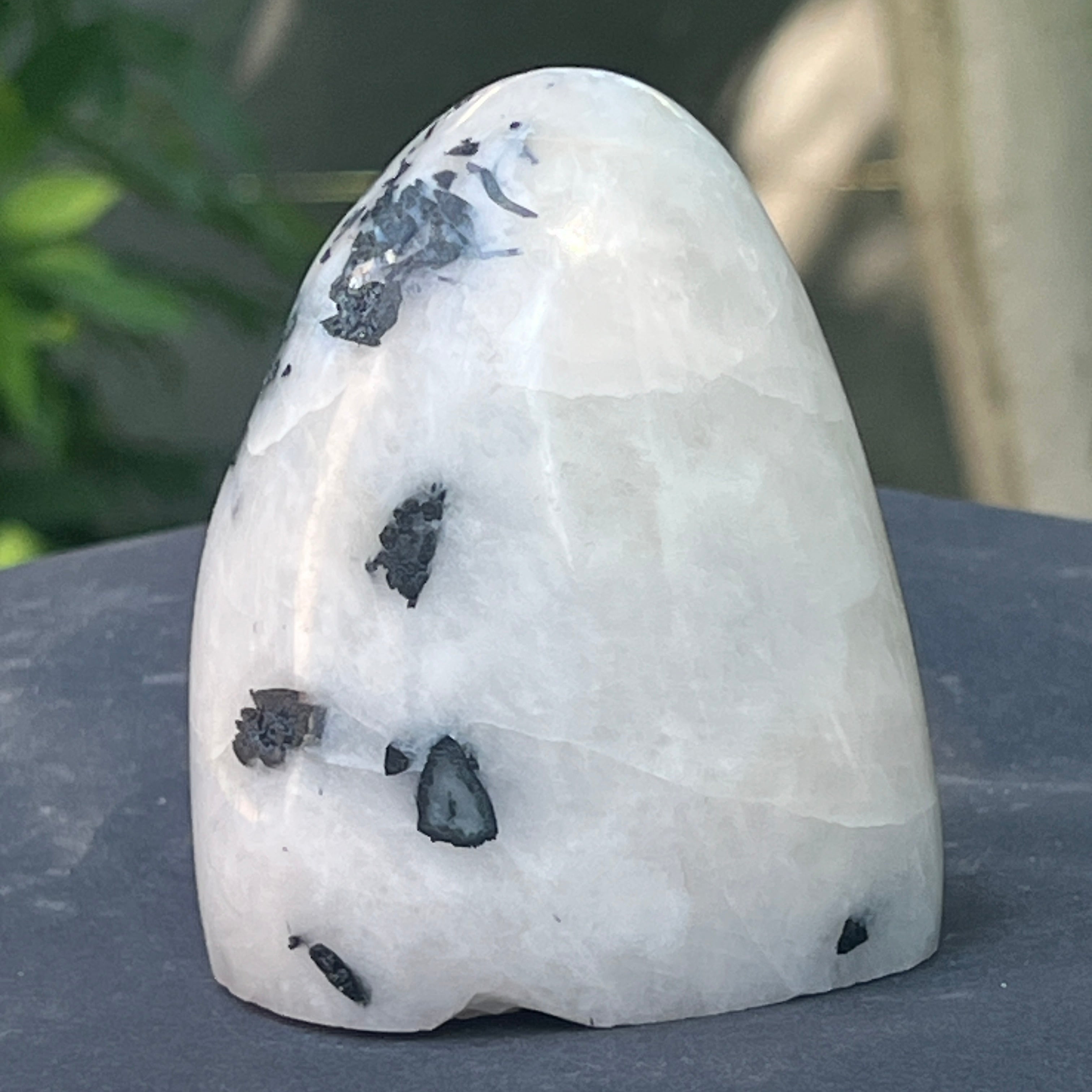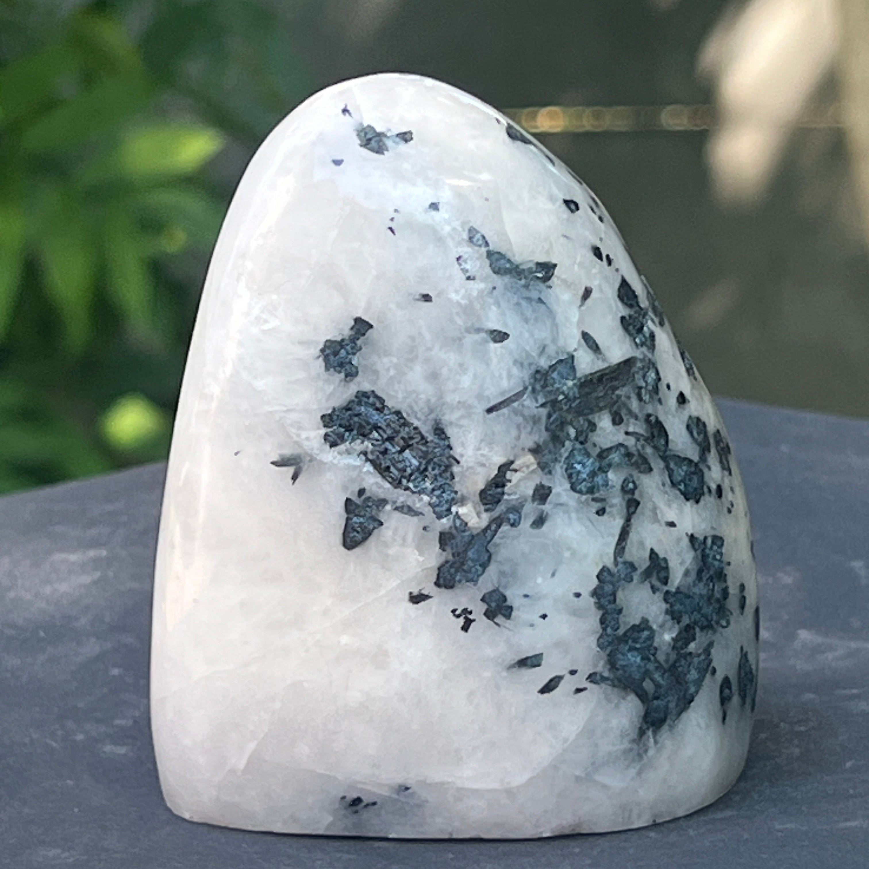 Ревюта – Черна турмалинова скулптура с лунен камък с произволна форма | Модел 1