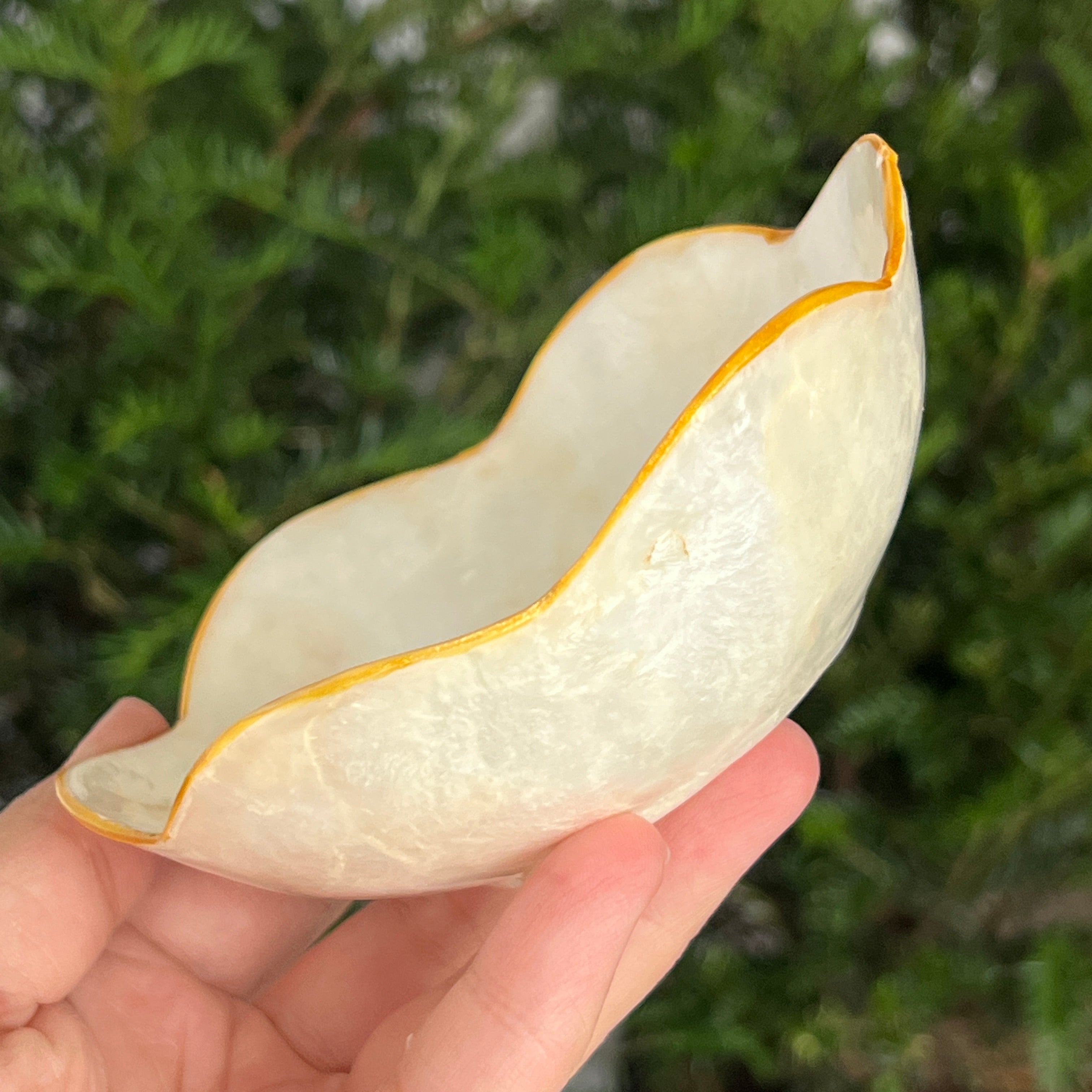 Чинийката от мида абалон е естествен декоративен елемент, който съчетава топлината на земята с блясъка на морето. Перленият отблясък напомня за дълбините на океана и придава елегантен акцент на всяко пространство. Идеална за колекционери, за декориране на личен олтар или като поставка за кристали и бижута.