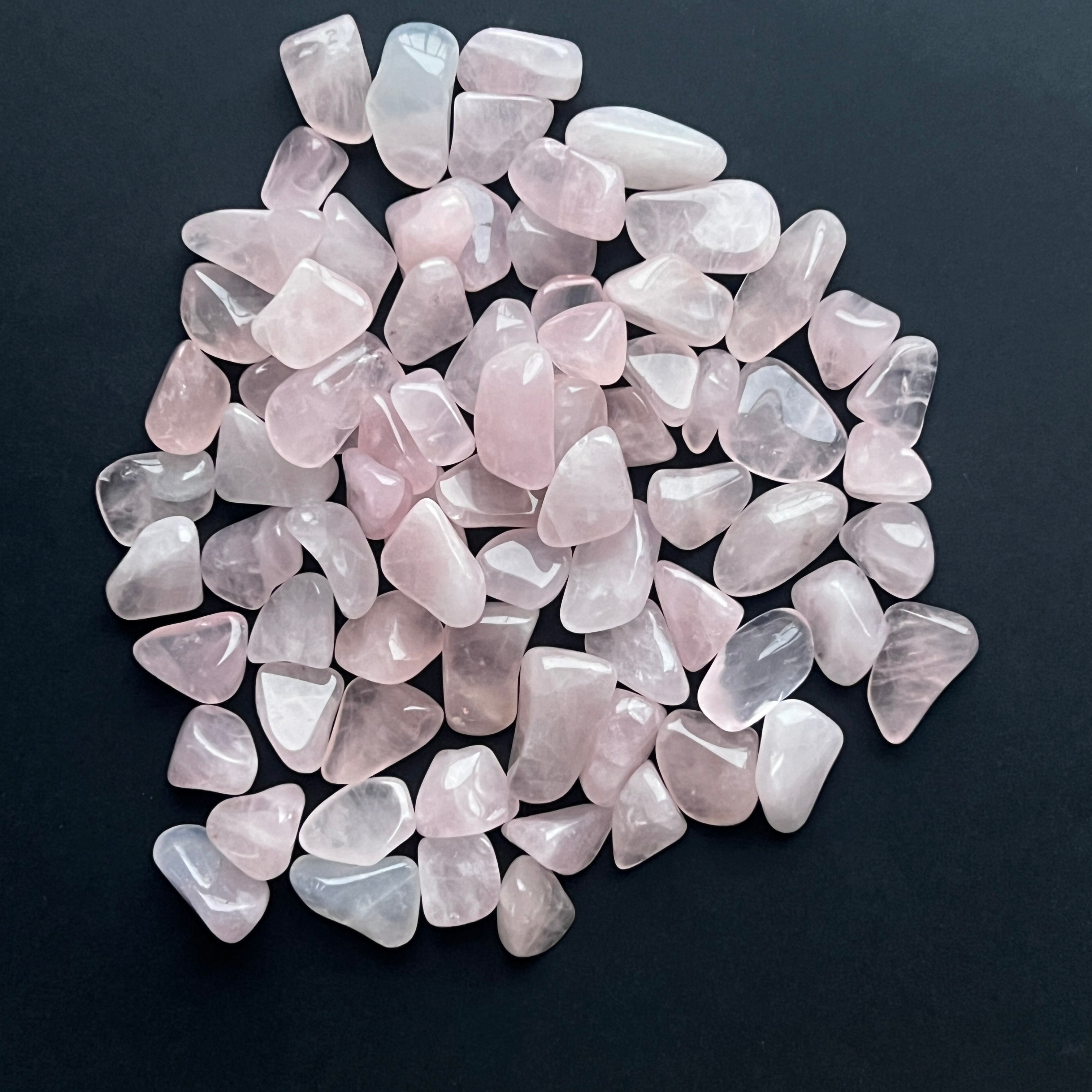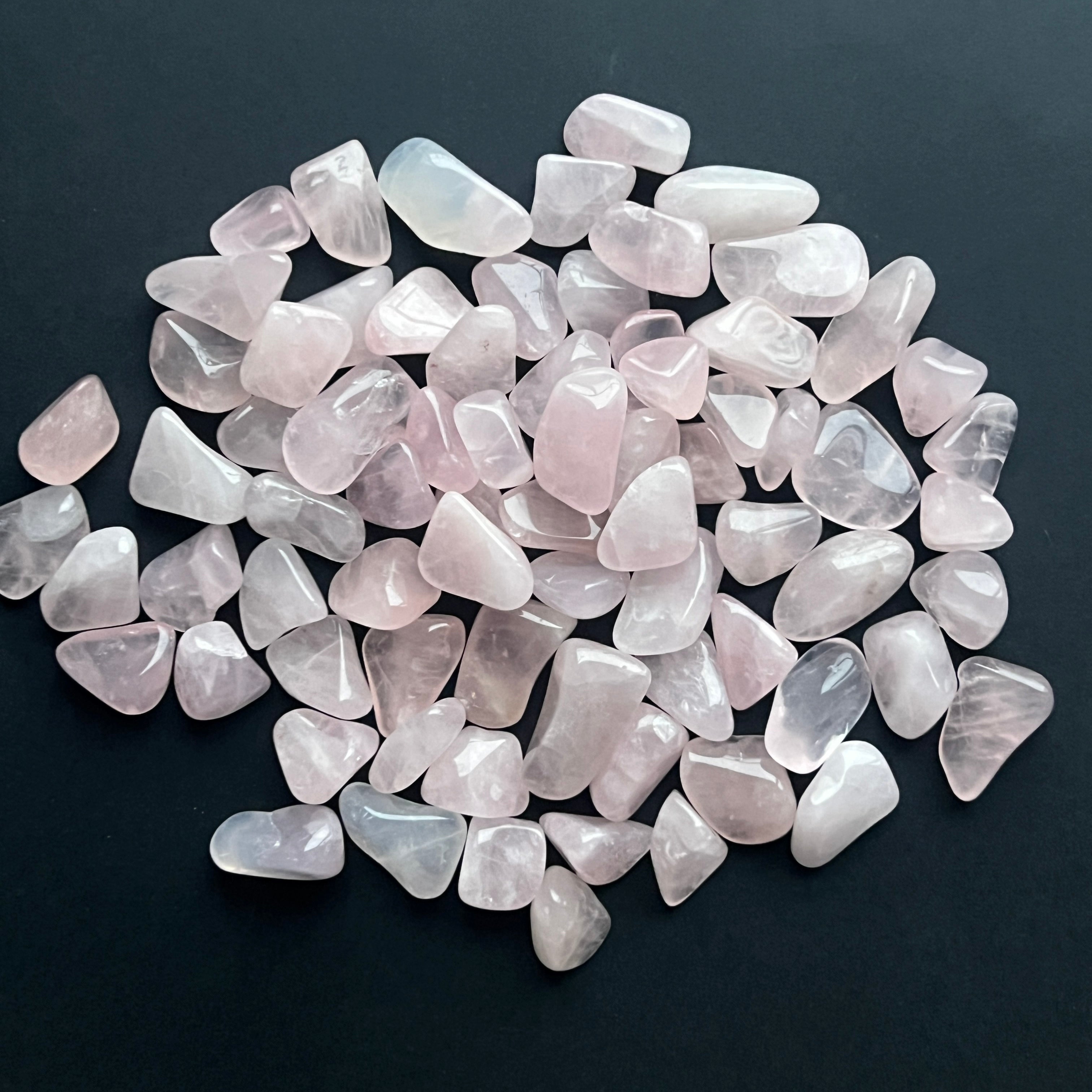 Розовият кварц от Южна Африка е ценен заради топлите и сияйни нюанси, които варират от бледо прозрачно розово до по-наситени, млечни и деликатни тонове. Във формата на чипсове, тези по-големи фрагменти разкриват естествеността на камъка: фини текстури, леки прозрачности и деликатни включвания, придаващи дълбочина на всеки кристал.
