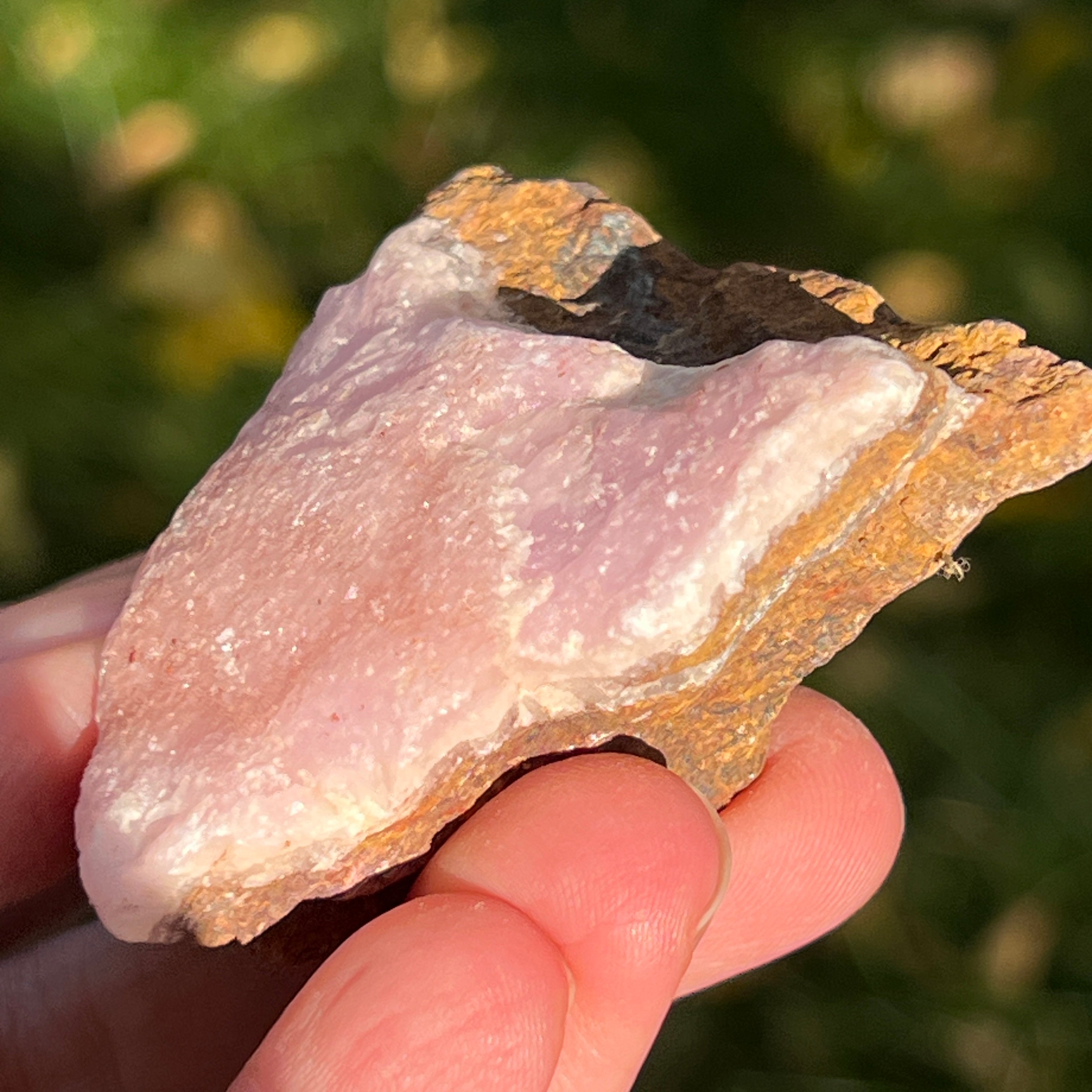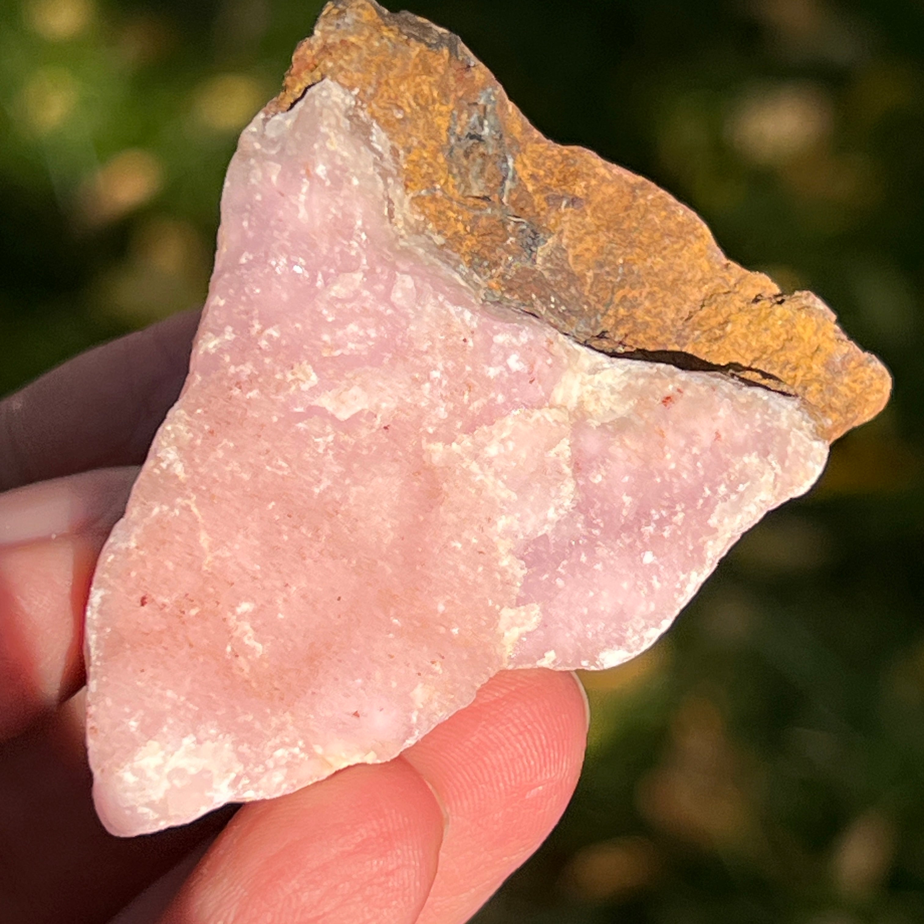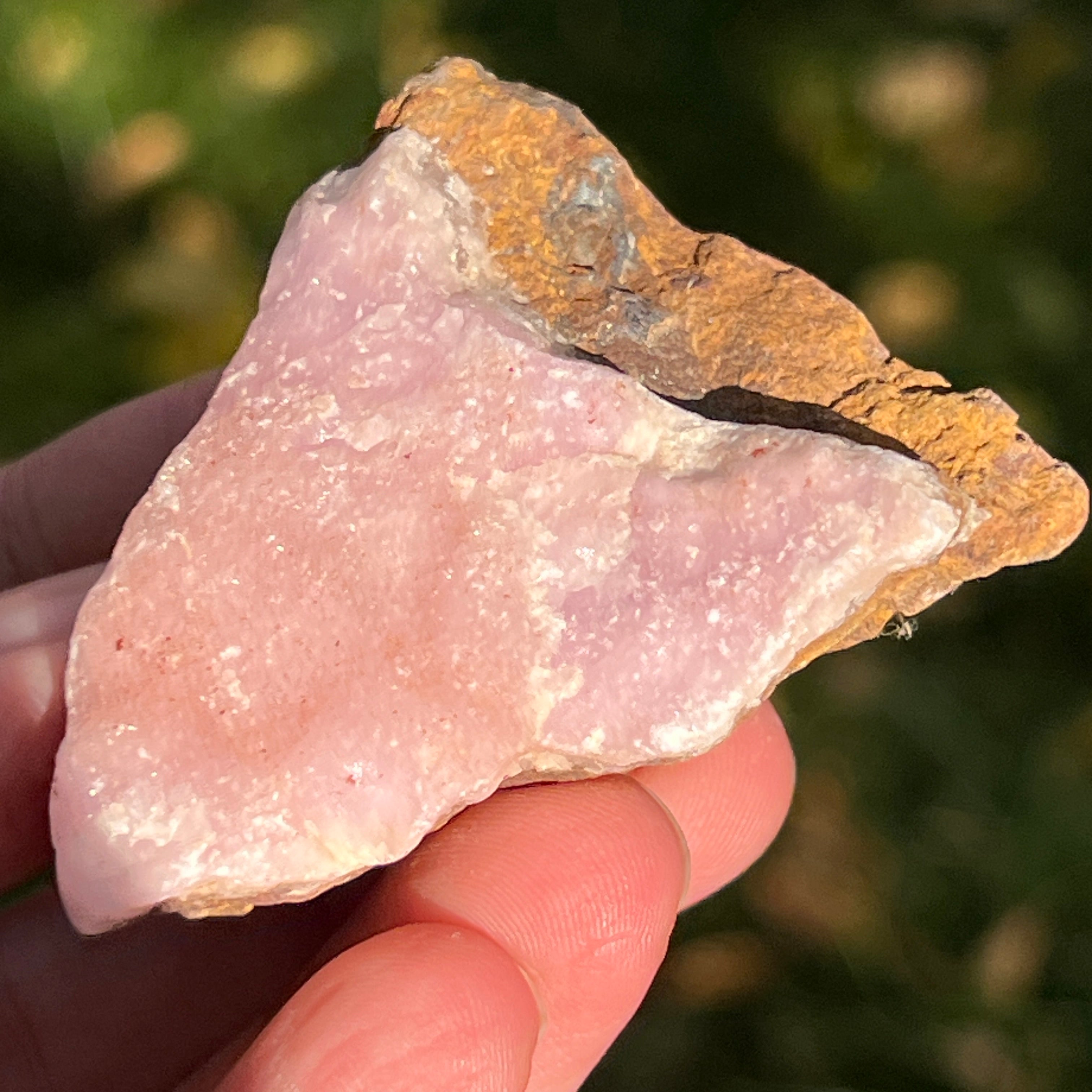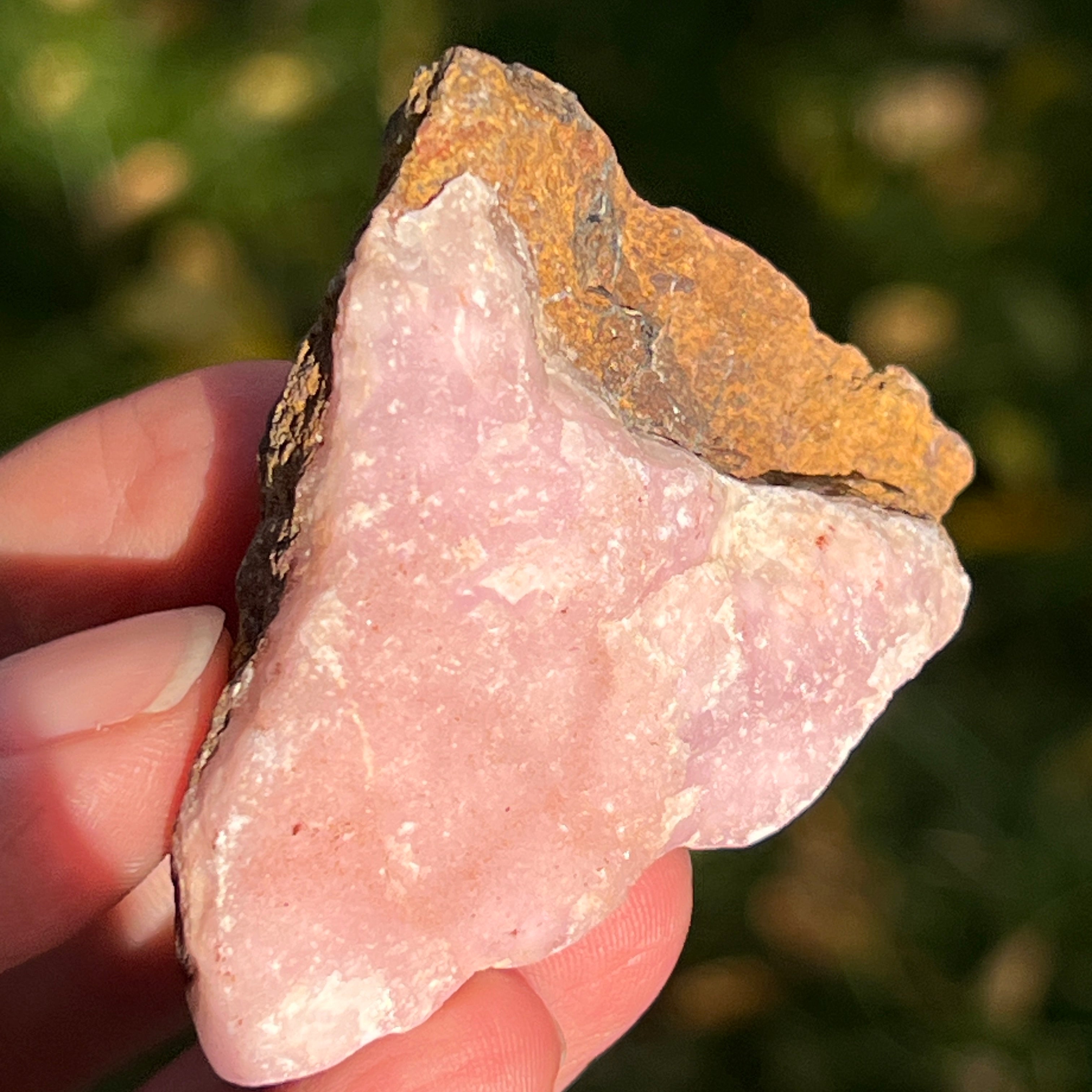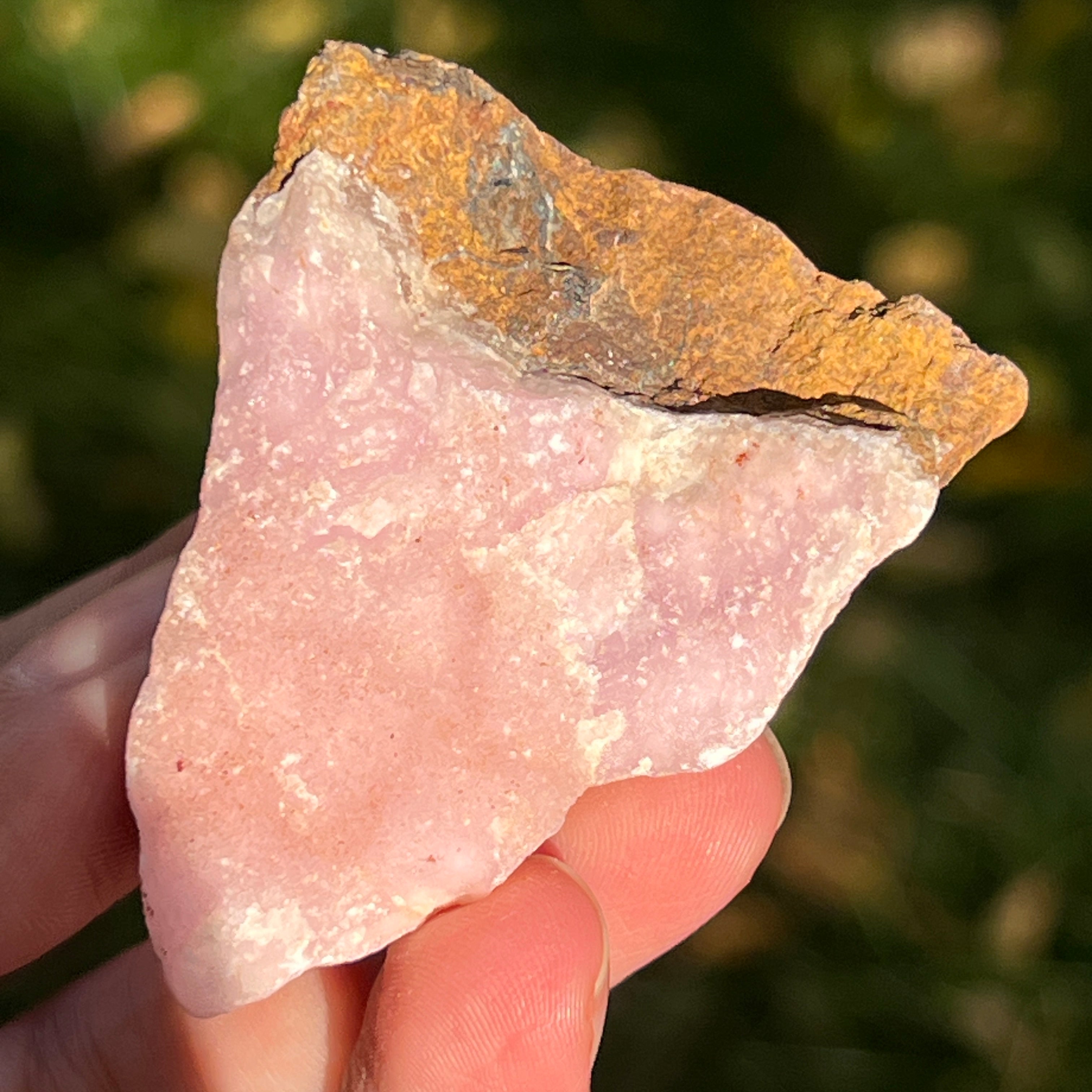 Розовият арагонит е по-рядко срещан полускъпоценен камък. Той е съставен от калциев карбонат и има розово-оранжев цвят поради примеси на желязо.