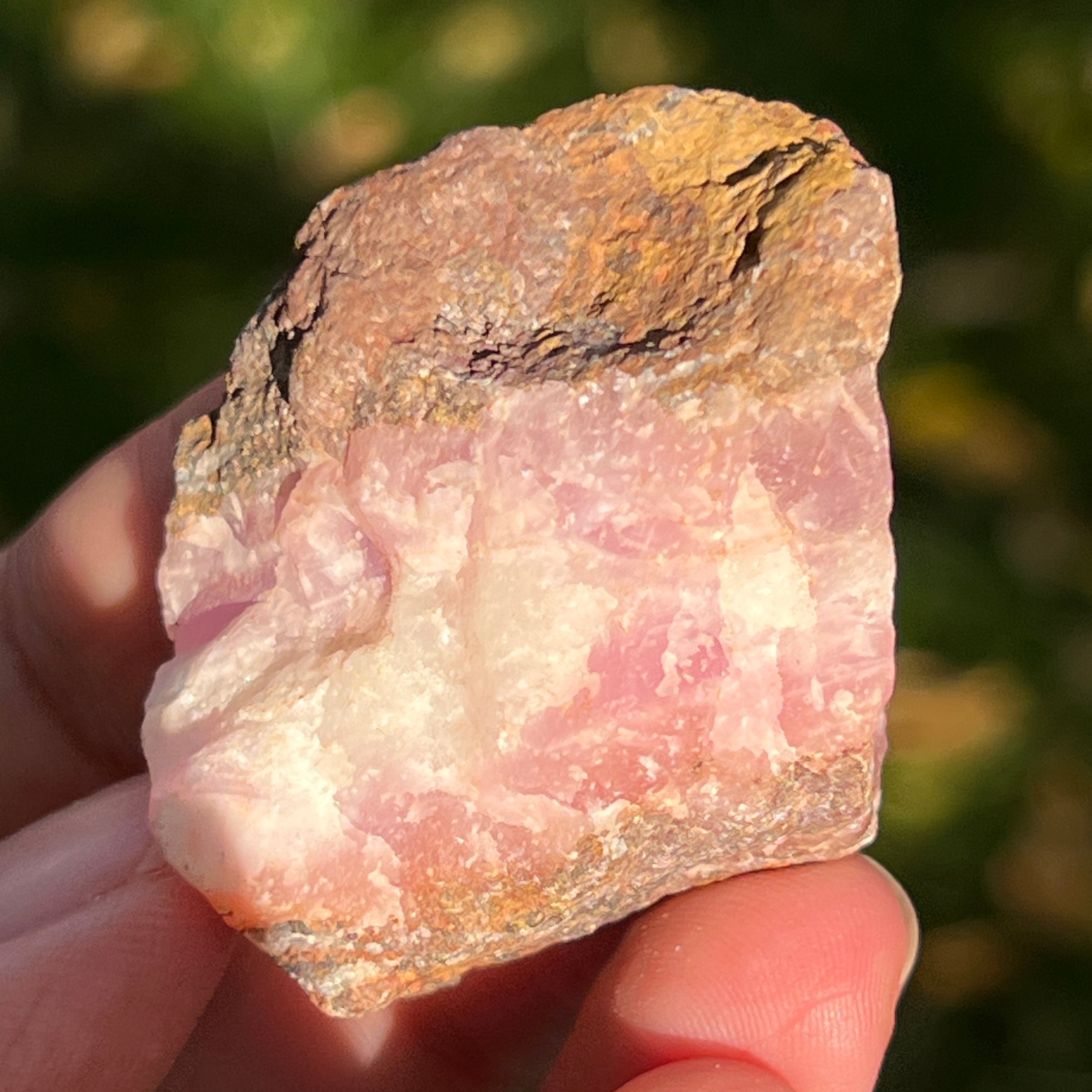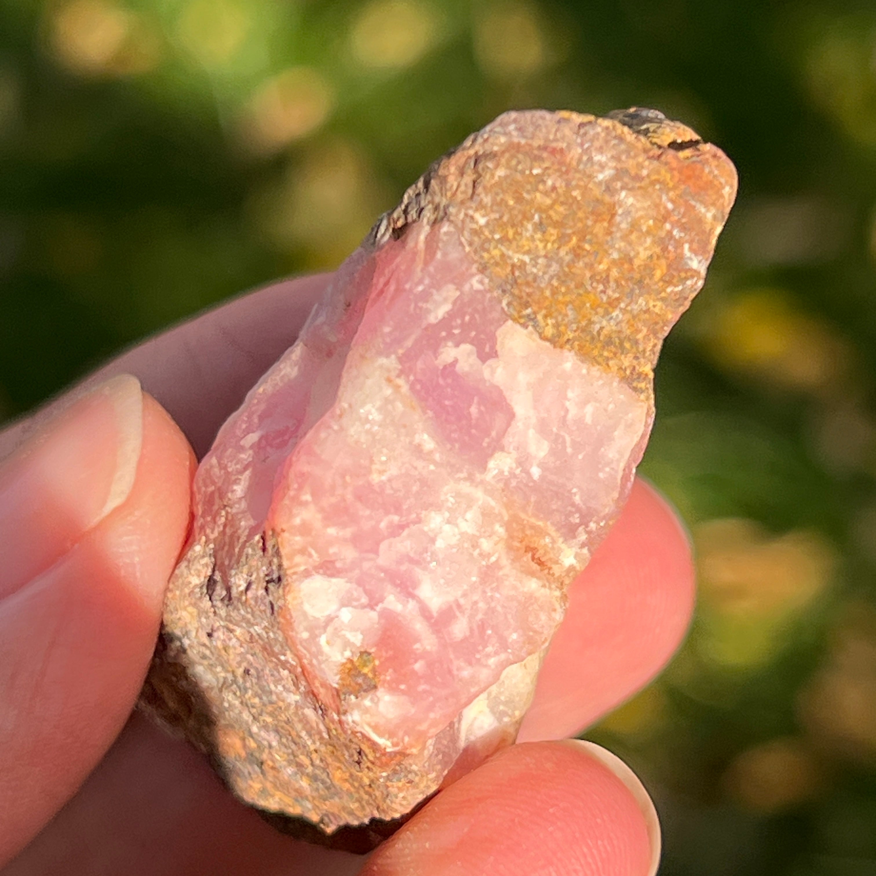 Розовият арагонит е по-рядко срещан полускъпоценен камък. Той е съставен от калциев карбонат и има розово-оранжев цвят поради примеси на желязо.