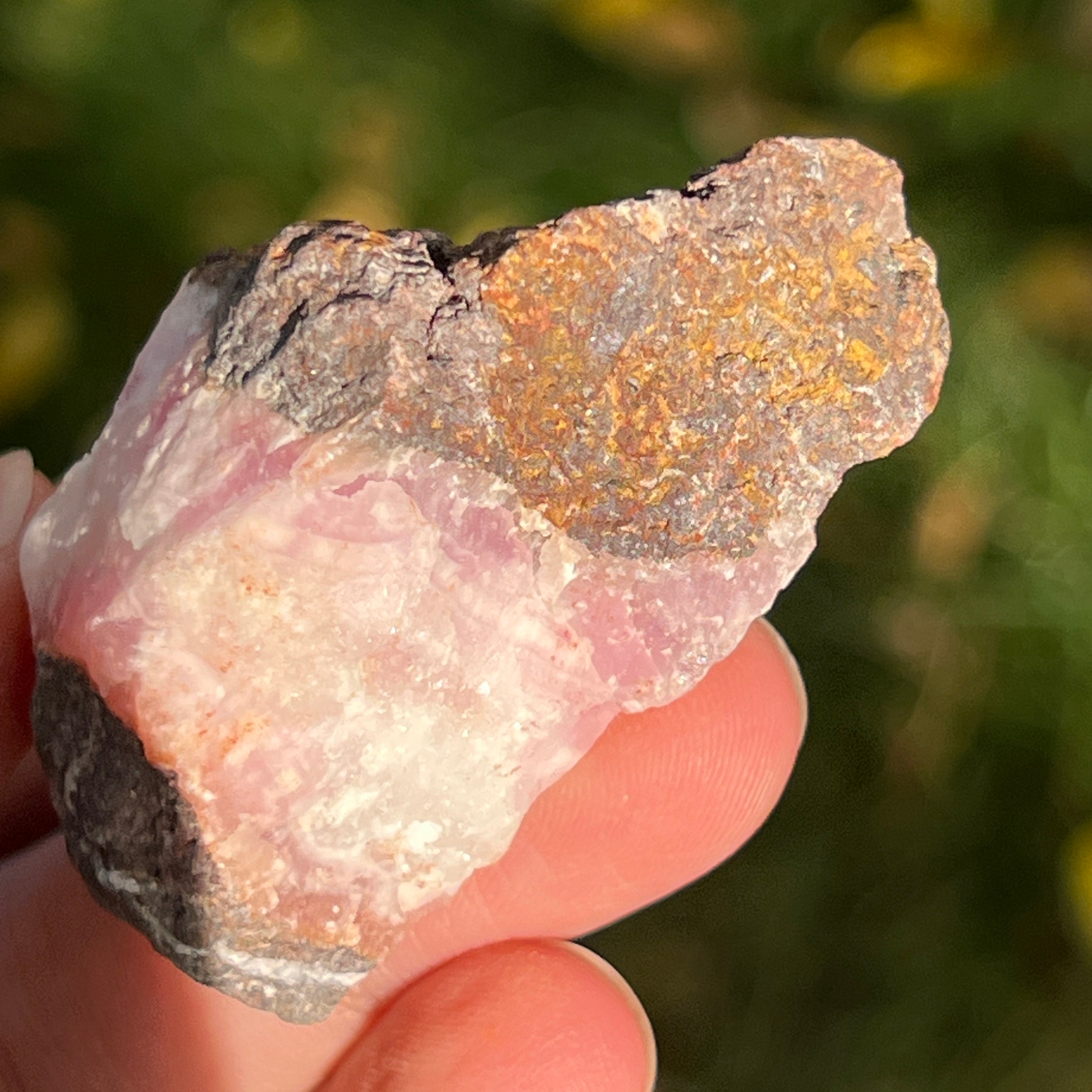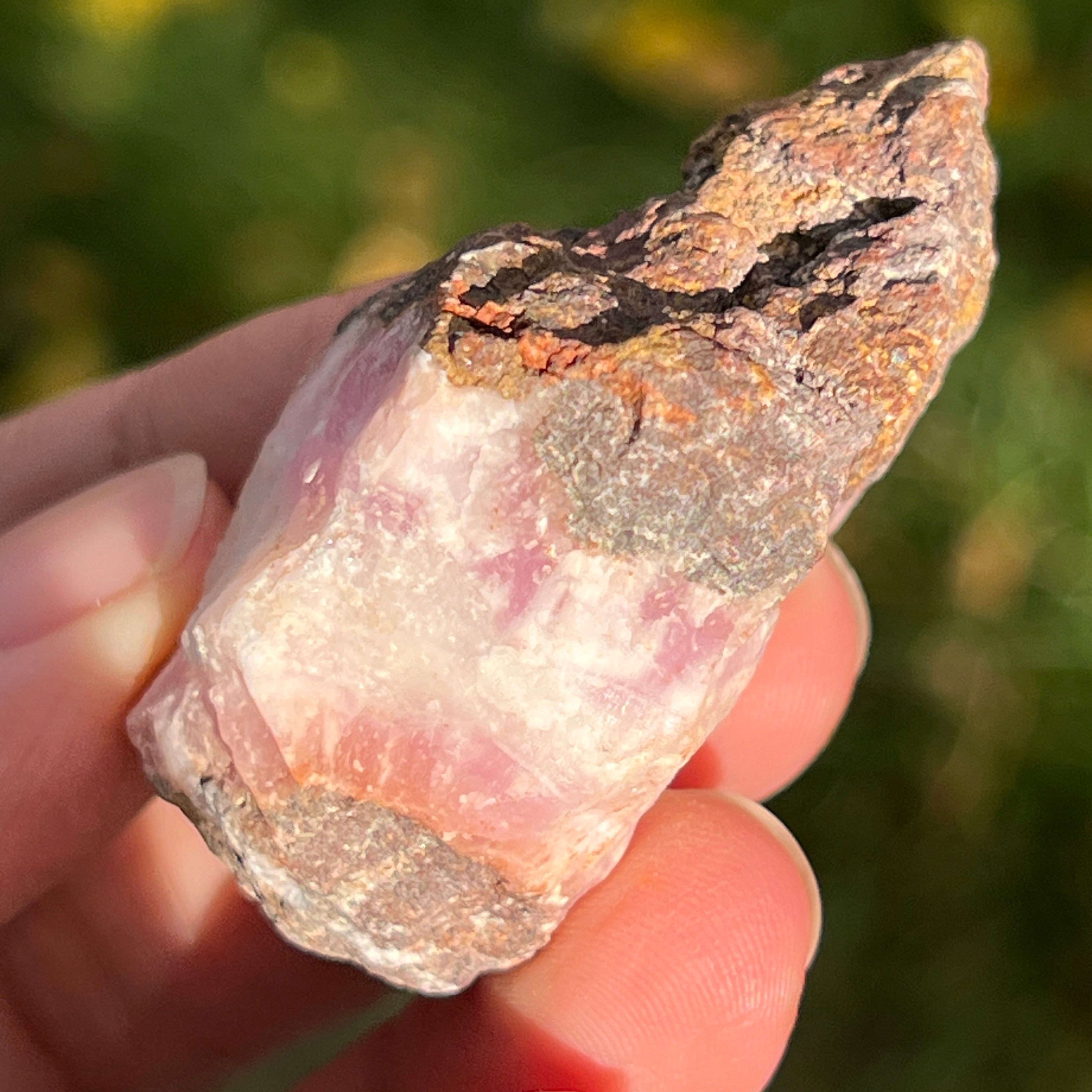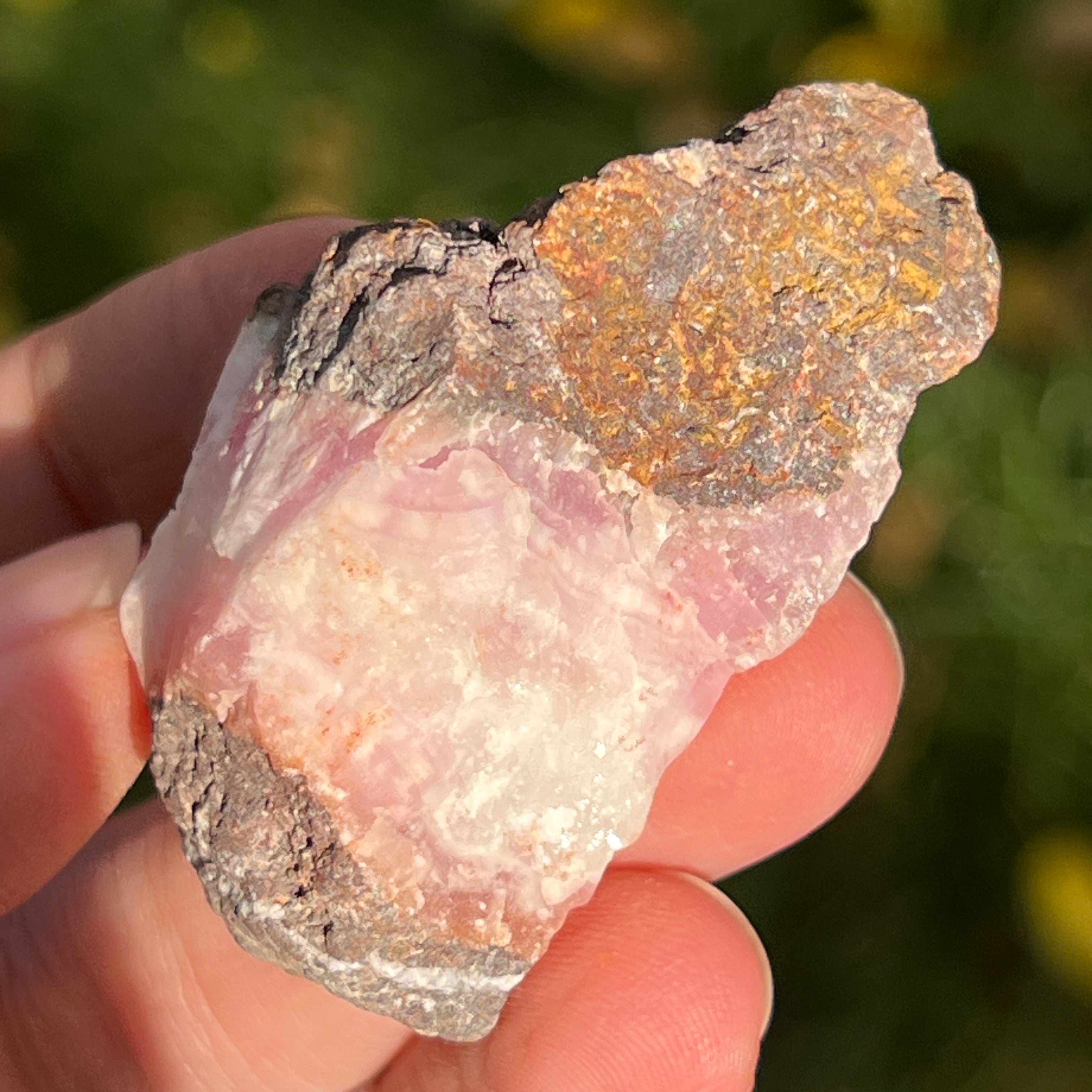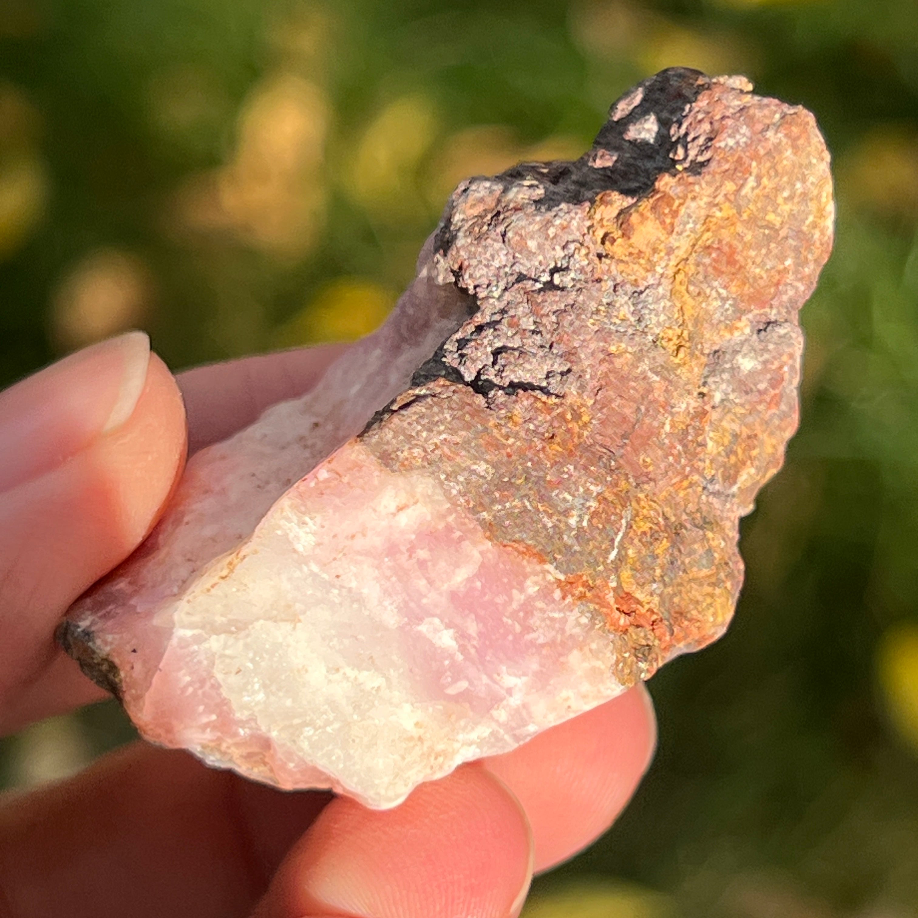 Розовият арагонит е по-рядко срещан полускъпоценен камък. Той е съставен от калциев карбонат и има розово-оранжев цвят поради примеси на желязо.