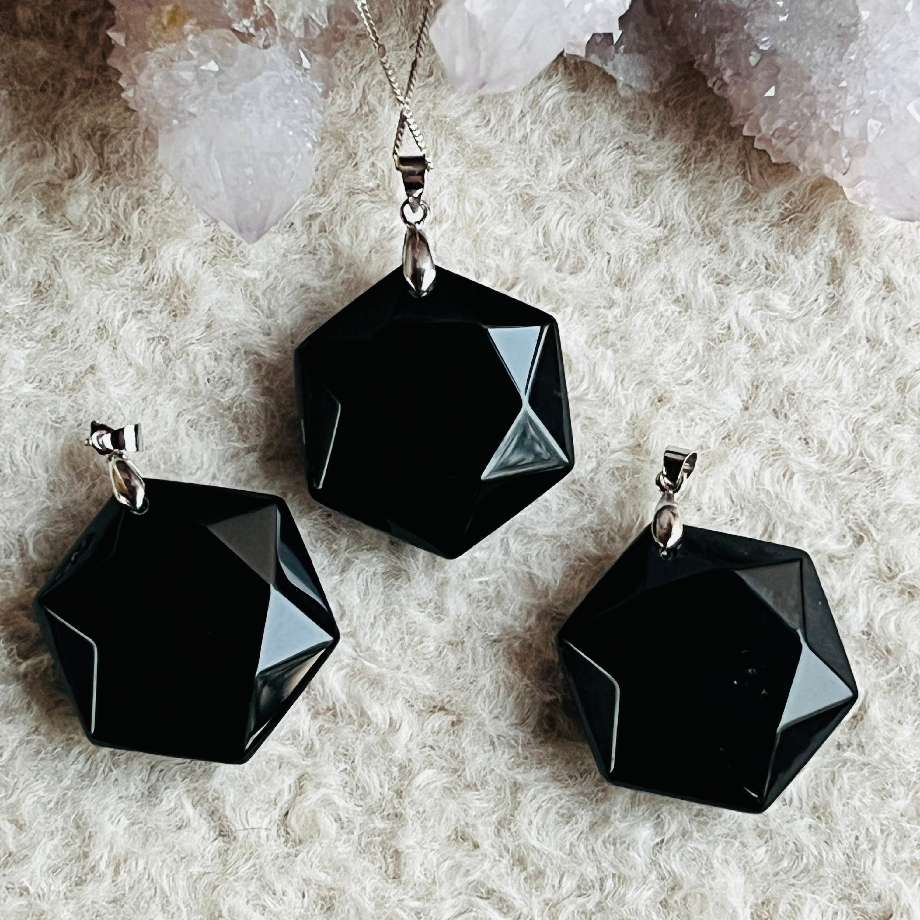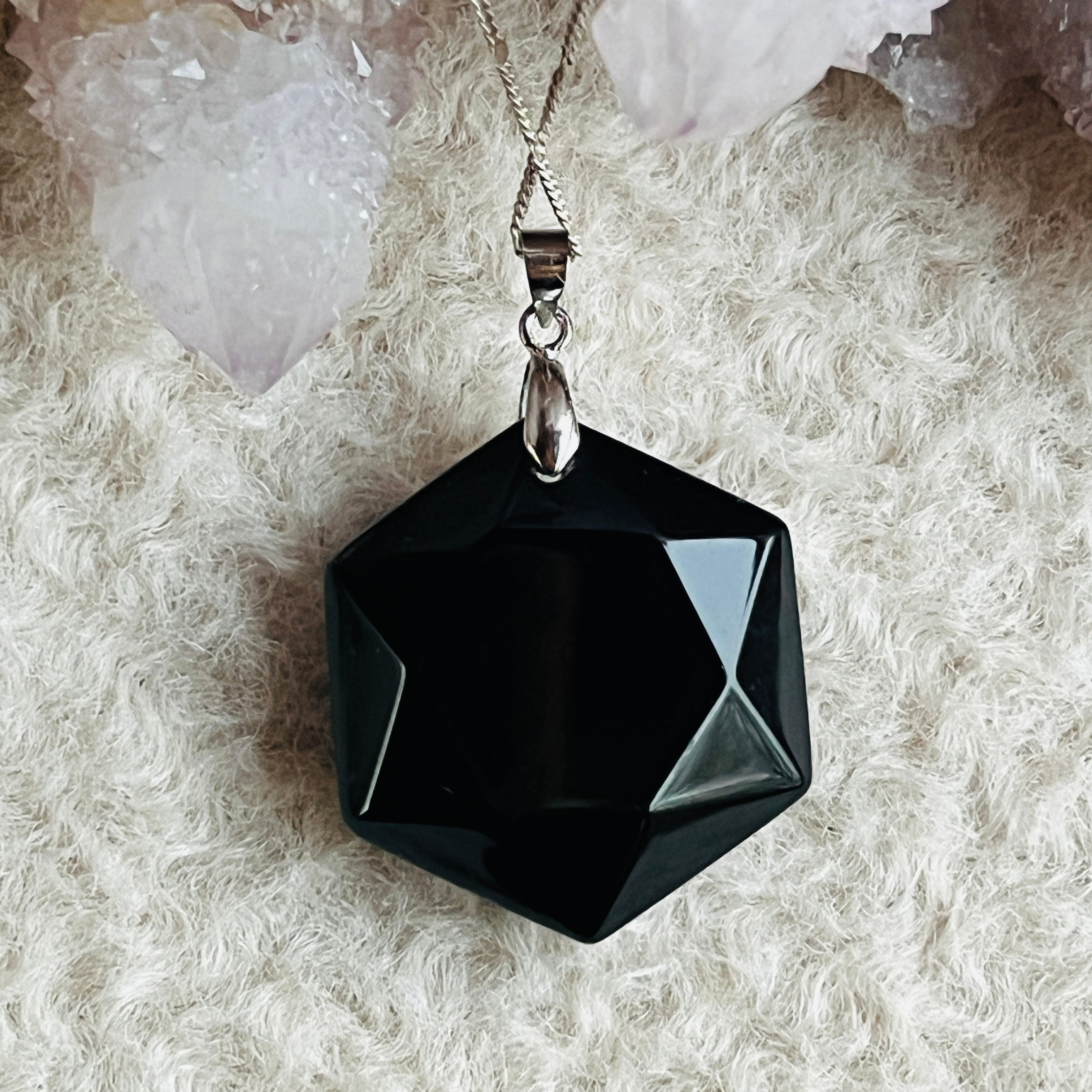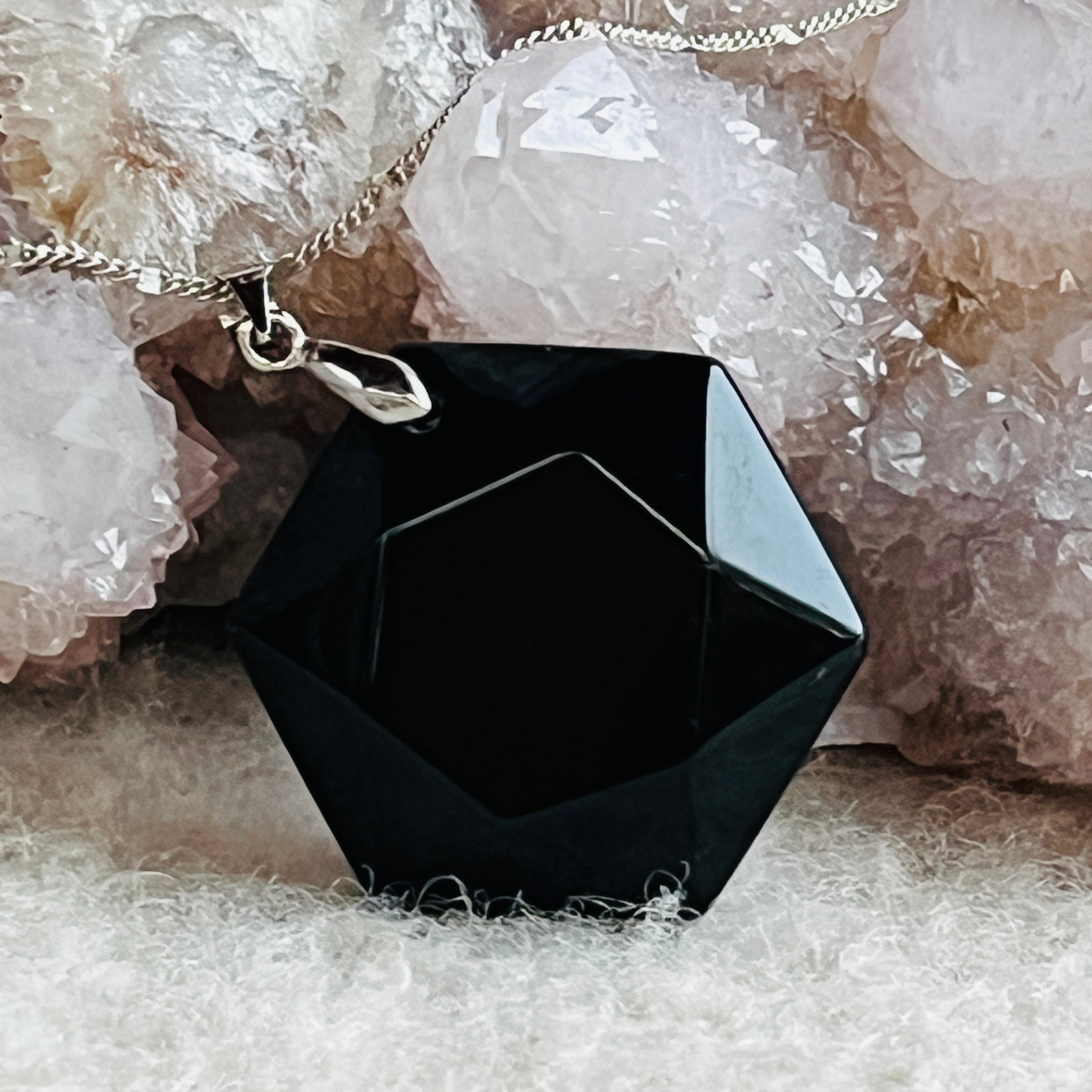 Шестоъгълна висулка от обсидиан, размер: 3 см