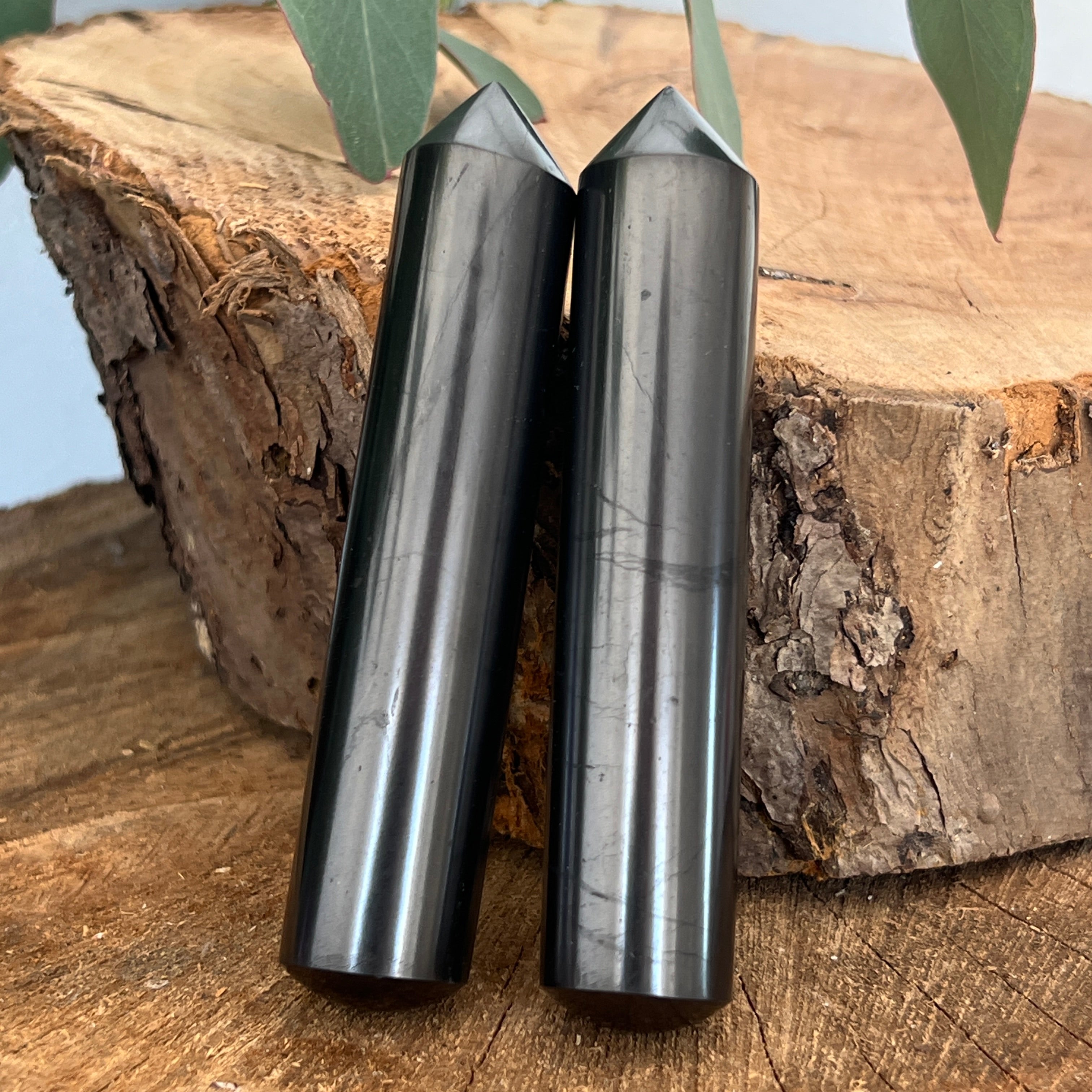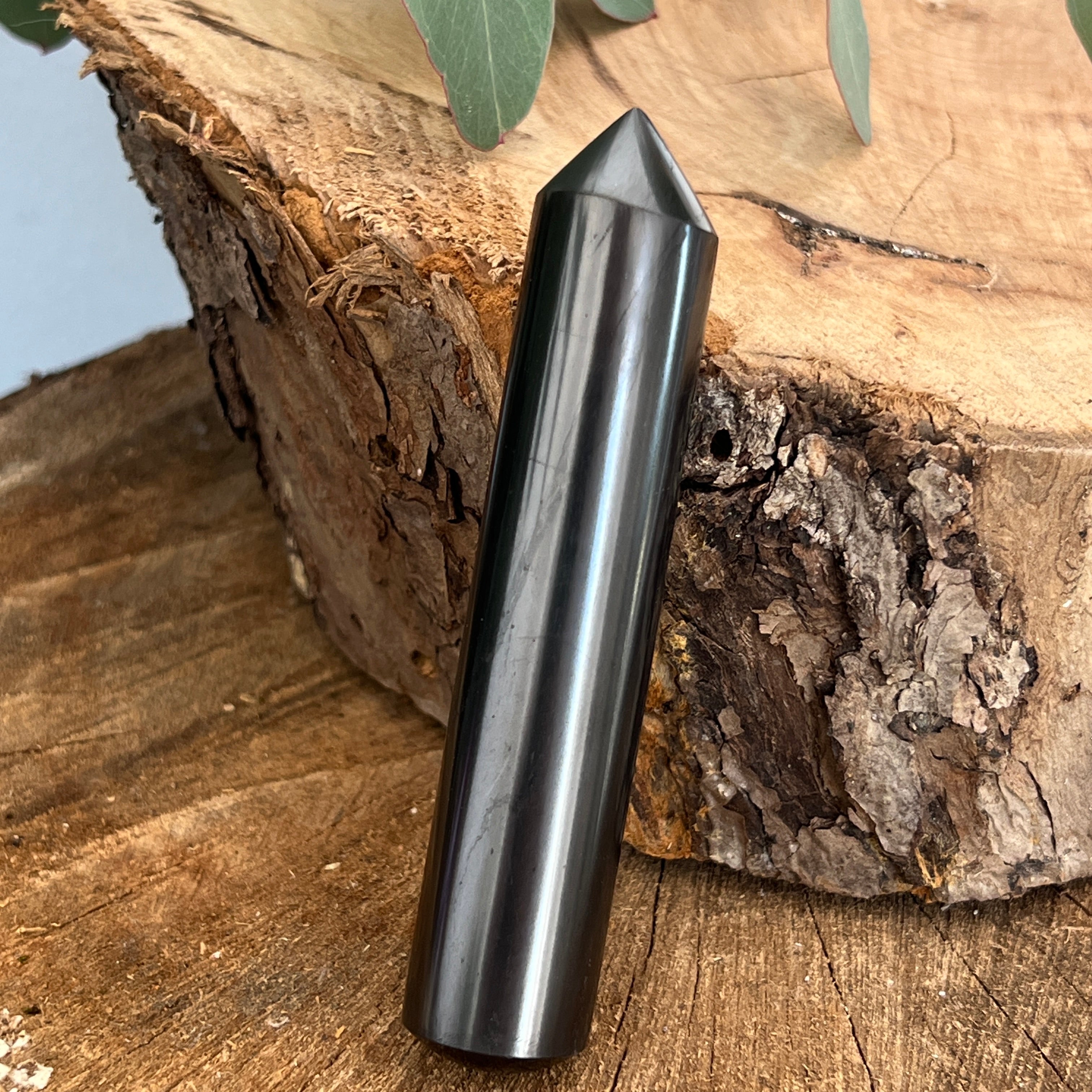 Шунгитовата пръчка е естествен инструмент с дълбоко черен цвят и кадифен блясък, използван както за масаж, така и за енергийна защита.