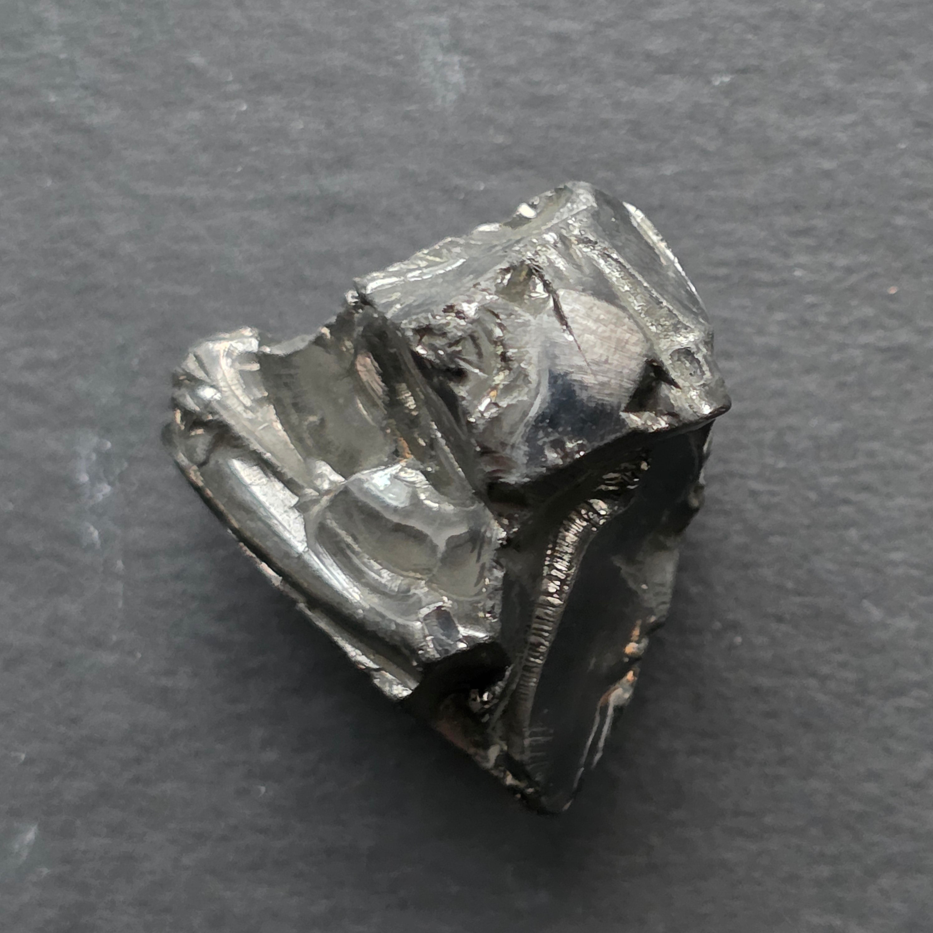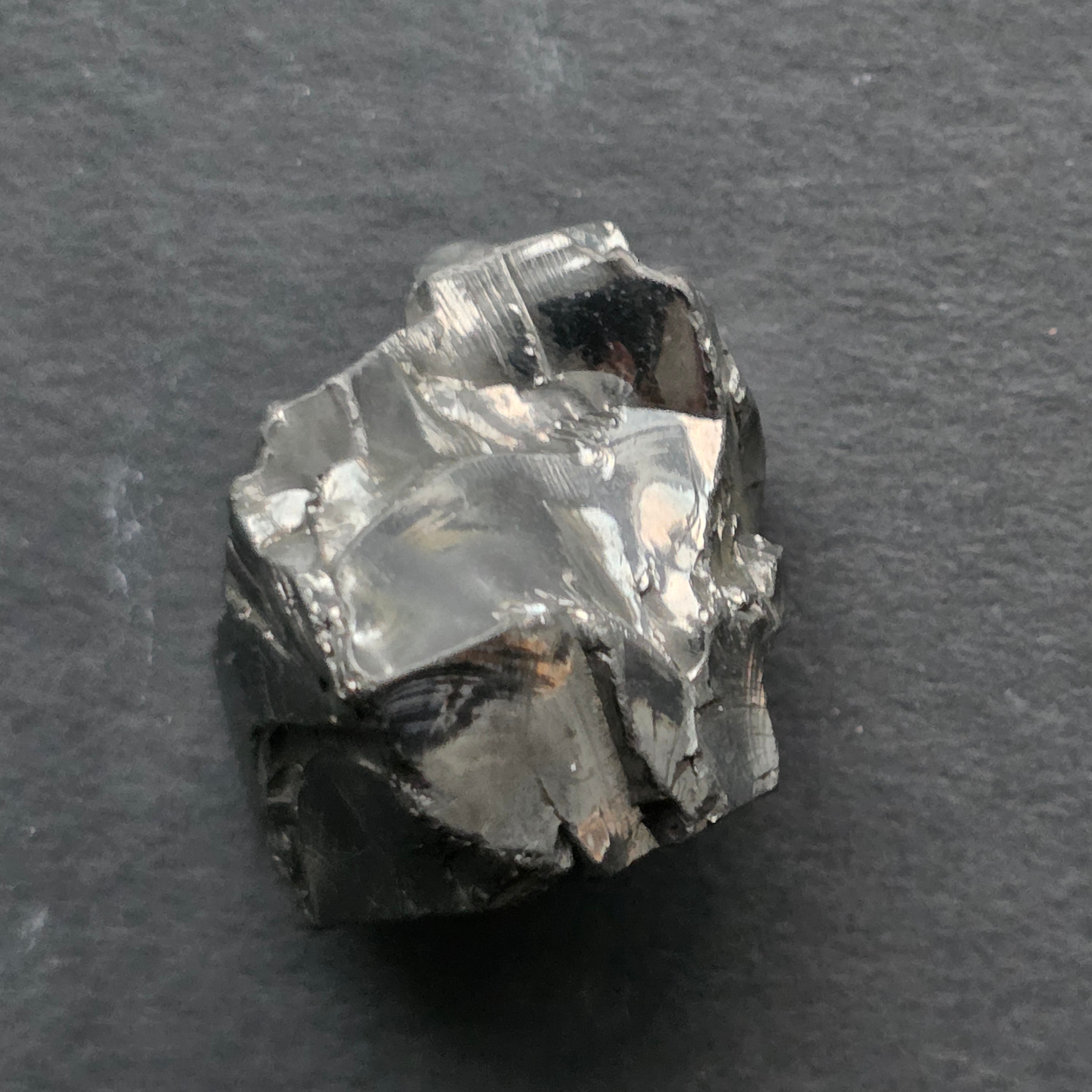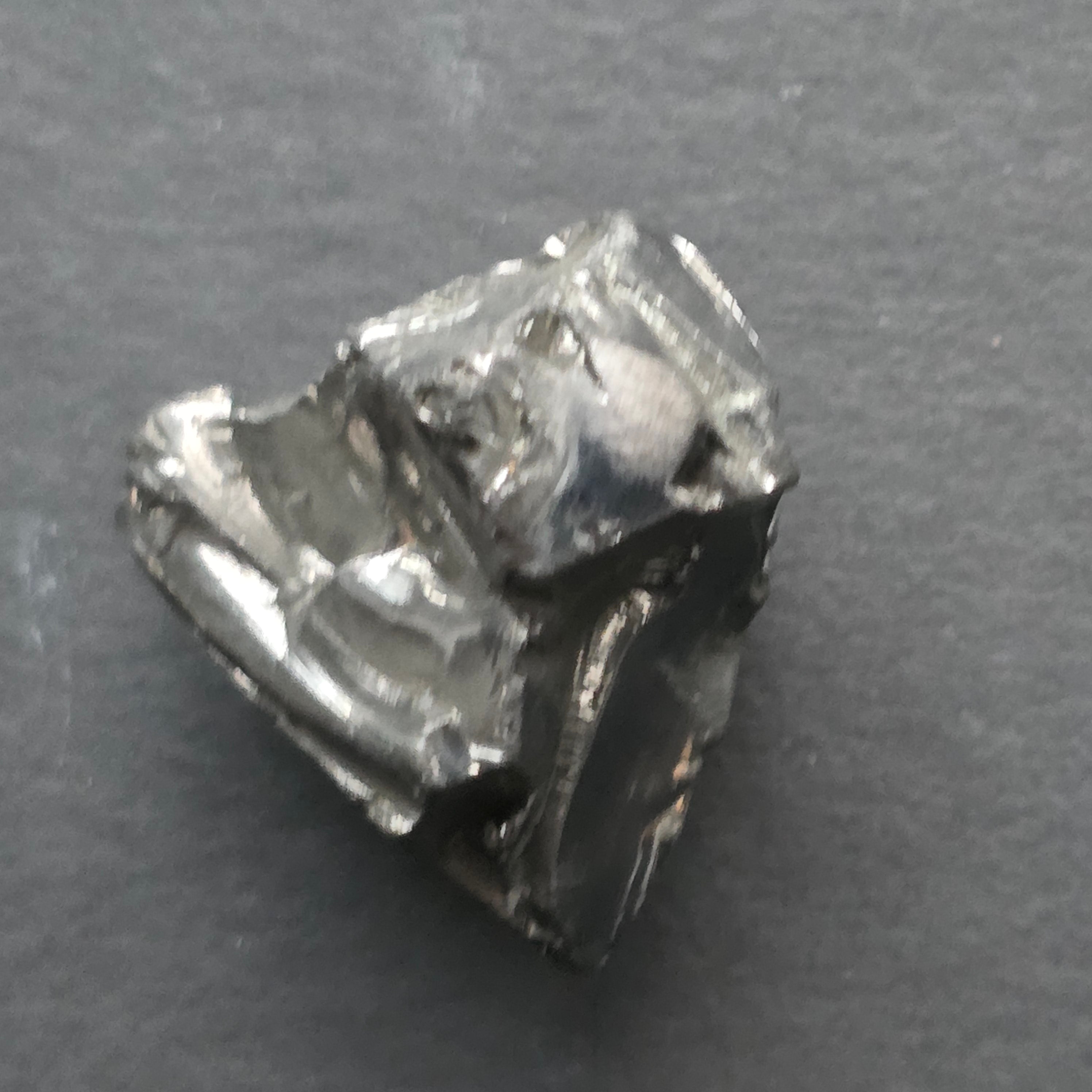 Неговият интензивен, сребрист метален блясък носи ехото на един първичен свят, в който чистата материя вибрира в хармония с живота.