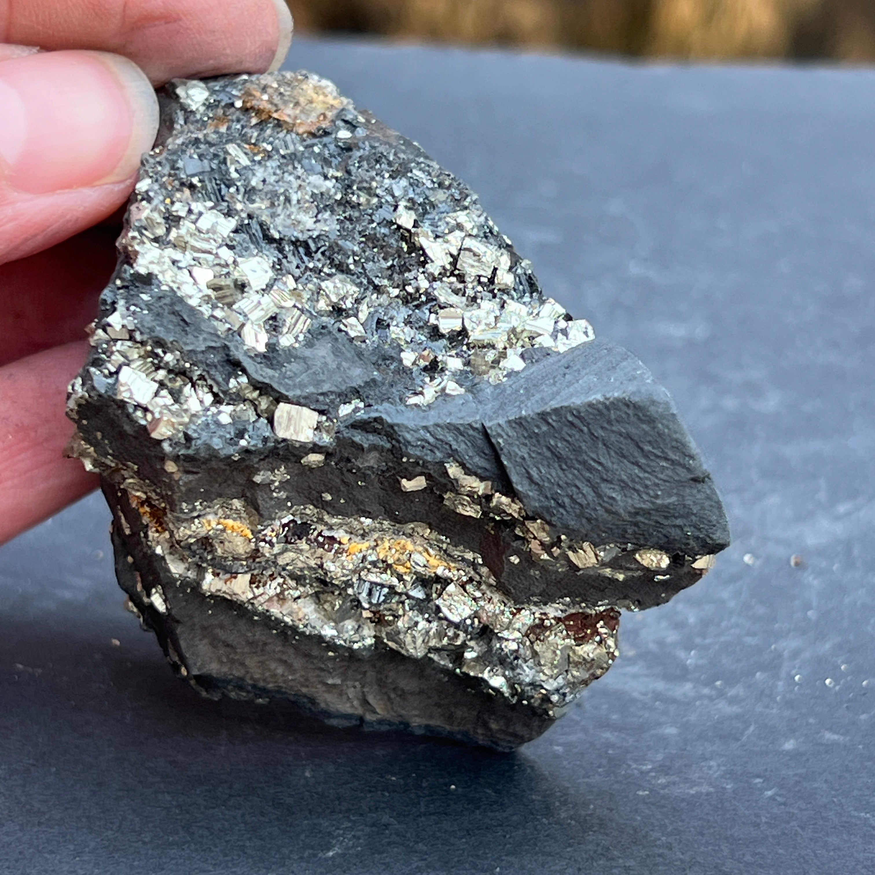 Шунгит с пирит модел 15, размер: 6,4 * 4,9 * 4 см